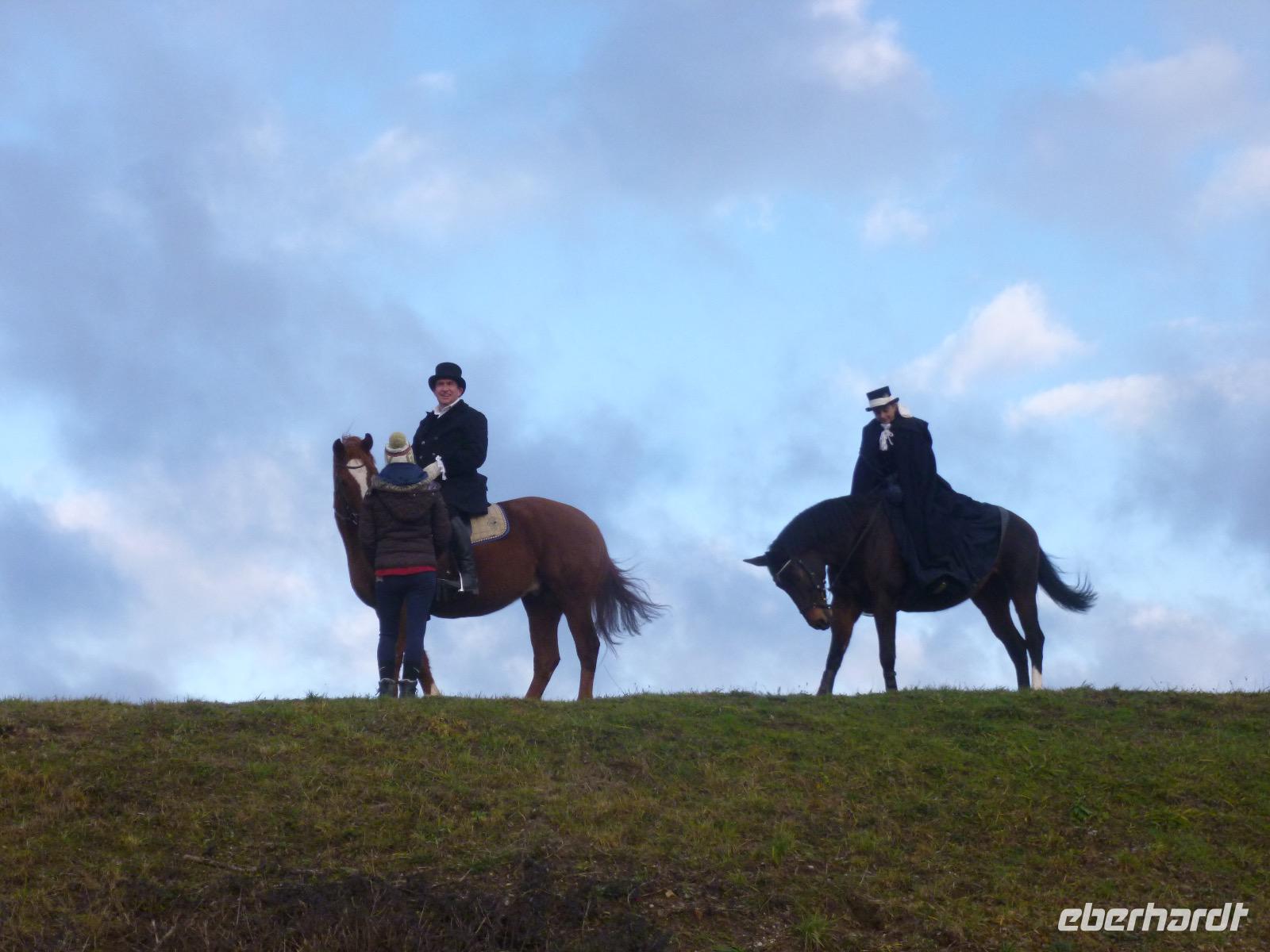 Eine Viertelstunde mit dem Bus fuhren wir nach Donaustauf mit seiner Burg, seiner Pfarrkirche und seinem „Tempelberg", uns erwarteten jedoch zunächst auf dem Damm an der Donau mit Blick auf die Walhalla zwei Reiter, die länger als wir bis Donaustauf brauchten - es war das bayrische Königspaar Ludwig I. und seine Gemahlin. Sie gaben uns die Ehre und der König hielt eine begeisterte Rede über sein Lieblingsbauprojekt, das wir bald besuchen sollten.