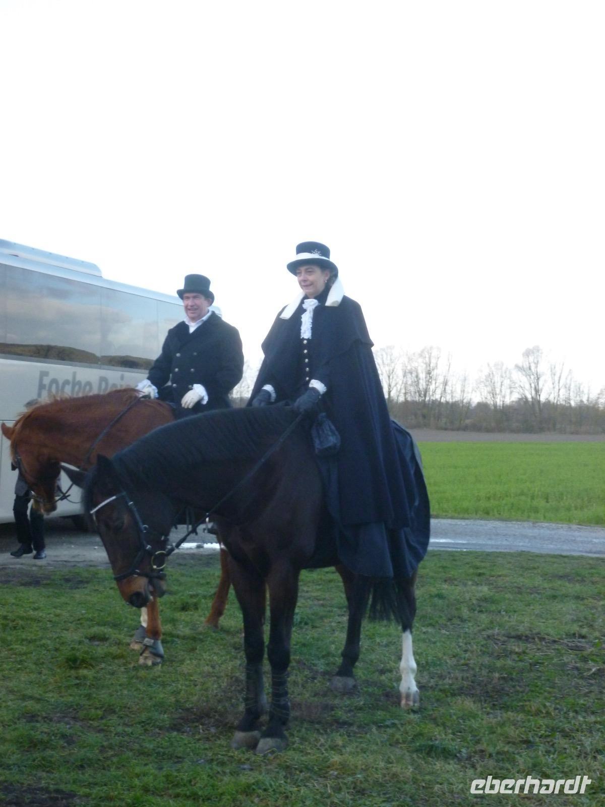 Dort wurden wir trefflich bewirtet mit regionaler Kost wie Krustenbraten, Ente und Spinatknödeln - lecker! Gestärkt fuhren wir - nur unterbrochen durch einen Fotostopp bei der langen Holzbrücke „Tatzlwurm" bei Essing nach Kehlheim und spazierten zum Rathaus, wo uns bereits zwei Gästeführer erwarteten. Trotz Kälte harrten die meisten von uns aus - es lohnte sich, denn es erschien ein junges Paar aus dieser Zeit mit kurzweiliger Erzählung aus der Bauzeit der Befreiungshalle über der Stadt von König Ludwig I. - das Ganze endete beim Gasthaus „Weißes Lamm", wo wir uns bei einem spendierten Glühwein aufwärmten, bevor es zurück zum Hotel ging.