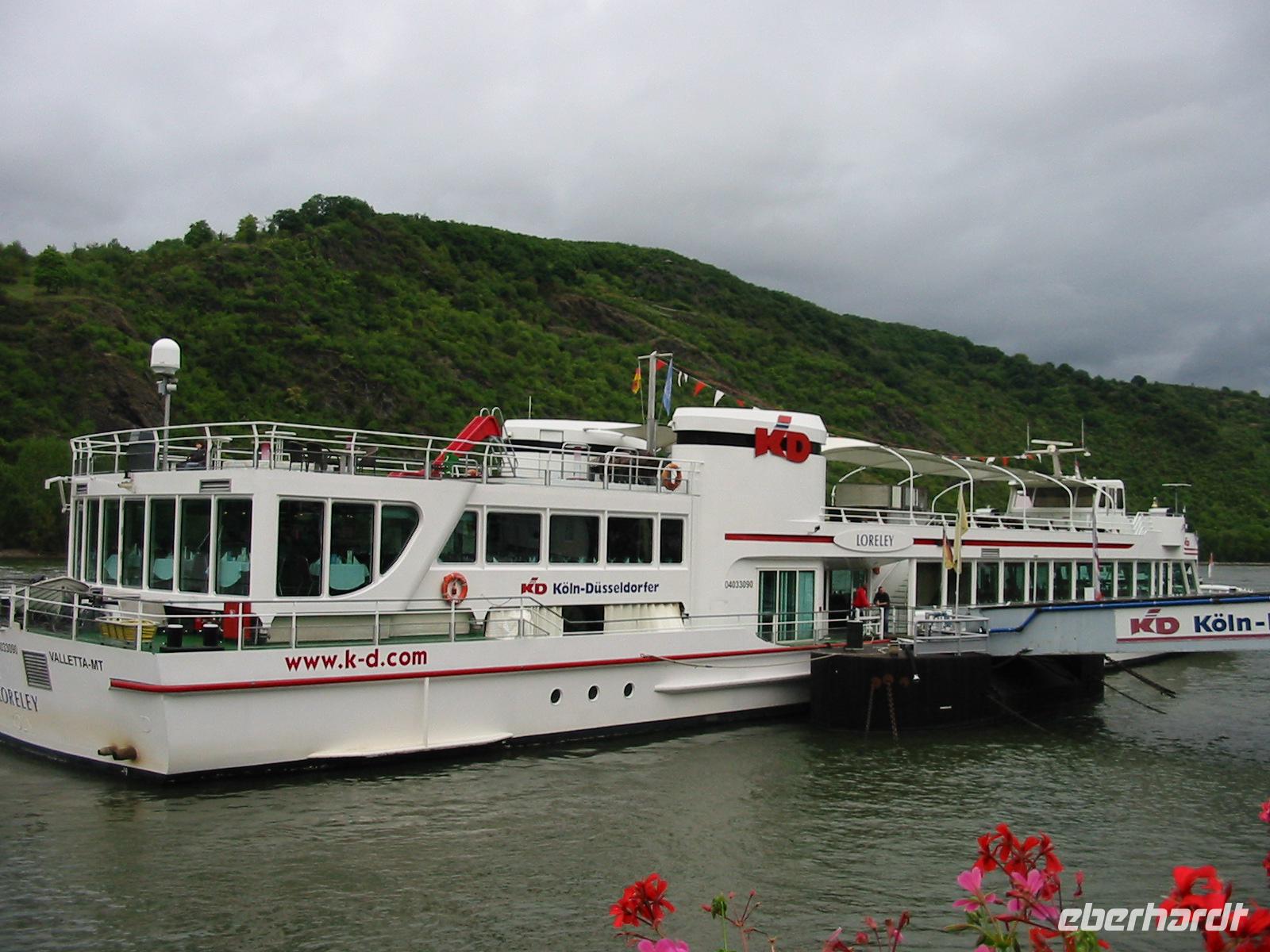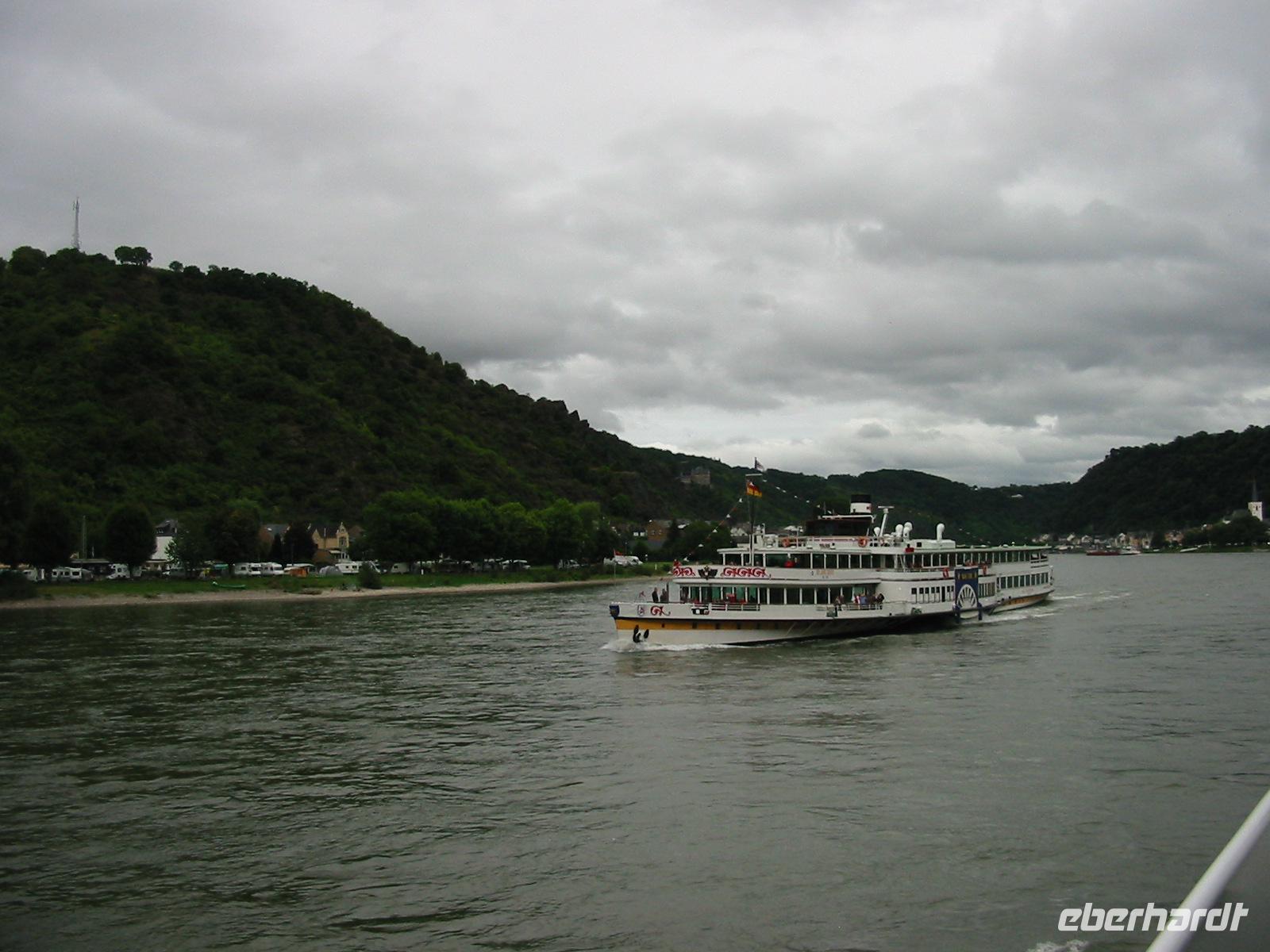 Wir genehmigen uns eine kleine Ruhepause, denn 15.30 Uhr geht es nämlich schon wieder weiter. Heute ist in Oberwesel die Veranstaltung „Rhein in Flammen". Es werden natürlich viele Menschen erwartet, die sich dieses Spektakel nicht entgehen lassen wollen. Wir fuhren nach Boppard und stiegen dort auf das Schiff „Loreley". Es verlief alles ruhig und ohne Gedränge. Unsere Plätze waren reserviert, somit konnten wir uns auf dem Schiff bewegen, ohne um unsere Sitzplätze bangen zu müssen. Uns wurde ein tolles 2- Gang- Menü serviert.