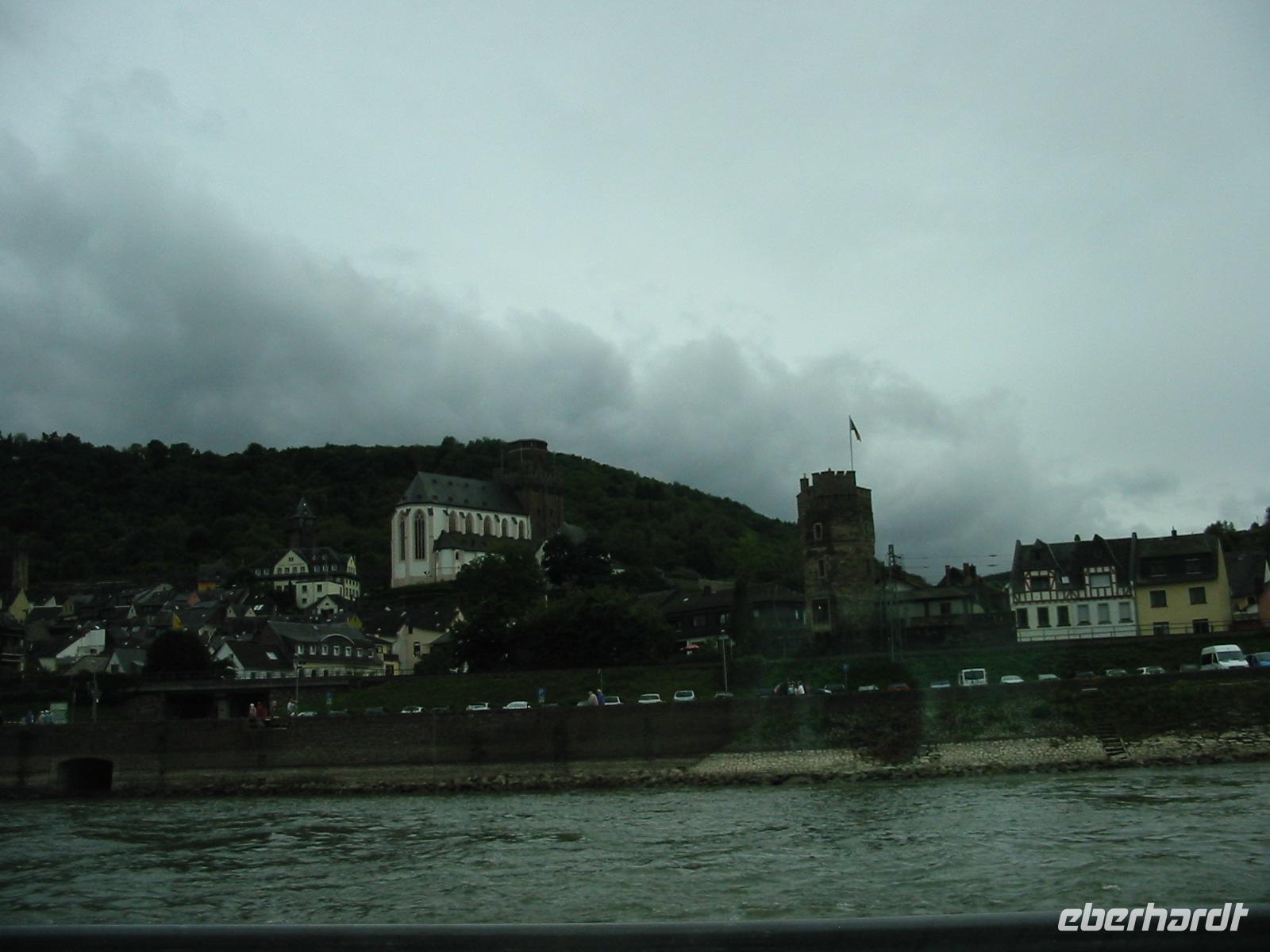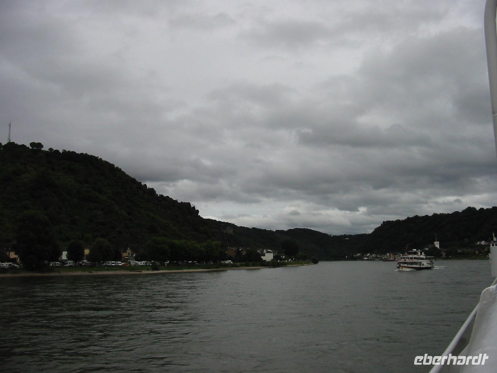 Auf unserer Fahrt auf dem Rhein grüßten rechts und links rot angestrahlte Burgen. Das Schiff fuhr bis Oberwesel. Es war mittlerweile dunkel geworden und von überall her begannen Feuerwerke die Landschaft zu erhellen.