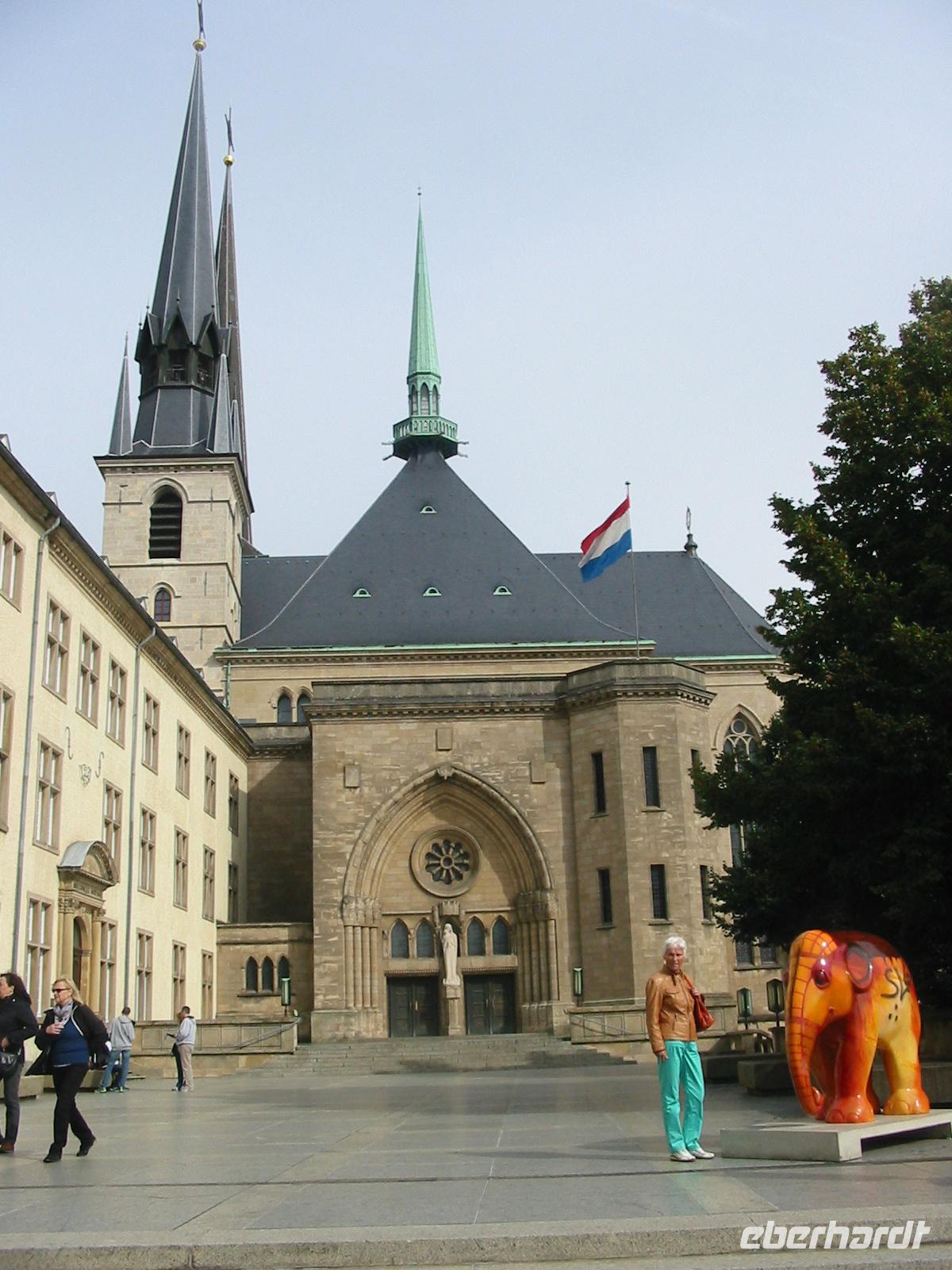 gleichnamigen Hauptstadt statteten wir einen Besuch ab und begannen unseren Stadtrundgang an der „Gelle Fra ", einer Statue, die auf einem Obelisk steht und zu Erinnerung an die luxemburgischen Soldaten errichtet wurde, die in den Kriegen gefallen sind. Vorbei am Reiterstandbild Wilhelm II. von Oranien ging es zum Großherzoglichen Palast, vor dem Wachen auf und ab gingen. Auch der Kathedrale Notre- Dame statteten wir einen Besuch ab.