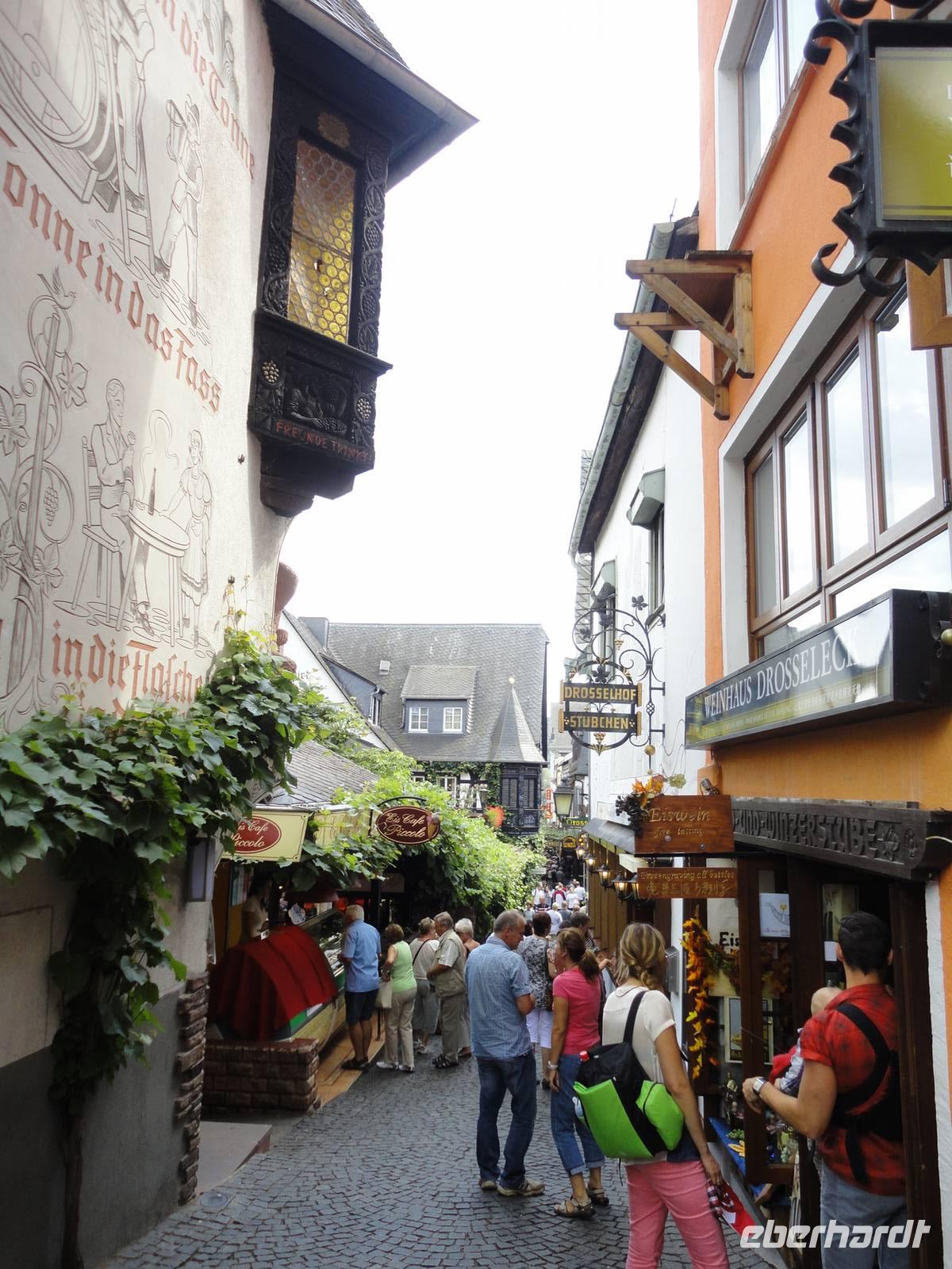 Die Freizeit in Rüdesheim konnten wir nach unserem Belieben verbringen. So schlenderten einige von uns in den schönen Gassen umher, andere entspannten in den Cafés und wieder andere besuchten das Weinmuseum mit der kostenlosen Ausstellung, die verschiedene Weinpressen zeigt, die früher zur Weinherstellung benutzt wurden.