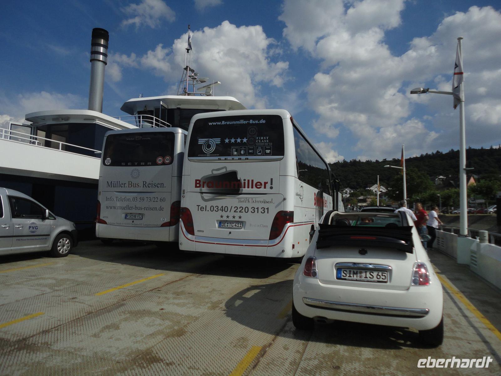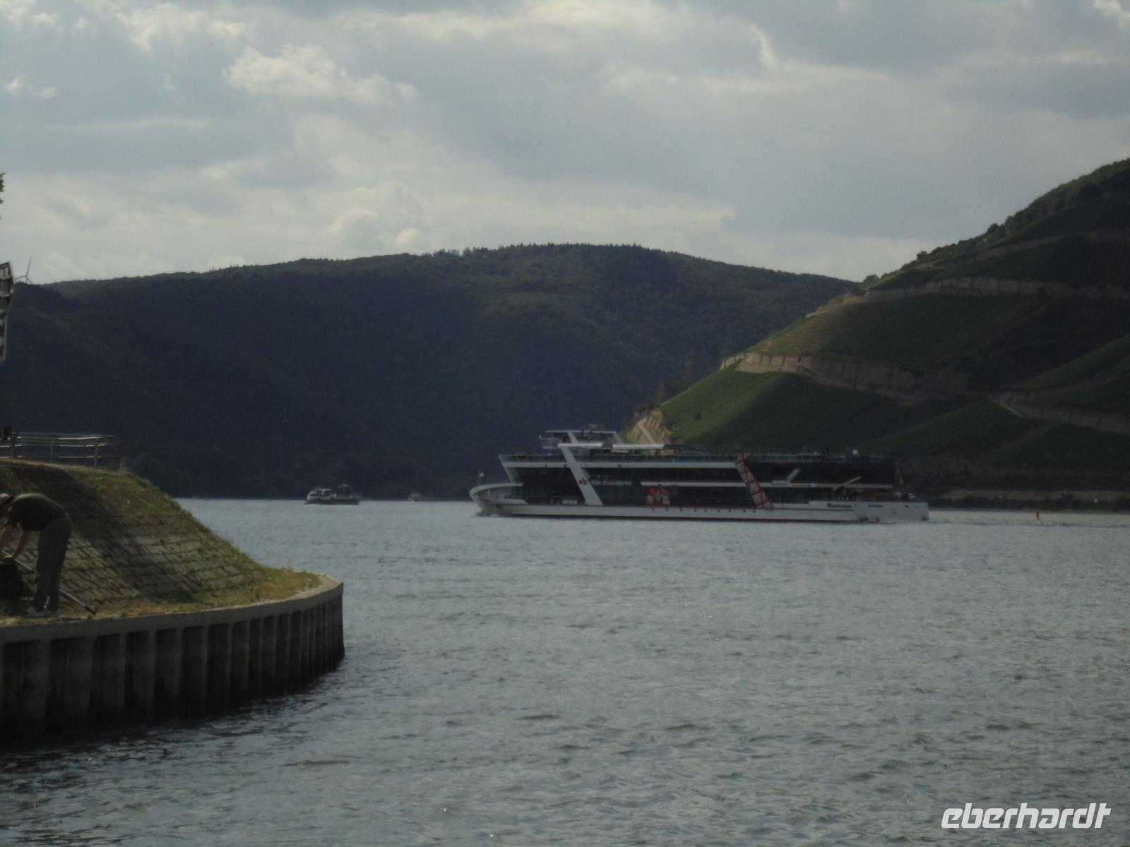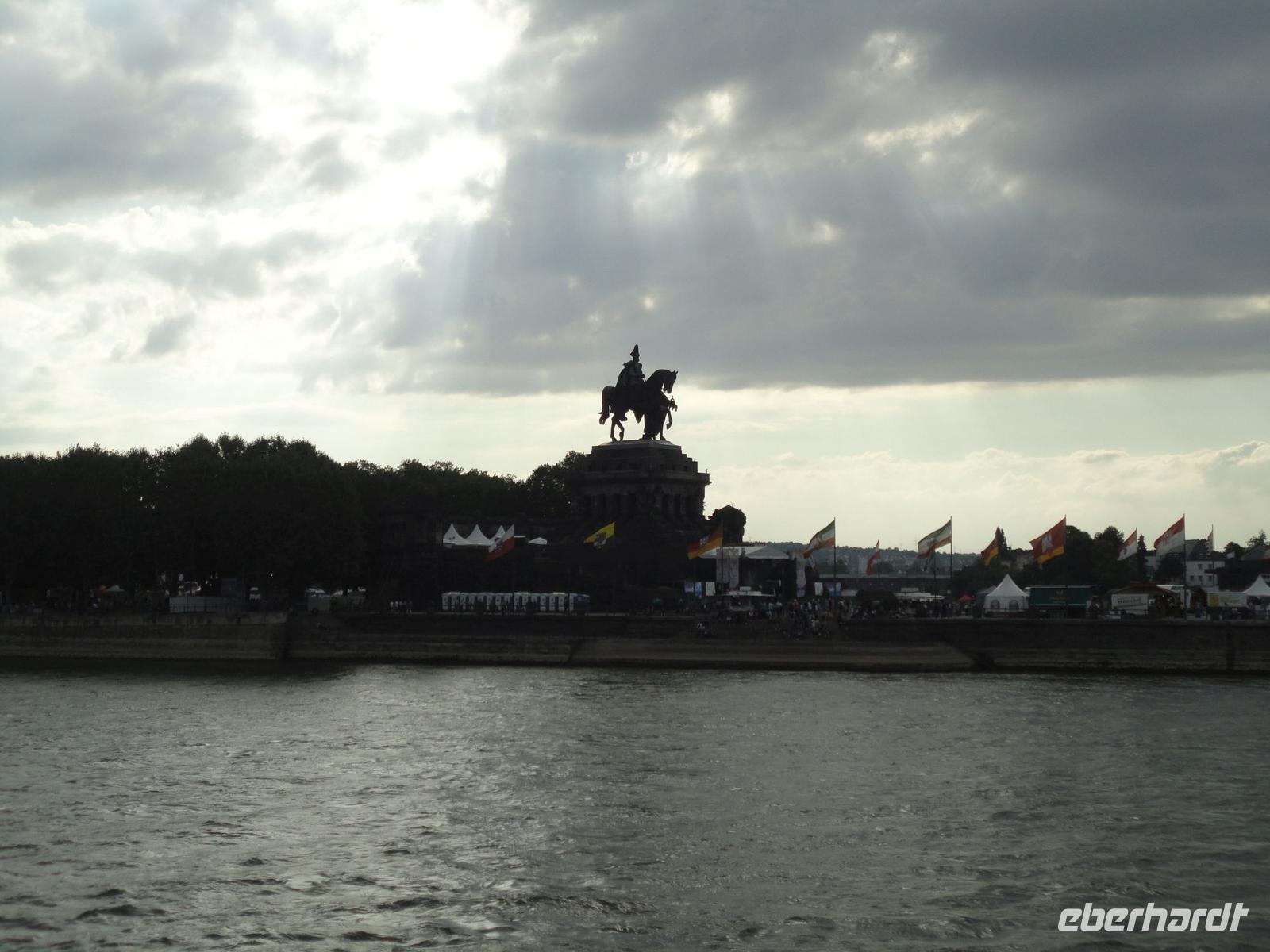 Nach dem leckeren Süppchen, welches wir zum Mittag im Hotel einnahmen, machten wir uns 14:00 Uhr auf den Weg nach Neuwied, da hier unsere "Rheinenergie" an- und ablegen und uns den Rhein in Flammen darbieten sollte. Da ziemlich viele Autos und Busse unterwegs zu diesem Spektakel waren, dauerte es eine kurze Weile, bis wir einen geeigneten Parkplatz in der Nähe des Anlegestelle finden konnten. Doch zum Glück hatten wir unseren Max dabei, der sich bestens auskannte. Volker rangierte in engsten Gassen und setzte uns sicher und höchst beeindruckend am Parkplatz ab. Nun hatten wir noch eine gute halbe Stunde Zeit, am Pier entlang zu spazieren, Käffchen zu trinken oder einfach die Zeit mit Warten zu überbrücken.
