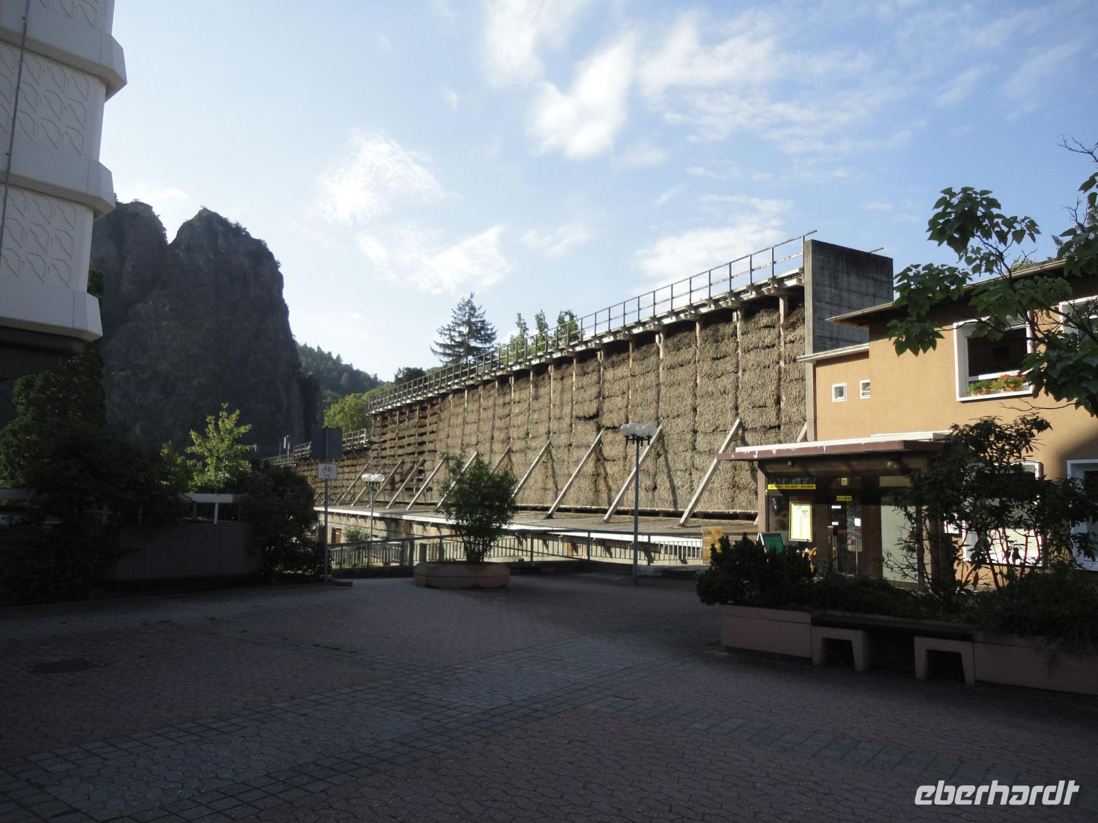 Nachdem wir uns mit einem leckeren Frühstück gestärkt hatten, fuhren wir pünktlich halb neun mit Volker nach Bad Münster. Die Strecke von 20 Kilometern verkürzte sich durch die lustigen und interessanten Geschichten von Volker noch mehr. In Bad Münster liefen wir einige Meter und kamen an einer interessanten Wand an. Volker erklärte uns, dass das Gradierwerk aus zig tausend Verästelungen besteht, an denen Wasser herunter läuft, welches aus der Erde gezogen wird. Wir wunderten und zwar über einzelne schäumende Stellen, doch wie wir noch erfahren haben, waren dies Ansammlungen von Salz. Eine Kostprobe haben wir dann aber doch lieber nicht genommen, wir wollten den Tag ja nicht auf der Toilette verbringen.