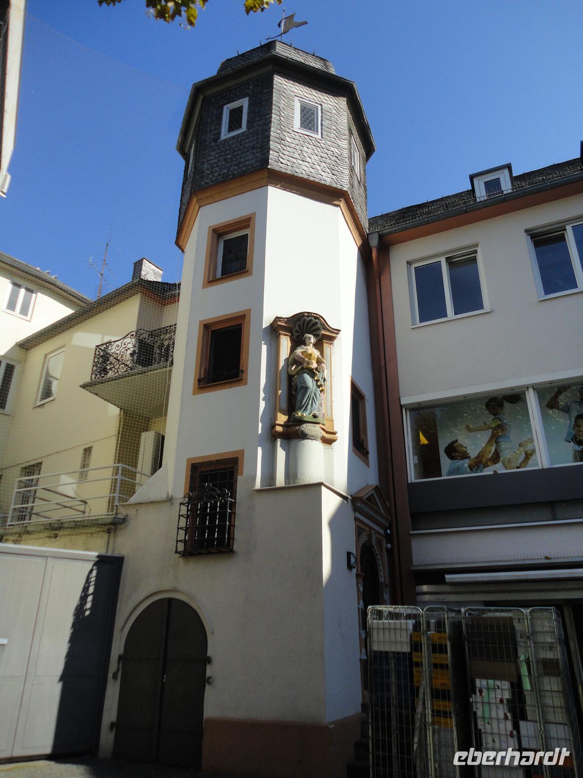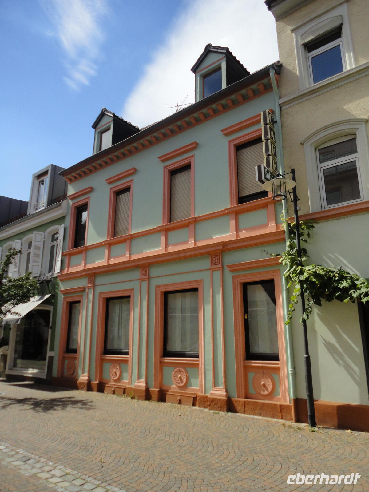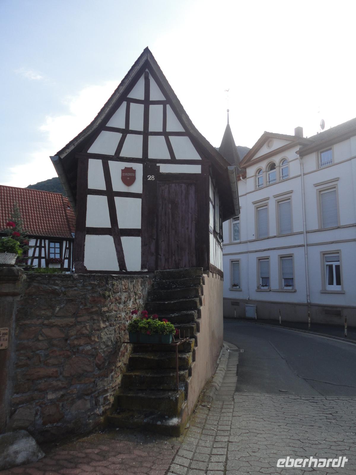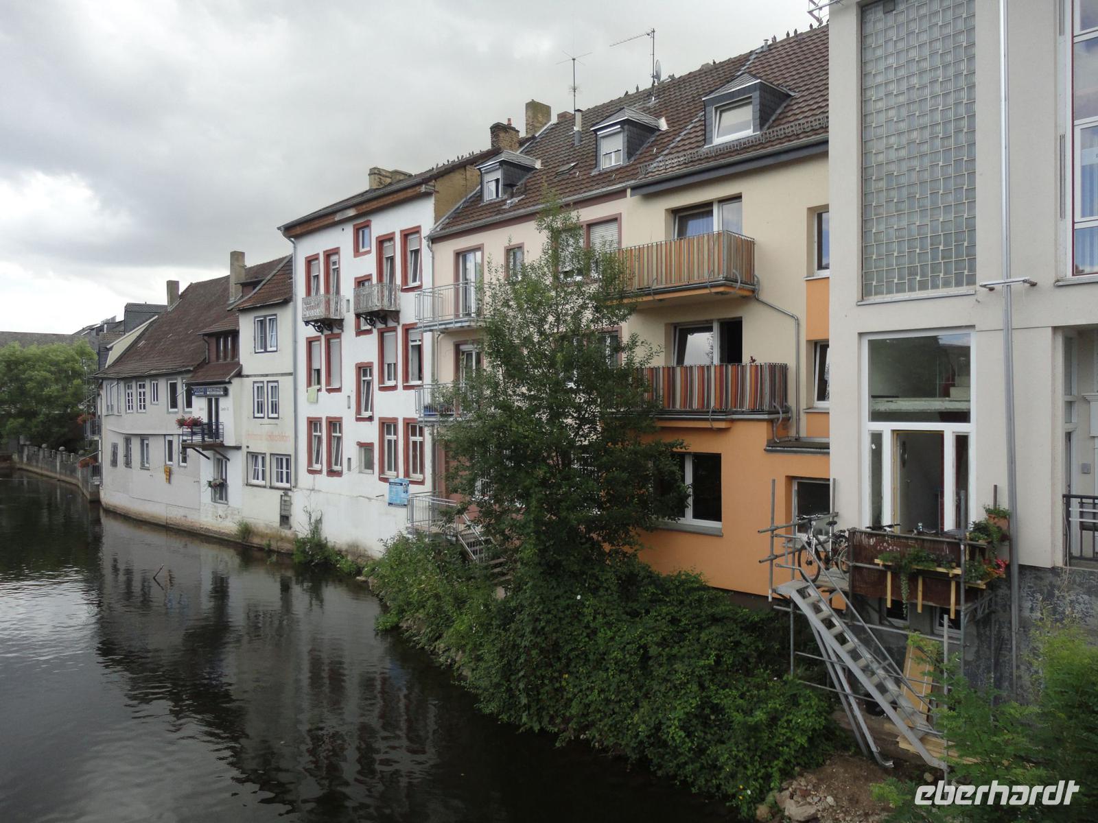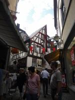 Gegen halb elf erreichten wir nach nur 10-minütiger Busfahrt Bad Kreuznach. Im Vergleich zu Bad Münster eine pulsierende Metropole. Wieder erklärte uns Volker die wichtigsten Daten zur Stadt und ließ uns dann "ausschwärmen". Bad Kreuznach bot ein interessantes Ambiente, eine pulsierende Einkaufsstraße nebst sehr ruhigen Gässchen, direkt am Fluss gelegen und mit wunderhübschen Fachwerkhäuschen geschmückt. Diese waren aber teilweise so schief, dass man sich fragen musste, ob sie denn stehen blieben? Nun, zumindest während unseres Aufenthaltes bekamen wir nichts dergleichen mit.