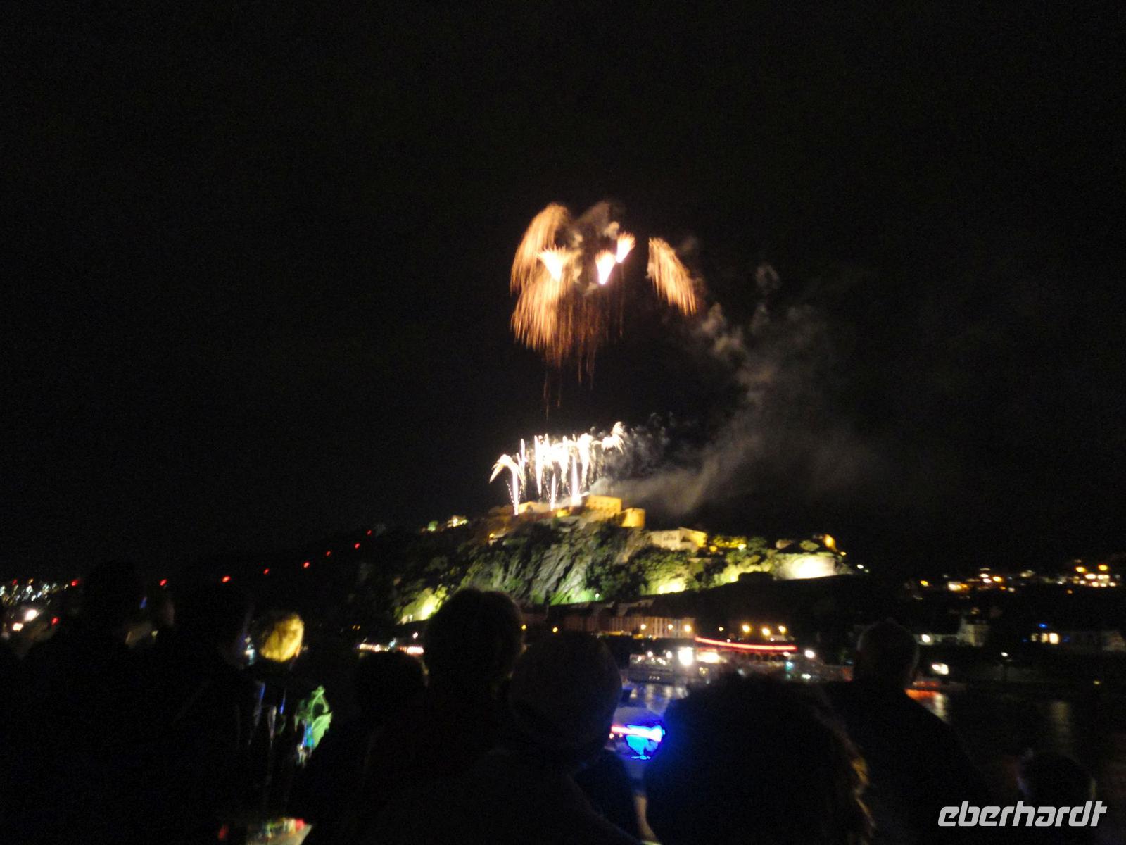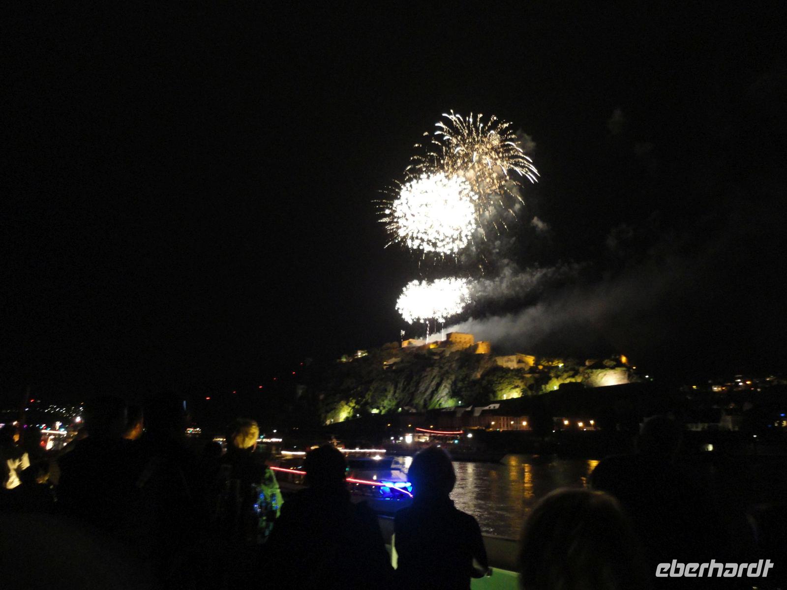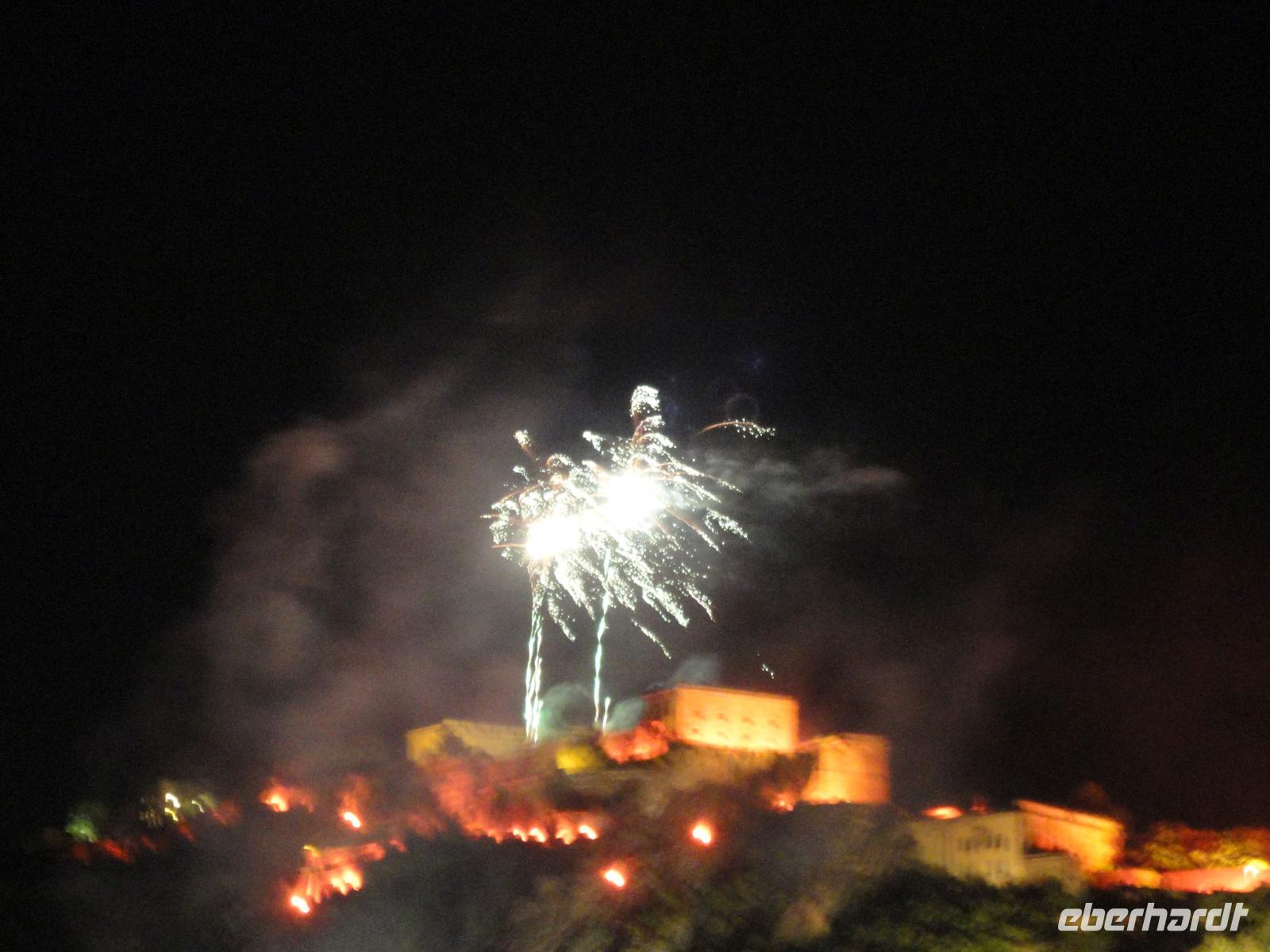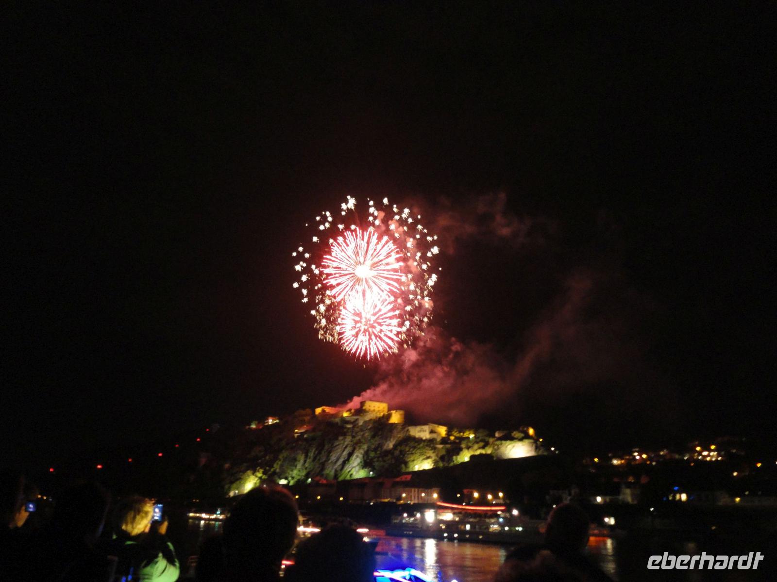 Gegen 21:30 Uhr begannen dann die ersten kleinen Feuerwerke, die bei dem noch nicht ganz dunkel gewordenen Himmel aber bereits bezaubernd wirkten. Wir konnten uns auf das kommende große Feuerwerk wirklich freuen. Pünktlich um 23:00 Uhr war es dann auch endlich so weit. Musik ging an, die Stimmung war perfekt und ein atemberaubend schönes Feuerwerk erfreute unsere Gemüter. Musik und Einsatz der Feuerwerke waren wirklich perfekt aufeinander abgestimmt. So bleibt uns nur noch zu sagen: "Freude schöner Götterfunken, Tochter aus Elysium. Wir betreten feuertrunken, himmlische dein Heiligtum. Deine Zauber finden wieder, was die Mode streng geteilt. Alle Menschen werden Brüder, wo dein sanfter Flügel weiht."