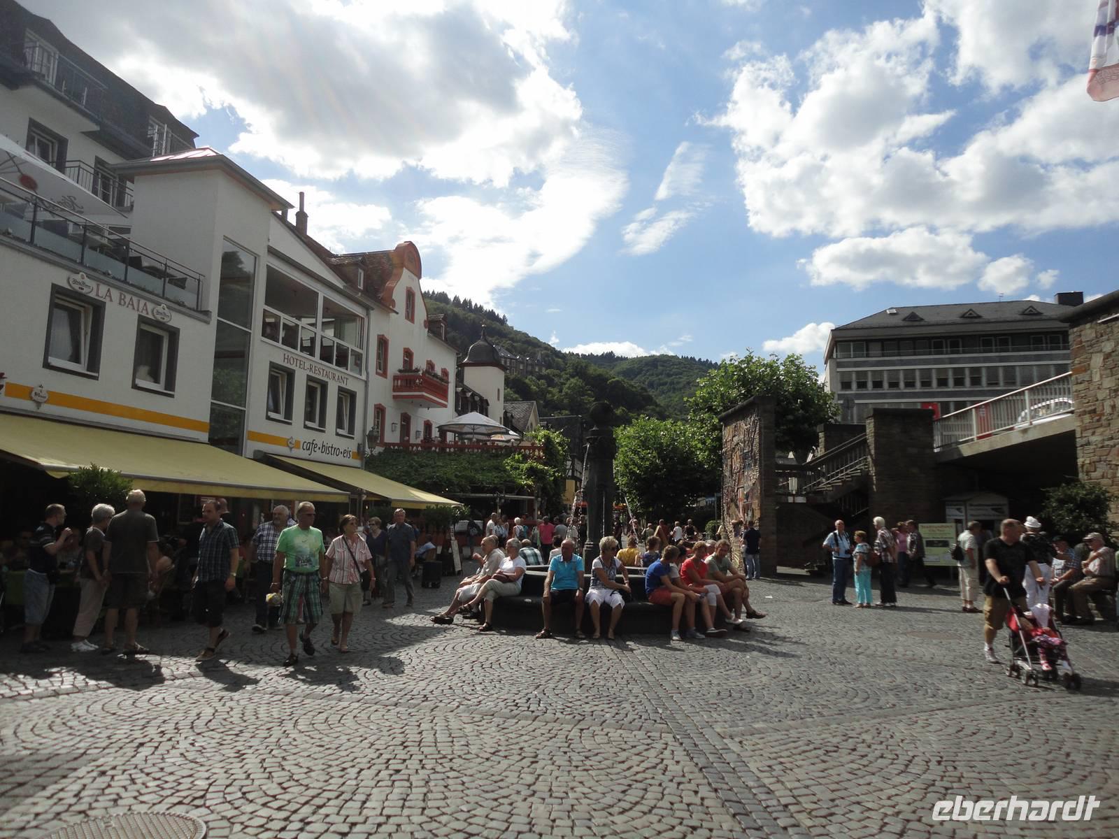 Am Nachmittag gegen 16:00 Uhr kamen wir schließlich in Cochem an. Die kleine gemütliche Stadt überzeugte uns durch ihr charmantes Ambiente. Bei individueller Freizeit erkundeten wir das kleine, aber sehr touristische Örtchen. So besuchen jährlich etwa drei Millionen Besucher Cochem, nur 65.000 hingegen übernachten auch hier. Nach der Erkundung der Stadt oder der Reichsburg Cochem entschlossen wir uns, Koblenz nicht mehr zu besuchen, da im und vorm Ort durch das Rhein in Flammen-Spektakel des gestrigen Tages und durch den Jahrmarkt die Stadt komplett blockiert und dicht sein sollte. Glücklicherweise hatten unsere Ortskenner Volker und Shandor diese Information von einem befreundeten Busfahrer erhalten. So blieben uns lange Wartezeiten vor und in Koblenz erspart! Nach dem langen Vortag waren wir darüber doch froh, auch wenn wir es natürlich schade fanden, dass wir Koblenz nicht noch einmal besucht haben. Zum Glück haben wir schon einen großen Teil der Stadt - das Deutsche Eck und die Promenade entlang des Rheins - bei unserer Schifffahrt entdecken können. So fuhren wir zufrieden und mit neuen Erfahrungen bereichert in unser Hotel mit der familiären und überaus freundlichen Atmosphäre zurück.