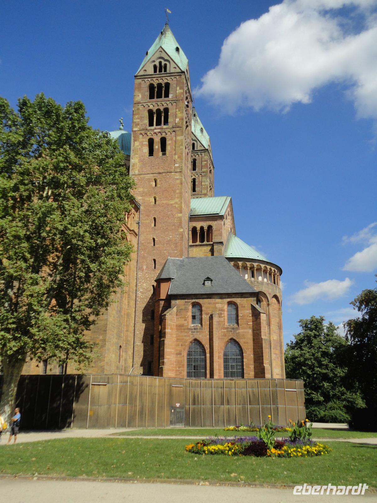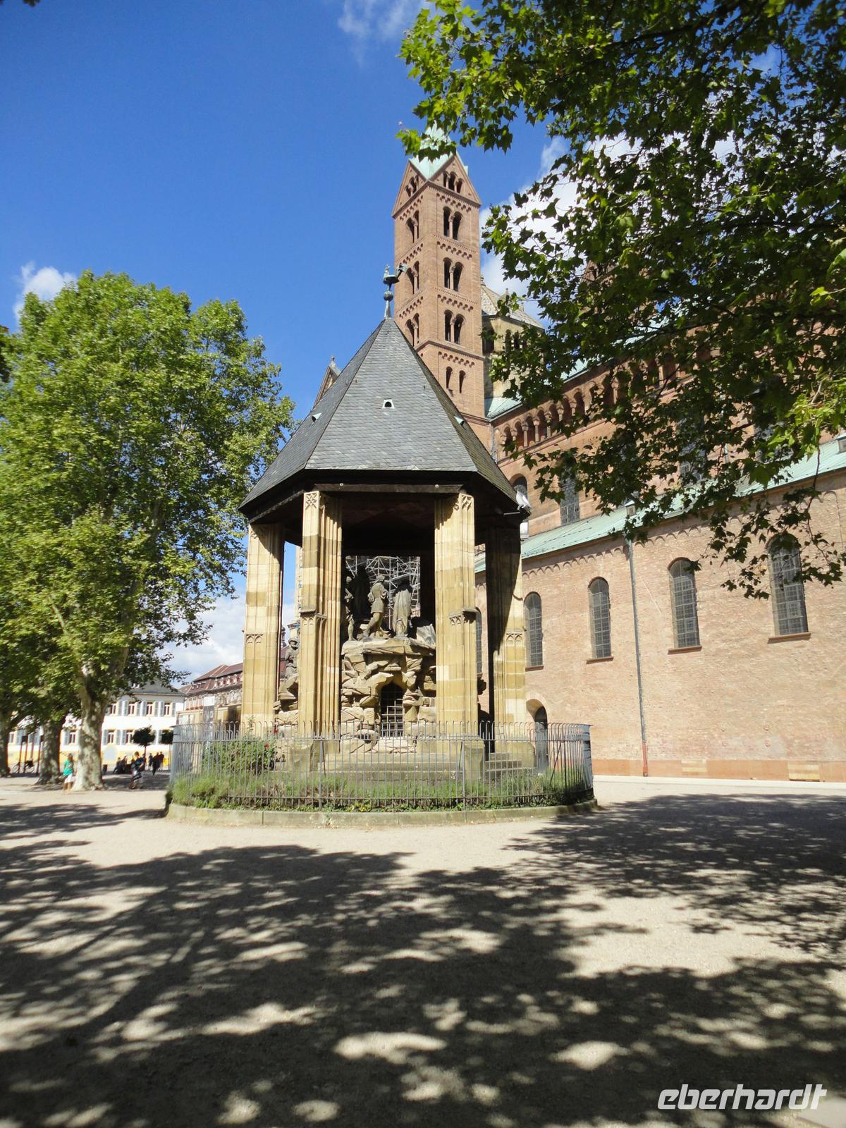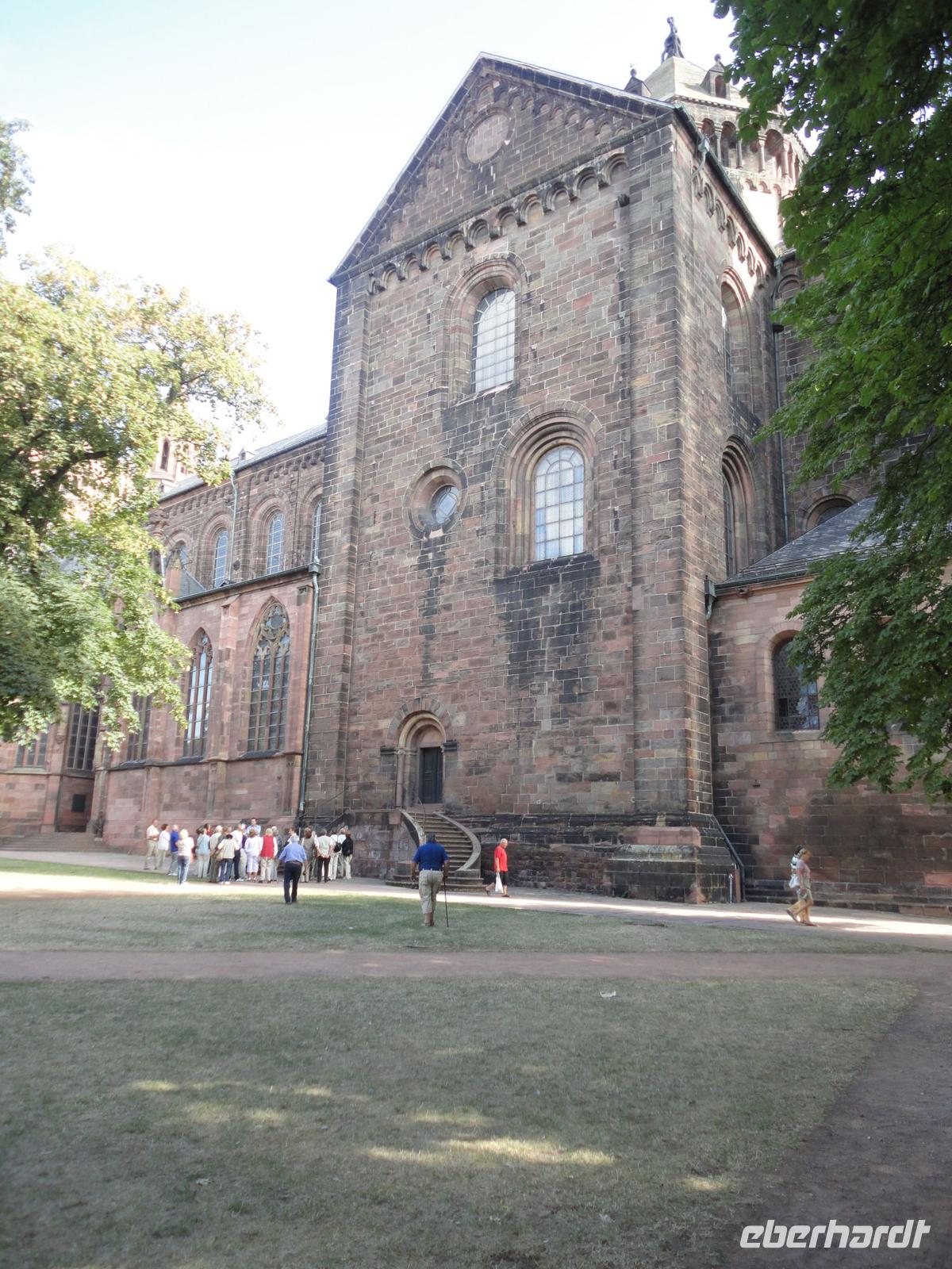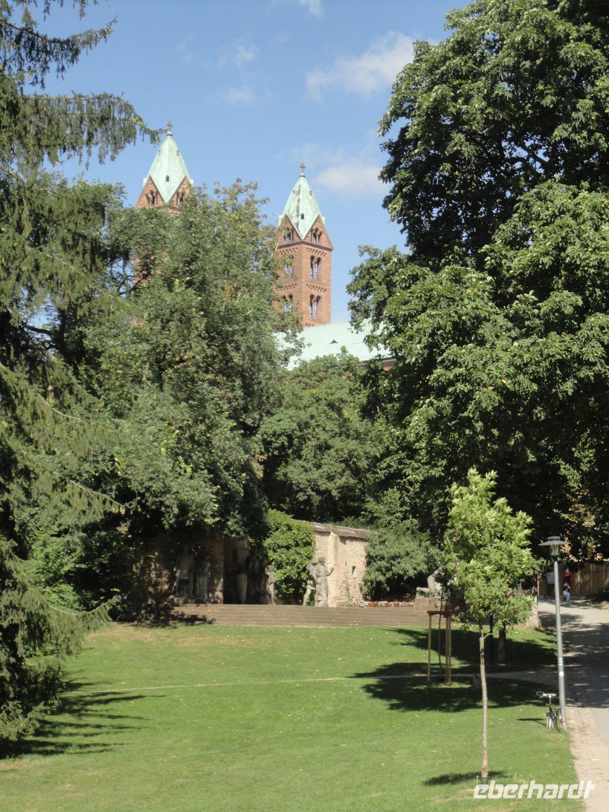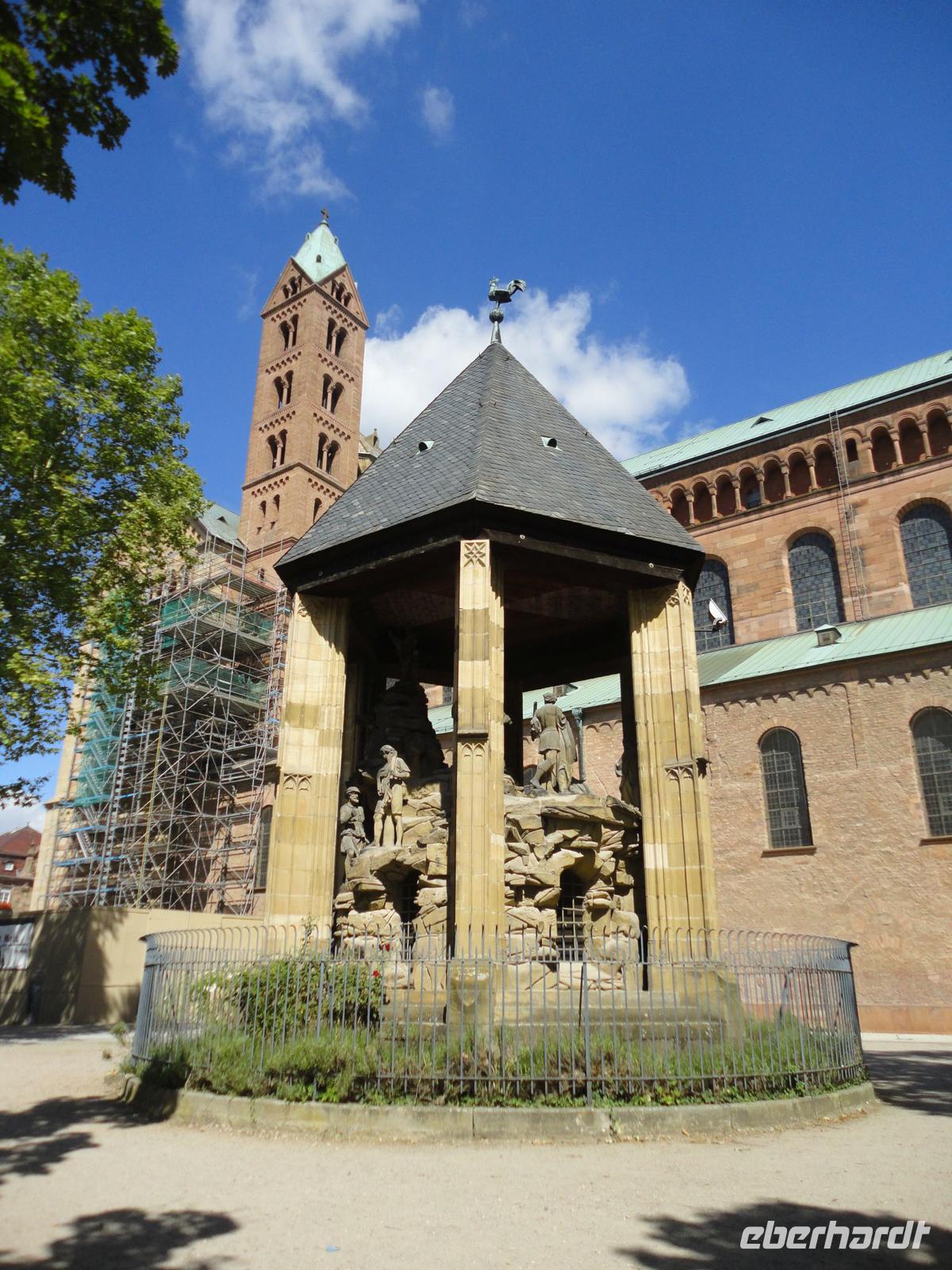 Nachdem wir die gute halbe Stunde Freizeit auch rumgekriegt haben, sind wir weiter nach Speyer gefahren, um den größten der drei Kaiserdome zu besichtigen. Im Gegensatz zum Wormser Dom ist der Speyer Dom von hellem Sandstein und prächtiger Größe. Hier konnten und sollten die Menschen ehrfürchtig in Staunen versetzt werden. Direkt vor dem Dom hatten wir Sicht auf den Kaiserpalast und die schöne Altstadt. Beim individuellen Freigang konnten wir die Stadt nach persönlichem Belieben erkunden. Das Technikmuseum, welches wir bei der Einfahrt erblickt haben, konnten wir aber leider aufgrund des Zeitmangels nicht besichtigen - empfahl uns Shandor doch, sich mindestens einen Tag für die Besichtigung des Museums zu nehmen. Bleibt uns wohl nichts anderes übrig, als noch einmal nach Speyer zu kommen.