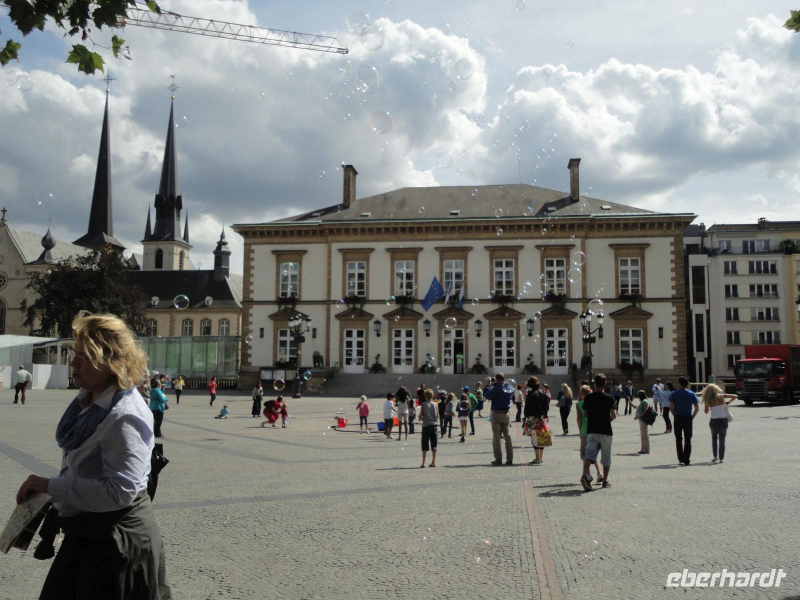 Nach der kleinen Mittagspause, in der wir wie üblich Würstchen und Suppe verspeisten, ging es direkt weiter nach Luxemburg. Diese beeindruckende Hauptstadt mit 85.000 Einwohnern hat es uns wirklich angetan. Dank Shandor haben wir den Fürstenpalast und die Säulen mit den uns nachblickenden Augen bewundern können. Die knappe Stunde Freizeit haben wir in diesem multikulturellen Schmelztiegel auch schnell rumgekriegt.