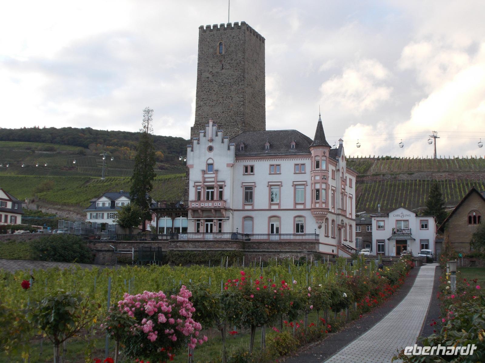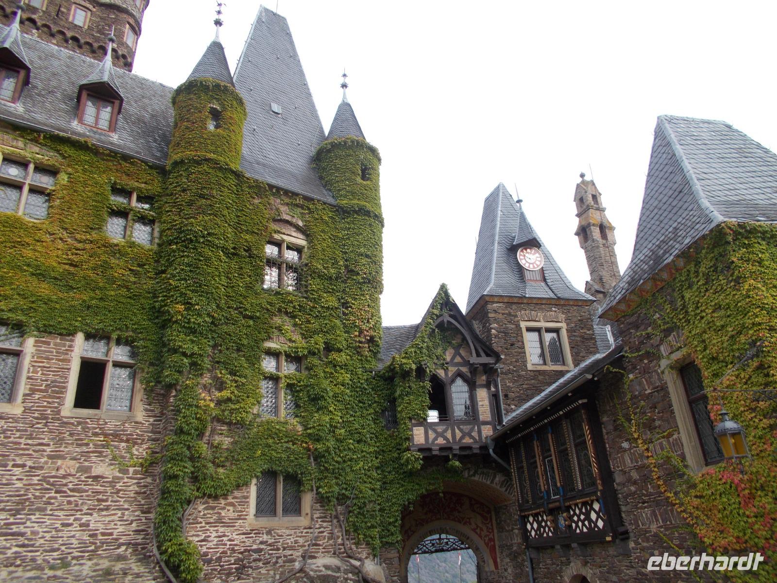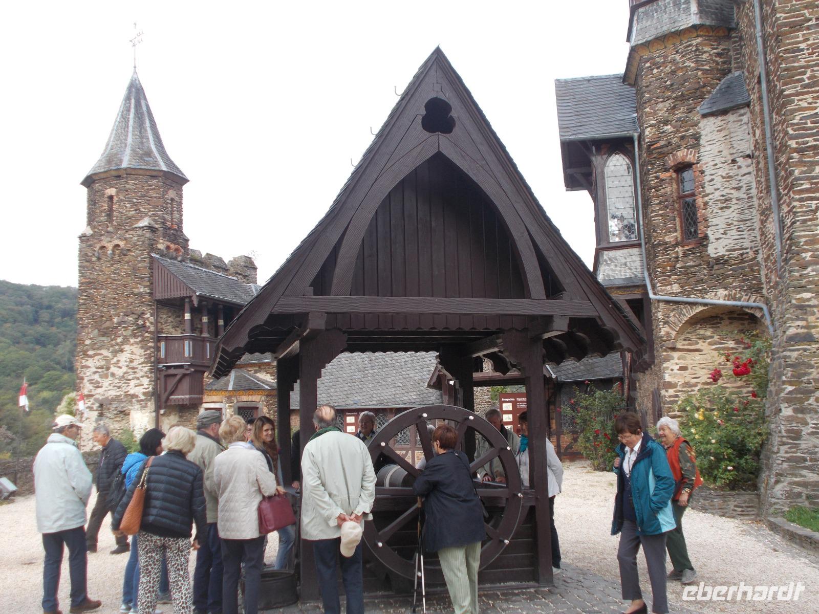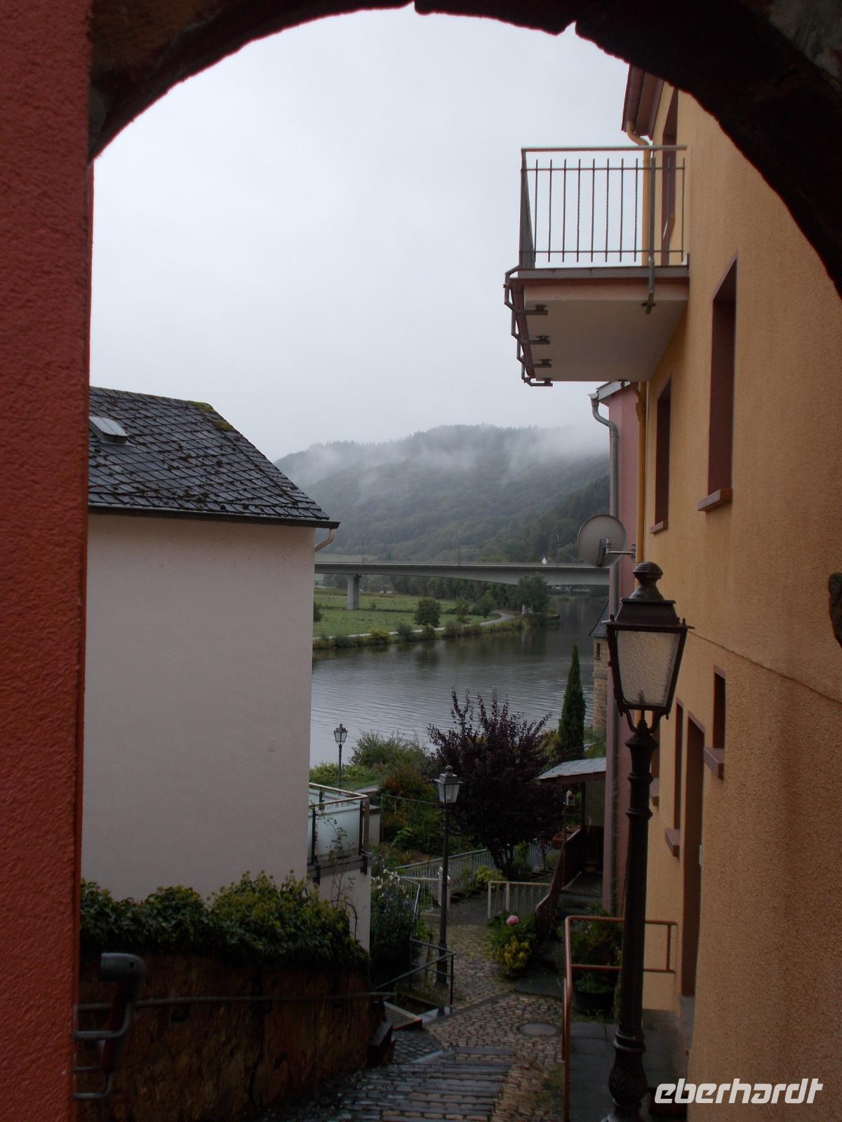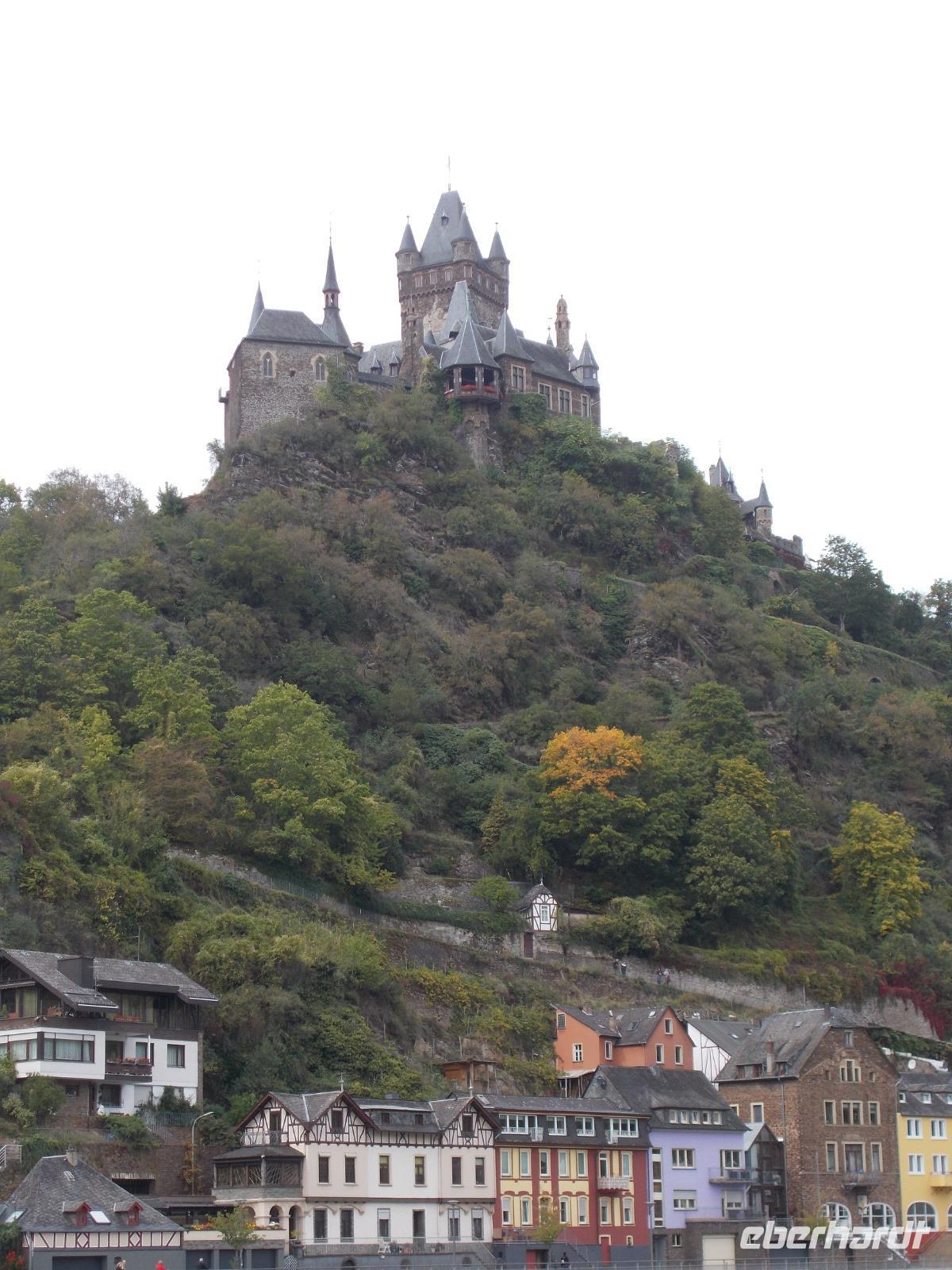 Pünktlich zum Frühstück machten wir in Cochem fest.Die rheinland-pfälzische Stadt ,an der Mosel,war im Frühnebel eingehüllt.Vom Schiff aus hatten wir schon einmal einen tollen Blick auf die Reichsburg,die von den Pfalzgrafen als Zollburg diente.Bequem wurden wir mit einem Kleinbus,vom Schiff zum Burgtor,chauffiert.Im Moseltal gab es früher viele bewohnte Burgen,die leider 1689 von französischen Truppen zerstört wurden. Glücklicherweise gefiel die Ruine dem Berliner Kaufmann, Louis Ravene'und er ließ sie 1868 wiederaufbauen.Wir schauten uns staunend in seinem Sammelsurium mit seinen vielen Geheimtüren um.Einen ganz besonderen Blick vom Balkon aus,hatten wir auf die Moselschleife bei Cochem.Es folgte eine Stadtführung durch die engen verwinkelten Gassen.In den schönen Fachwerkhäusern lockten ganz viele Cafes und Weinstuben zum Verweilen ein.Ein Bummel über die Moselbrücke führte uns zurück zum Schiff. Mit einsetzendem Regen passierten wir den steilsten Weinberg Europas ,den Bremmer Calmont und einige der 10 Schleusen auf der Mosel. Den Nachmittag verbrachten wir bei Kaffee und Kuchen in der Panorama Bar.Verkürzt wurde uns die Zeit ,durch einen sehr interessanten Vortrag, über das" Auf und Ab"auf Wasserstraßen.