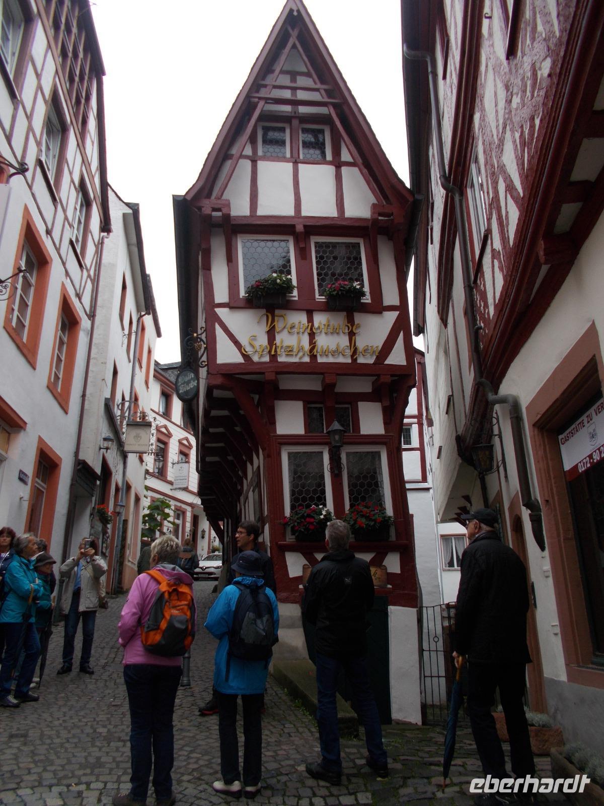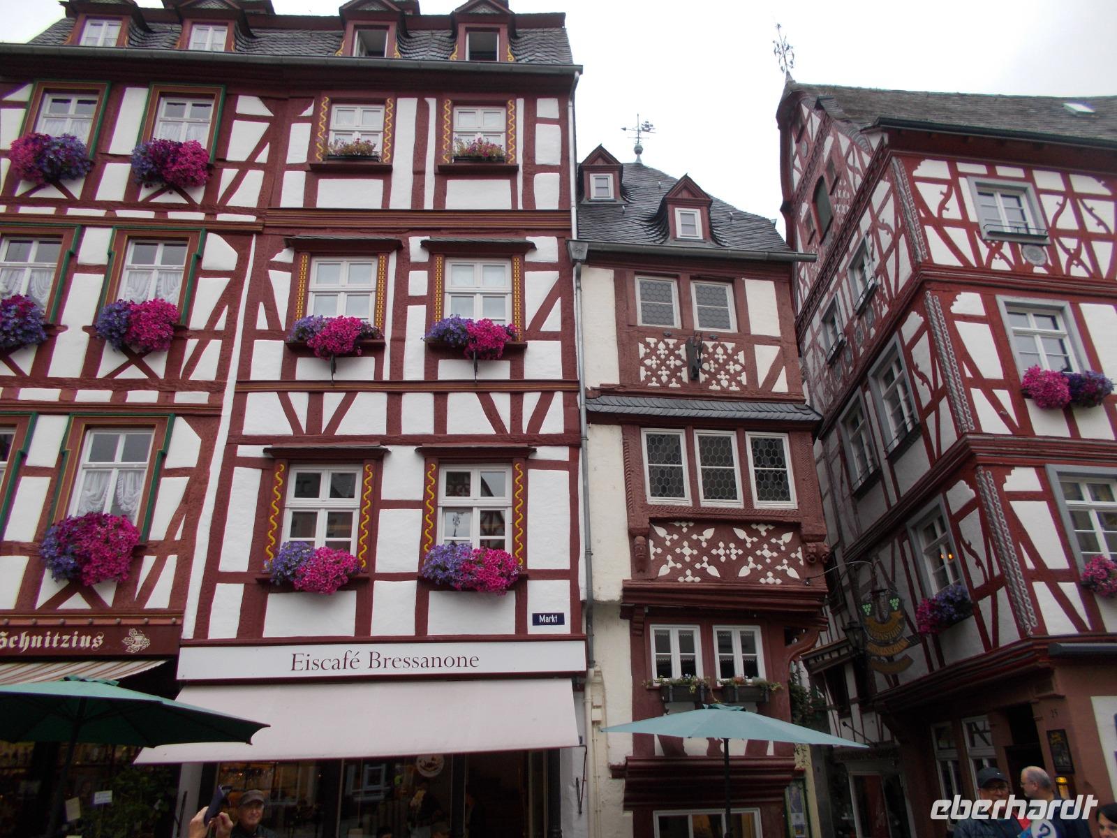 Über Nacht hatten wir die Mosel erreicht und unser Anleger war im Zentum von Bernkastel Kues.Bekannt ist die Stadt für ihren Doktor-Weinberg.Sie wird auch als „internationale Stadt der Rebe und des Weins „bezeichnet.An den Hanglagen,im Tal der Mosel,auf Schieferböden-gedeiht besonders gut der Riesling.Im Weinkeller des Weingutes" Bergweiler-Pauly"konnten wir uns, bei einer Weinprobe,davon überzeugen.Die Altstadt ,mit dem prächtigen ,malerischen Fachwerkhäusern zählt zu den sehenswertesten in der Region.Noch heute sind die Einflüsse, des Gelehrten Nikolaus von Kues,zu spüren und zu sehen.Nach unserem Rundgang erwartete uns ein entspannter Tag an Bord.Am Abend wurden wir vom Kapitän verabschiedet und mit einem Gala-Menü verwöhnt.Die Krönung war die Präsentation der Eistorte.In der Bar konnte man den Abend ,bei einem guten Drink,weiter genießen.