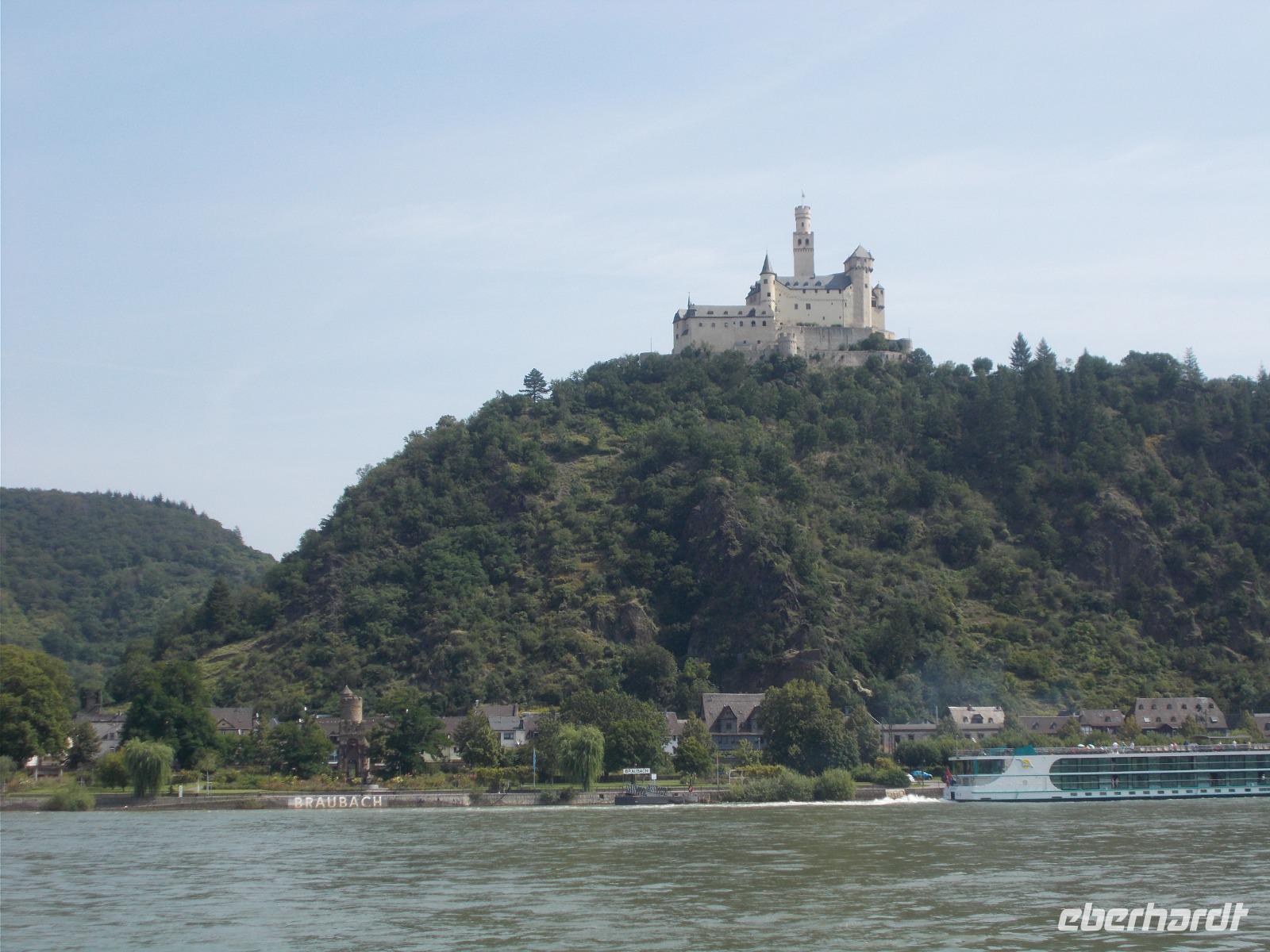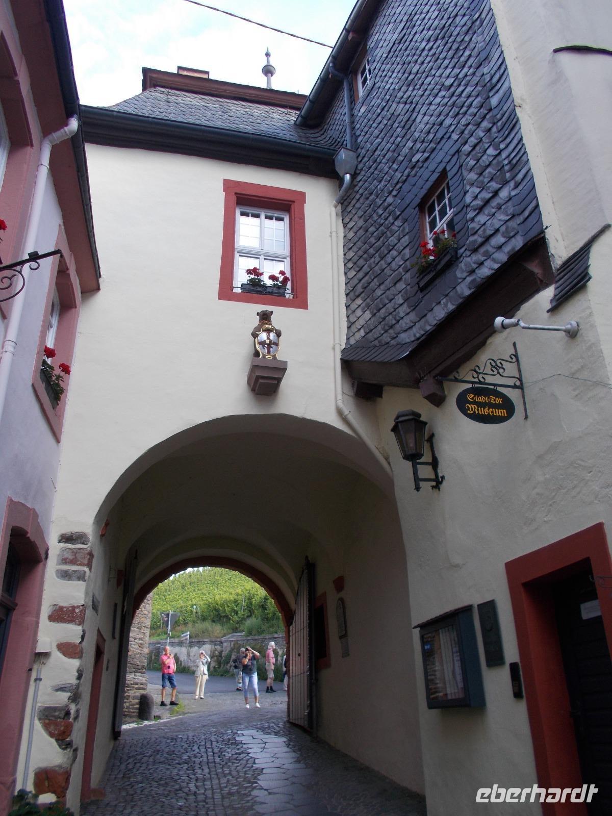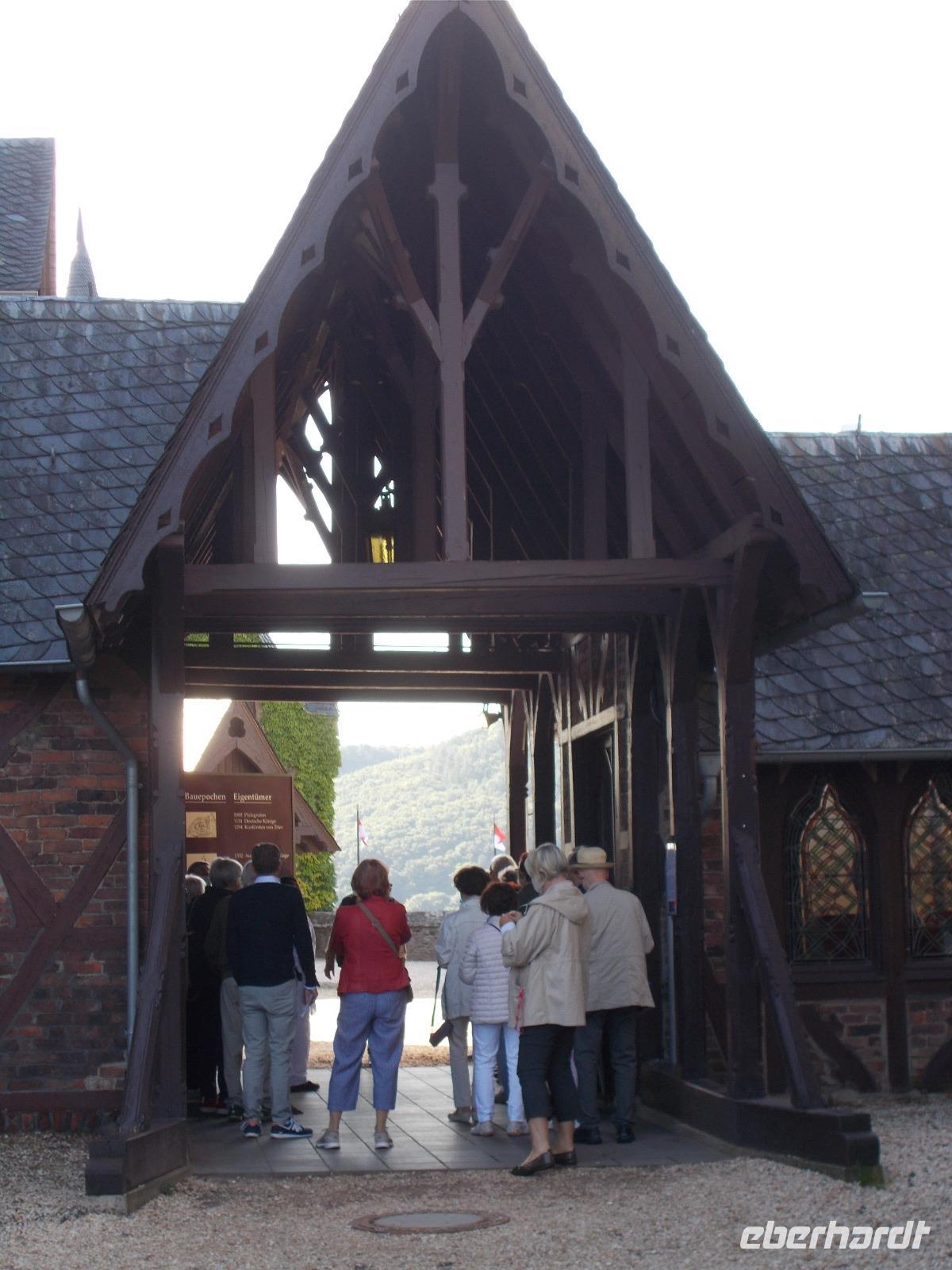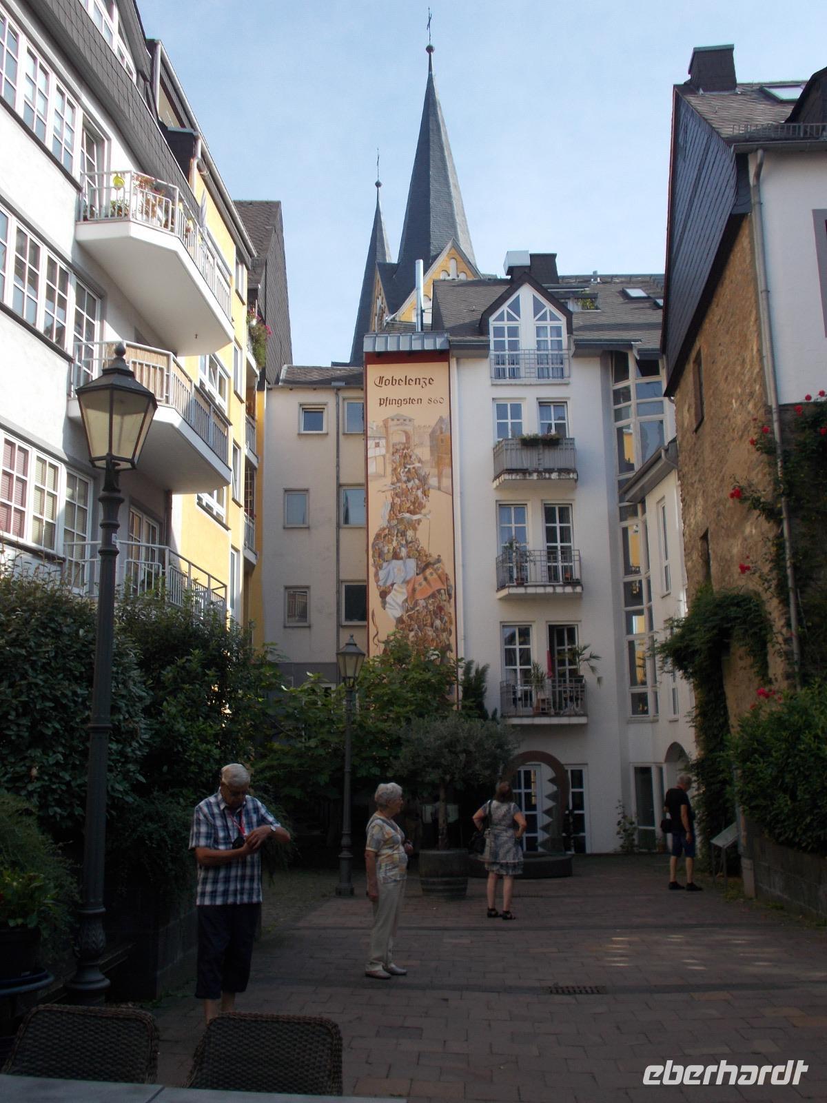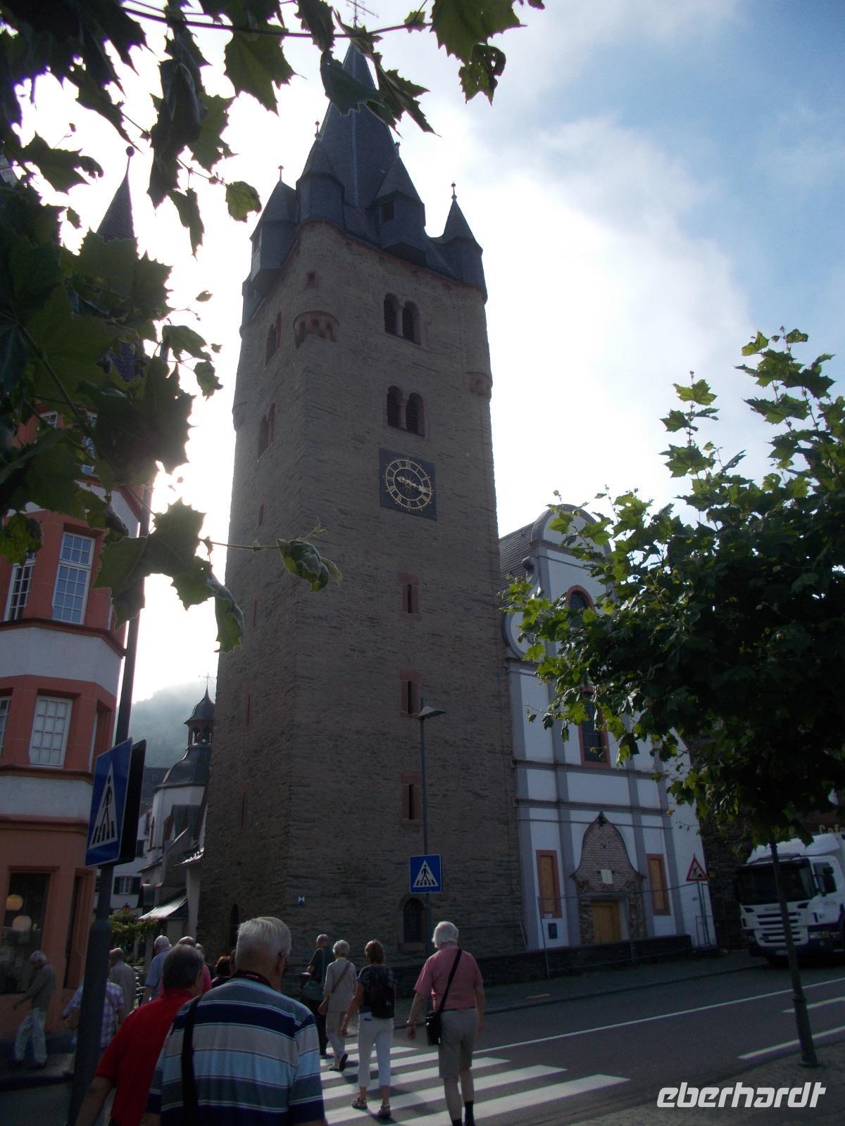 Nach dem Frühstück geht es gleich hoch hinaus, zur Reichsburg in Cochem. Bei einer Führung erhielten wir einen Einblick in die wechselvolle Geschichte der Burg und deren Besitzer. Vom Burghof aus, hatten wir einen schönen Blick über die Stadt Cochem und hinüber zum Hausberg „Pinnerkreuz". Durch kleine Gassen und vorbei an mittelalterlichen Fachwerkbauten erreichten wir den Marktplatz mit seinem Glockenspiel und Brunnen. Ab hier war für alle Gäste dann Freizeit. Wer wollte schaute sich die Pfarrkirche St.Martin an, in der das Farbspiel der bunten Glasfenster dominierend ist. An der Moselpromenade wurden die hiesigen Weine zum Ausschank angeboten, (man konnte da auch mal naschen)oder man genoss, in einem der vielen Kaffeehäuser, einfach die Sonne und das bunte Treiben. Über die Moselbrücke gelangten wir wieder zurück zum Schiff, wo das Mittagessen schon auf uns wartete. Den Nachmittag verbrachten wir an Bord und ließen die herrliche Landschaft, die von steilen Weinbergen geprägt ist, an uns- flussaufwärts- vorbeiziehen. Uns faszinierten kleine, liebliche Flecken wie Beilstein, mit der über dem Ort trohnenden Ruine Metternich. Gespannt hielten wir Ausschau nach dem steilsten Weinberg im Moseltal, den Bremmer Calmund. Für uns war es kaum vorstellbar, wie der Weinbauer, in dieser Steil -und Gesteinslage die Reben bearbeiten kann