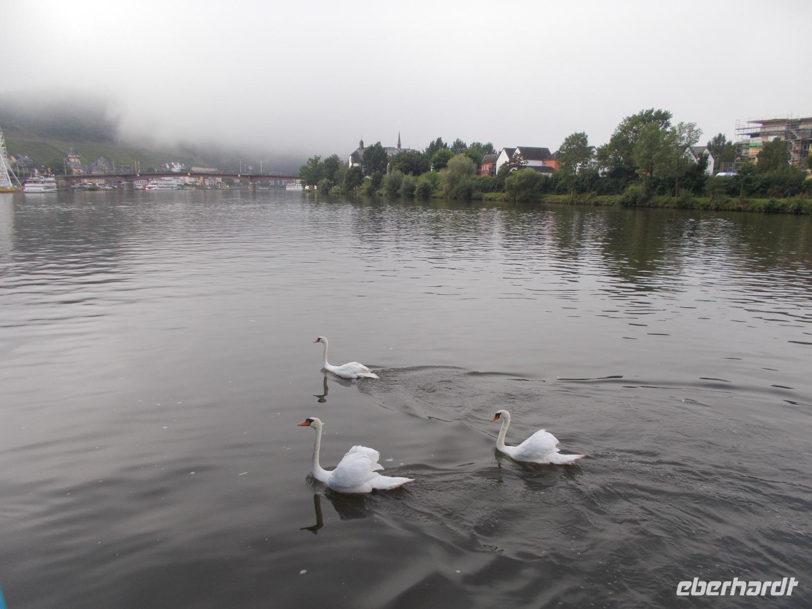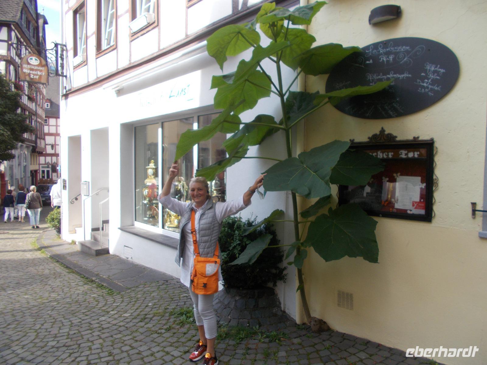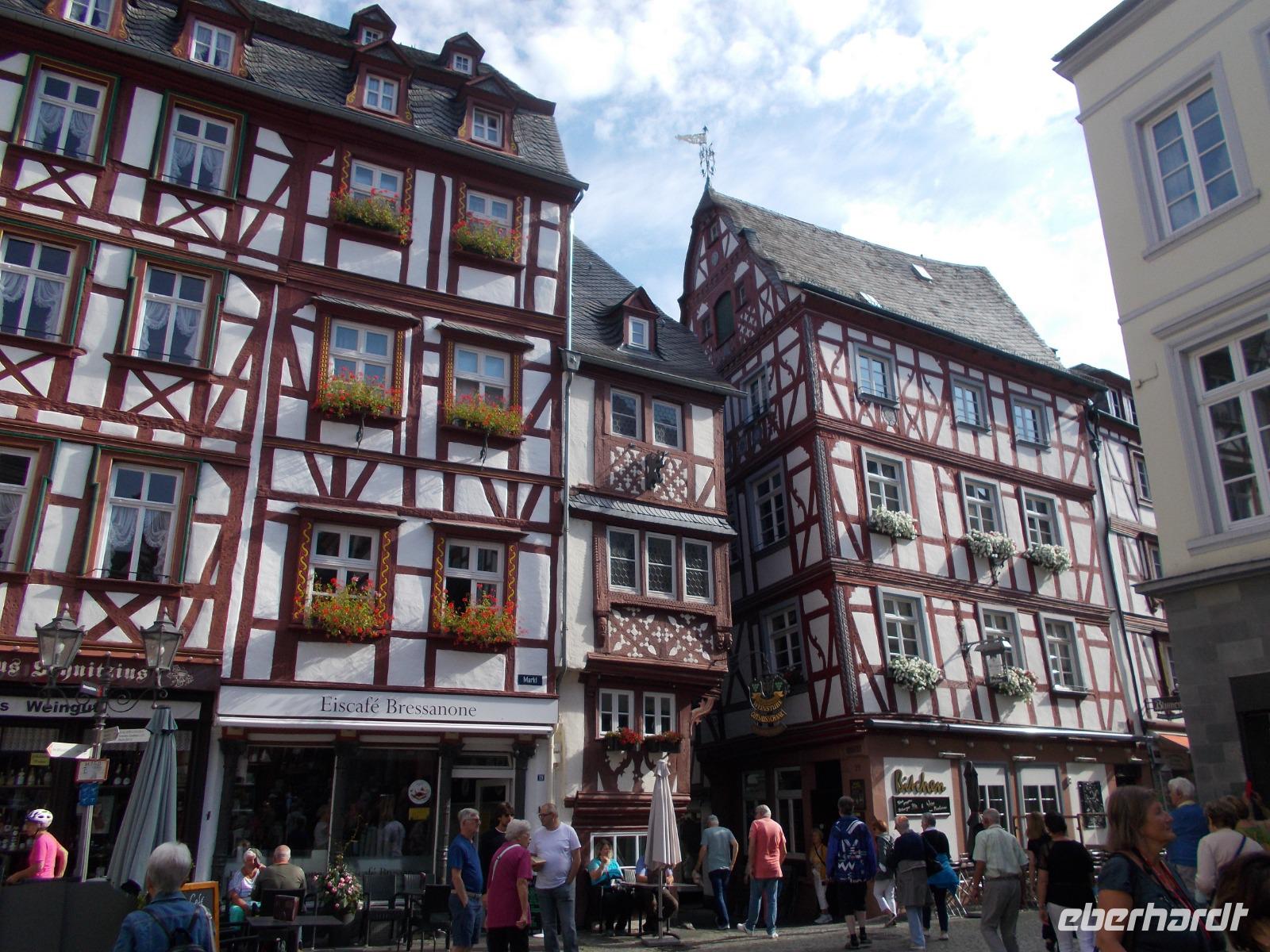 Auch heute früh bot sich uns wieder ein Naturwunder in Form von Nebel. Das Moseltal war eingehüllt und die grauen Schwaden schobeb sich nur langsam nach oben. Nach und nach wurde der Blick zur Burgruine Landsberg ,Sommerresidenz der Erzbischhöfe von Trier,frei.Der heutige Tag begann mit einem Spaziergang durch Bernkastell -Kues. Wir schlenderten durch die malerischen Gassen des mittelalterlichen Städtchens. Die alten Fachwerkhäuser zogen unsereBlicke immer wieder an.Über den Karlsbader Platz,dem Docktor Weinhaus,dem Graacher Stadttor und Bärenbrunnen gelangten wir zum St.Michaelsbrunnen.Am alten Rathaus ist noch der Pranger zu sehen(und zu Nutzen,wir waren aber alle lieb !)Nach der Freizeit erwartete uns im Weinhaus Dr.Pauly-Bergweiler eine Moselwein- Probe .Im historischem Kellergewölbe ließen wir uns die fünf gebotenen Weine schmecken .Den Ausbau und Geschmack der hiesigen Tropfen wird ganz stark von den drei Schiefersorten bestimmt.Gut gelaunt und mit den einen oder anderen Fläschchen ging es zurück zum Schiff.Der Nachmittag wurde vom Bordleben bestimmt.Auf dem Sonnendeck sitzend, ließen wir die liebliche Landschaft des Moseltals,noch einmal an uns vorbei ziehen. Am Abend lud der Kapitän zum Abschiedscocktail in die Panoramalounge .Gekrönt wurde der Abend mit einem wundervollem Abschiedsessen und natürlich durfte die Eisparade nicht fehlen.
