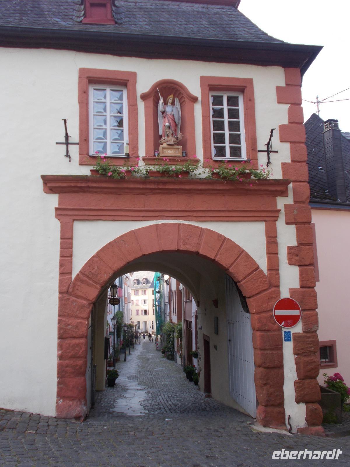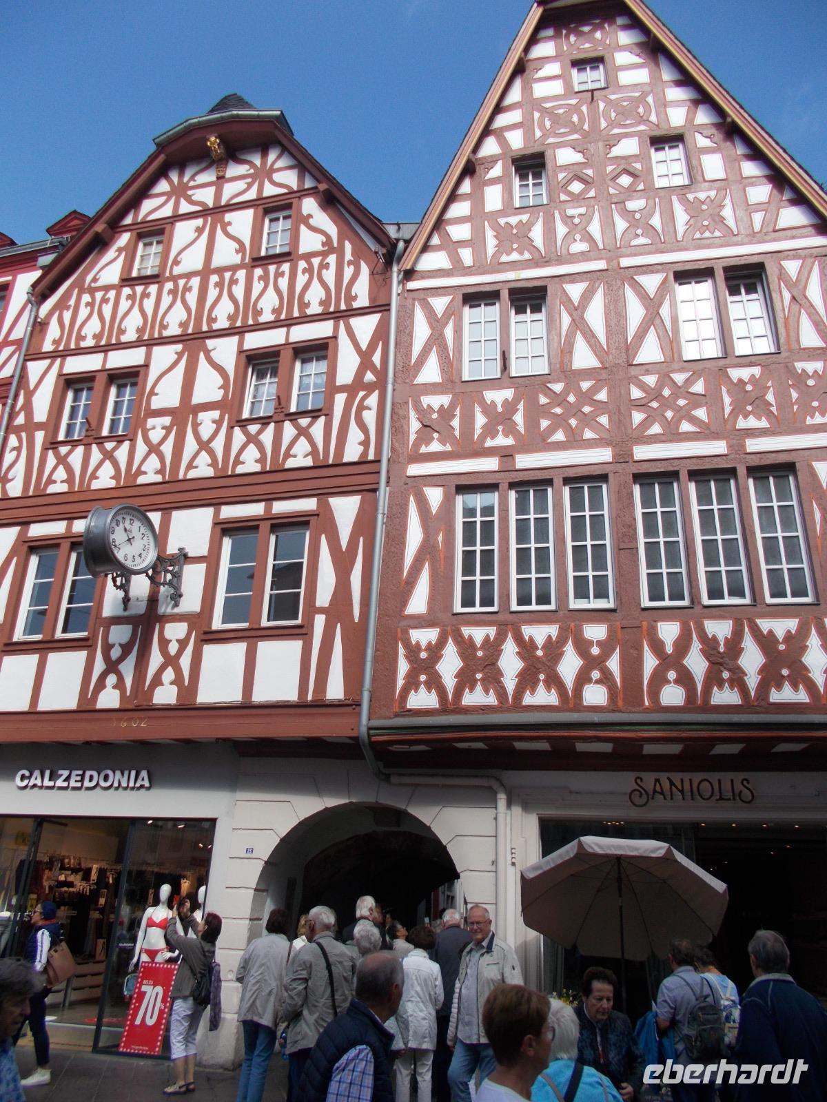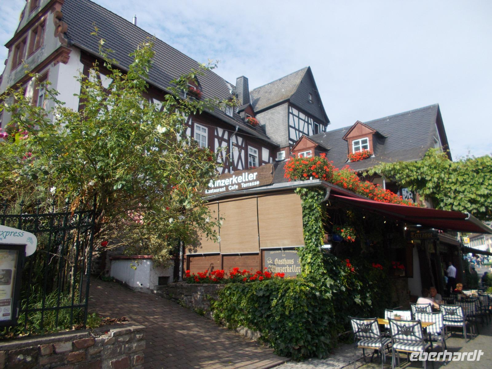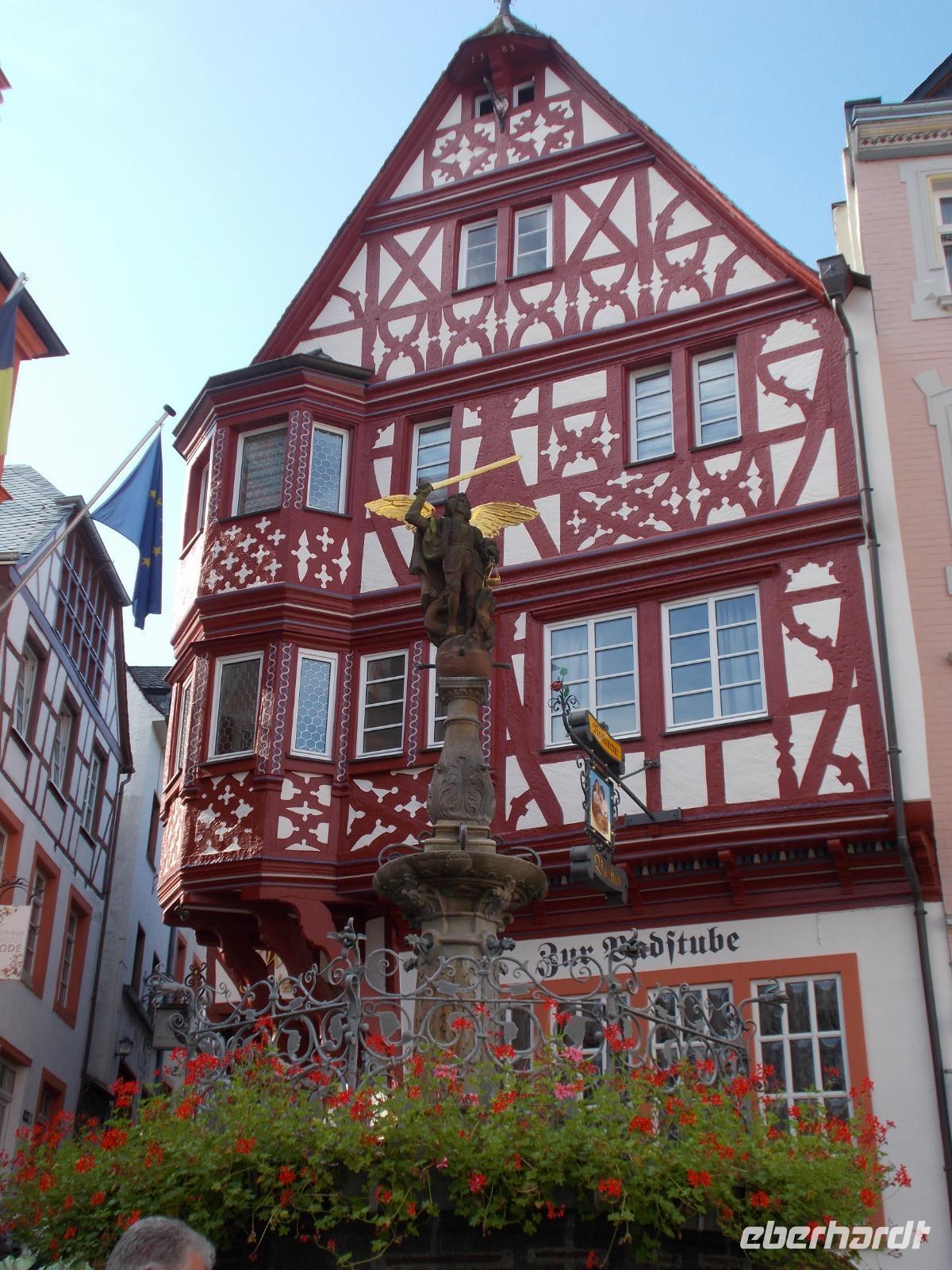 Auch heute früh bot sich uns wieder ein Naturwunder in Form von Nebel. Das Moseltal war eingehüllt und die grauen Schwaden schobeb sich nur langsam nach oben. Nach und nach wurde der Blick zur Burgruine Landsberg ,Sommerresidenz der Erzbischhöfe von Trier,frei.Der heutige Tag begann mit einem Spaziergang durch Bernkastell -Kues. Wir schlenderten durch die malerischen Gassen des mittelalterlichen Städtchens. Die alten Fachwerkhäuser zogen unsereBlicke immer wieder an.Über den Karlsbader Platz,dem Docktor Weinhaus,dem Graacher Stadttor und Bärenbrunnen gelangten wir zum St.Michaelsbrunnen.Am alten Rathaus ist noch der Pranger zu sehen(und zu Nutzen,wir waren aber alle lieb !)Nach der Freizeit erwartete uns im Weinhaus Dr.Pauly-Bergweiler eine Moselwein- Probe .Im historischem Kellergewölbe ließen wir uns die fünf gebotenen Weine schmecken .Den Ausbau und Geschmack der hiesigen Tropfen wird ganz stark von den drei Schiefersorten bestimmt.Gut gelaunt und mit den einen oder anderen Fläschchen ging es zurück zum Schiff.Der Nachmittag wurde vom Bordleben bestimmt.Auf dem Sonnendeck sitzend, ließen wir die liebliche Landschaft des Moseltals,noch einmal an uns vorbei ziehen. Am Abend lud der Kapitän zum Abschiedscocktail in die Panoramalounge .Gekrönt wurde der Abend mit einem wundervollem Abschiedsessen und natürlich durfte die Eisparade nicht fehlen.