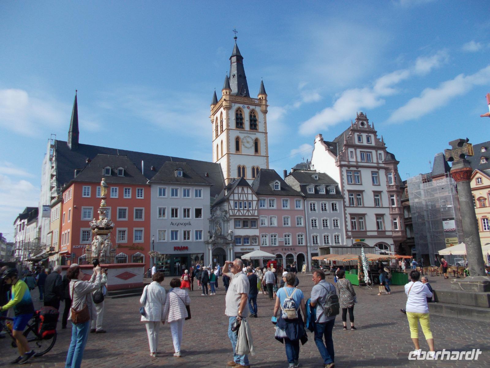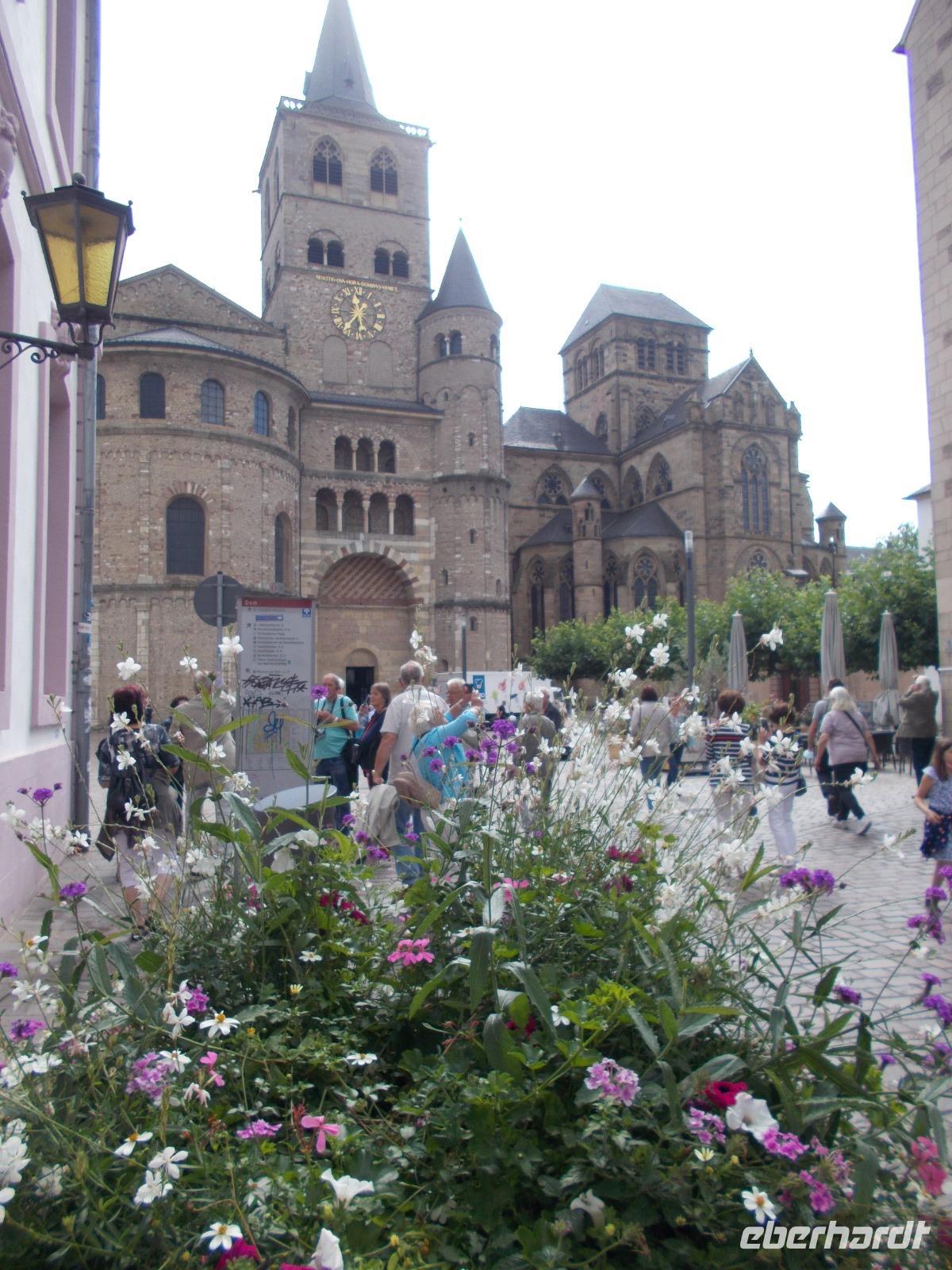 Nach dem Frühstück wollten wir von Bord und uns die älteste Stadt Deutschlands ansehen.Leider war Geduld gefragt.Ein anderes Schiff lag noch an unserem Steiger fest.In Trier begrüßte uns Karl Marx und durch den Anblick der Porta Nigra wurden wir in ein anderes Zeitalter versetzt.Nach einer Pause ,am Petrusbrunnen,nahm uns der romanische Dom gefangen.Die Liebfrauenkirche blieb uns leider verschlossen.Vorbei an der Konstantin Basilika gelangten wir zum Kurfürstlichen Palais und bewunderten den schön angelegten Garten.Auch hier war wenig Zeit ,zum Mittagessen wurden wir auf dem Schiff erwartet.Der Nachmittag war mit dem Ausflug nach Luxemburg verplant.Die Hauptstadt erhebt sich an den steilen Felsufern von Alzette und Petrusse.Die von Graf Siegfried erbaute Stadt beherbergt die verschiedensten Baustiele.Zu Füßen der Gelle Frau fand ein Jahrmarkt statt und dort stieg unsere Stadtführerin zu uns in den Bus.Zuerst ließen wir „de Stadt"bei einer Rundfahrt an uns vorbei ziehen.Ein Muss ist die Kirche Notre Dame und das Stadtschloss der Großherzöge .Einen besten Blick auf die alte Festungsanlage und Kasematten sowie hinüber zum modernen Bankenviertel ,hat man vom „schönsten Balkon Europas".(Obwohl sich über diese Aussage etwas streiten ließe.)Jedenfalls stand dort auch unsere Bimmelbahn ,von der wir tüchtig durchgeschüttelt wurden.Mit ihr erkundeten wir den ältesten Teil der Stadt .Mit dem gläsernen Aufzug und einem Spaziergang durch den Park, gelangten wir wieder zum Bus.Es war ein langer,erlebnisreicher Tag und das Abendessen musste heute , ausnahmsweise,mal auf uns warten.