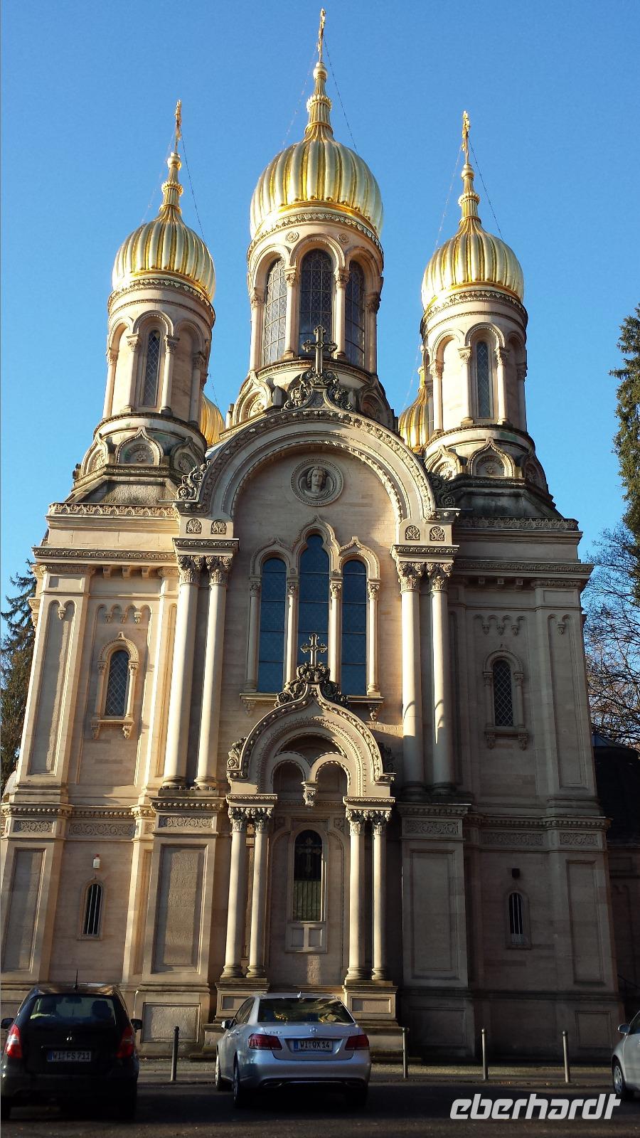 Nach dem Frühstück starteten wir mit unserem Reisebus und dem Chauffeur Thomas unsere Tour. Leider gab es dichten Nebel und wir konnten recht wenig Aussicht während der Fahrt genießen, ich denke, das gab relativ wenig Abbruch, ich gab diverse Informationen zu unserem Ziel.. Wiesbaden ist die Landeshauptstadt von Hessen und mit seinen 15 Thermal- und Mineralquellen eines der ältesten Kurbäder Europas, in Wiesbaden leben ca. 290000 Einwohner. 2015 rangierte Wiesbaden auf dem sechsten Platz der wohlhabendsten Stadtkreise Deutschlands. Pünktlich um 10 Uhr begrüßten wir die örtliche Reiseführerin und begannen unsere 2 stündige Stadtrundfahrt, teilweise auch zu Fuß. Die Highlights dieser Metropole wurden uns sehr anschaulich und kompetent erläutert, leider wurde uns auch an diesem Tag der Blick auf den Rhein durch starken Nebel verwehrt. Man merkte der Stadtführerin die Liebe zu ihrer Heimat an und so manche Anekdote brachte uns zum Schmunzeln und auch zum Staunen. Beeindruckt waren alle auch von den Villenvierteln, die die Wohlhabenheit der Menschen dort zum Ausdruck brachten. Unser Ausstieg auf dem Neroberg und die Besichtigung der dortigen russisch orthodoxen Kirche war ein wirkliches Erlebnis.russisch-orthodoxe Kirche - Neroberg WiesbadenDer Neroberg ist der Hausberg der hessischen Landeshauptstadt und ist ein beliebtes Ausflugsziel. Die heutige Bezeichnung „ Neroberg" wurde in Anspielung auf die römische Vergangenheit im 19.Jh. erfunden. Die genannte Kirche ließ der nassauische Herzog Adolph 1847 - 1855 in russisch byzantinischem Stil als Grabeskirche für seine verstorbene Ehefrau Elisabeth Michailowna erbauen. Die Führung in dieser Kirche gab dazu viele interessante Einzelheiten preis. Wir machten noch einen Stopp am Schloßplatz und am Rathaus, wo die Stadtführerin dann die Führung beendete.