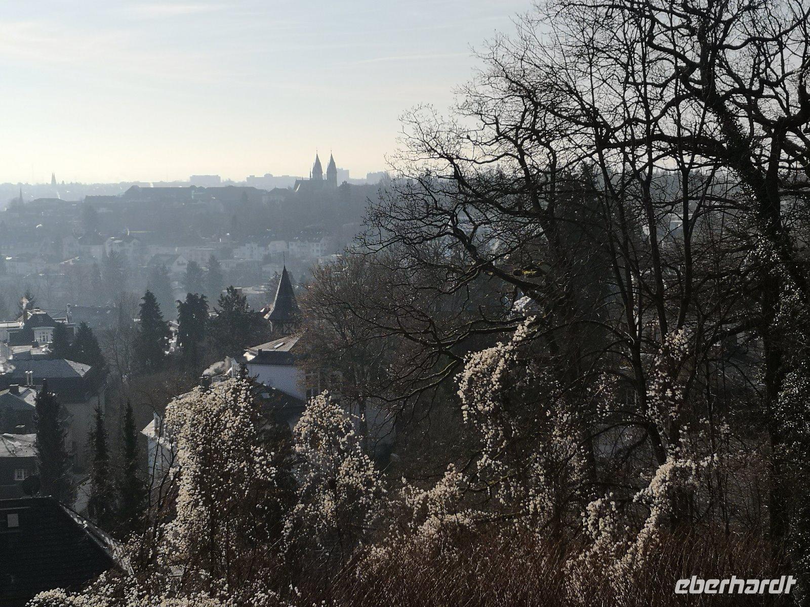 Entlang der Hunsrück Höhenstrasse erreichten wir bei strahlendem Sonnenschein und ca. 1 Grad die Autobahn nach Wiesbaden, die Hauptstadt von Hessen ,und hatten sogar