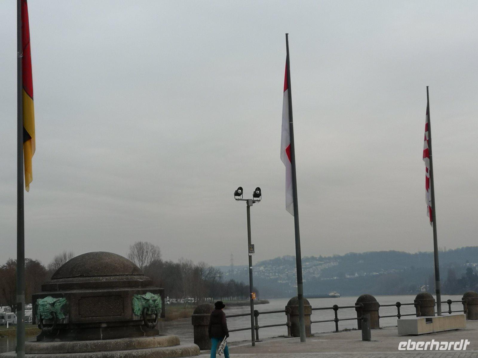 Das Deutsche Eck , so genannt am Zusammenfluß der Flüsse Rhein und Mosel in Koblenz.