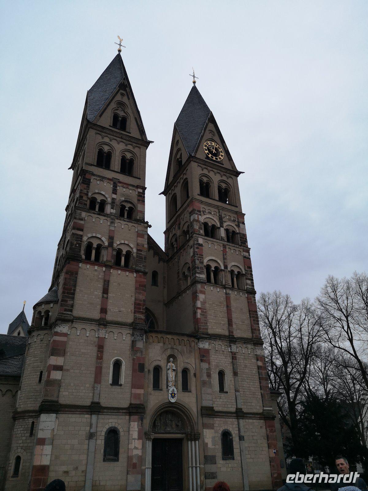 Unser Rundgang endete am Florinsplatz , auf dem sich auch die Florinskirche ( erste ev. Kirche in Rheinland Pfalz ) befindet.