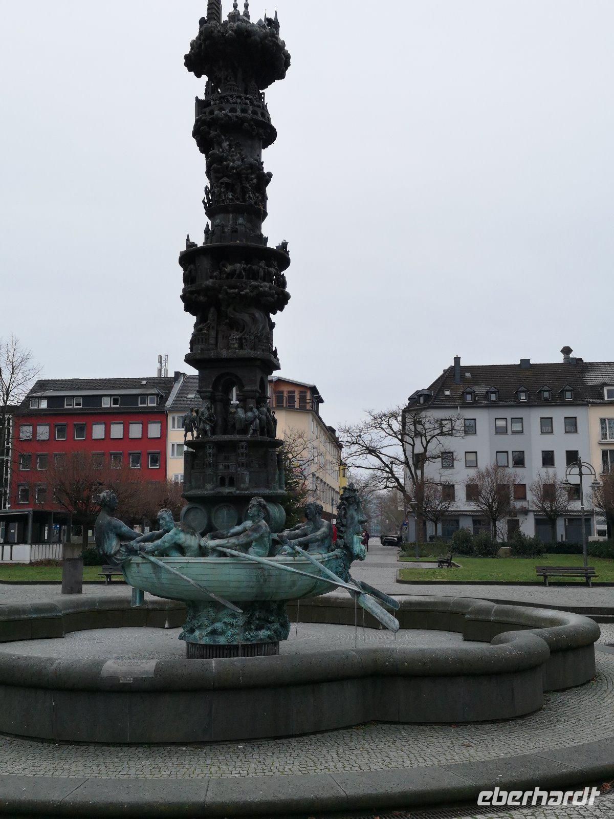 Wir kamen vorbei an der Basilika St.Castor,dem Rathausplatz bzw.am Görresplatz, der Liebfrauenkirche, an der Historiensäule, am Schängerlbrunnen, wo uns Andreas das " Lied vom Cowelenzer Schängelche " in Mundart vortrug ( traumhaft) und uns auch die Geschichte dieses Schängels erzählte ( mundartliche Bezeichnung für die in der Stadt Koblenz geborenen Jungen, Name stammt aus der 20-jährigen Zugehörigkeit der Stadt Koblenz zu Frankreich, die von den Franzosen abstammenden Kinder nannte man Johann, entspr. frz. dem Namen Jean,Koblenzer konnten das nicht richtig aussprechen und machten einen Schang daraus.:.).