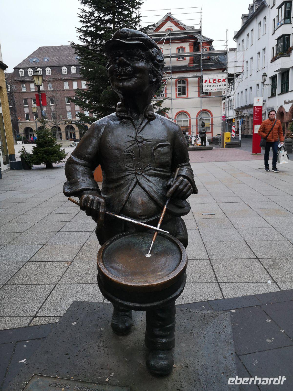 Wir bestaunten die Bronzefiguren von Marktfrau und Schutzmann oder vom Resche Hennerich oder auch das Denkmal der Pfefferminzje von Koblenz in der Mehlgasse ( arme Koblenzerin, lebte in den 20 iger Jahren des 20.Jh., verkaufte , um ihren Lebensunterhalt zu finanzieren ,Pfefferminze , trank gerne Schnaps und rauchte eine Zigarre...), Restaurant mit ihrem Namen befindet sich gleich nebenan..