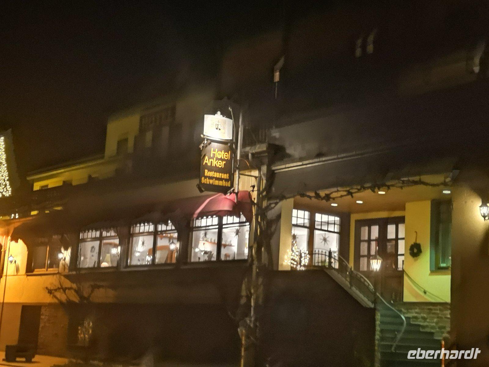 Kurz vor Ankunft in unserem Hotel " Zum Anker" verwies ich auf seine jahrhundertalte Tradition, es ging aus einer Treidelstation an der Mosel hervor und wird von der Familie Hannes bereits seit 7 Generationen betrieben. Was heute zur Standardausstattung gehört, Dusche, WC und TV wurde im Laufe der Jahre ausgebaut und immer wieder verbessert. Mittlerweile verfügt das Hotel über 150 Gästezimmer und einige hatten tatsächlich das Glück, von ihrem Zimmer direkt auf die Mosel blicken zu können.
