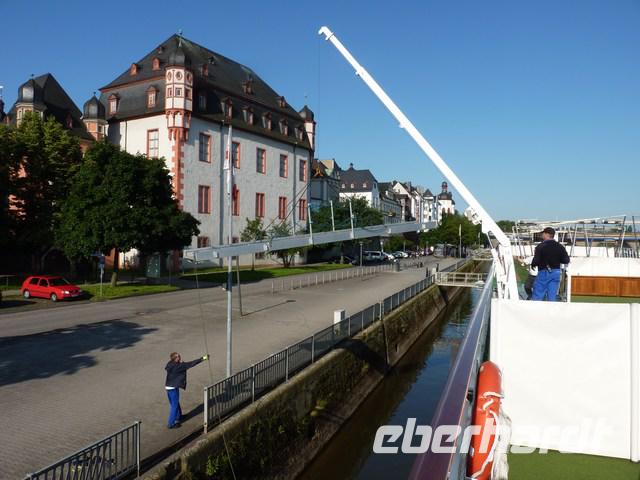 Die Zeit bis zum Mittag verbringen wir mit Spaziergängen zum Weinmuseum, dem Cusanus Stift, der Akademie oder fotografieren von der Brücke unser Schiff die a ROSA VIVA.