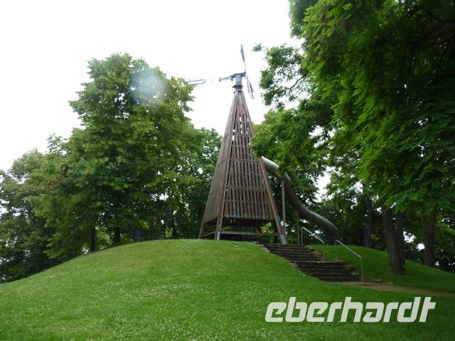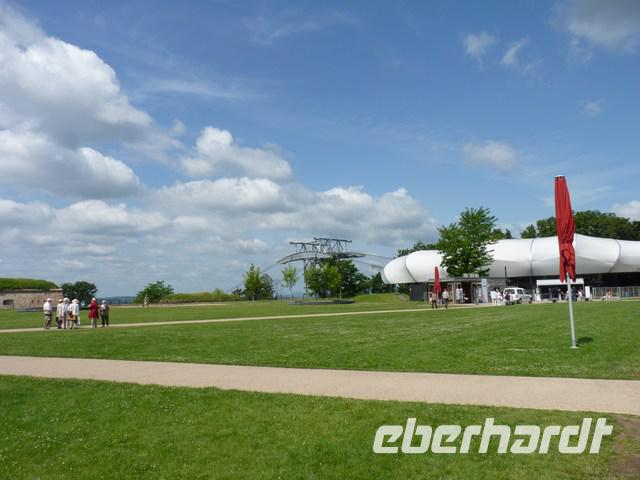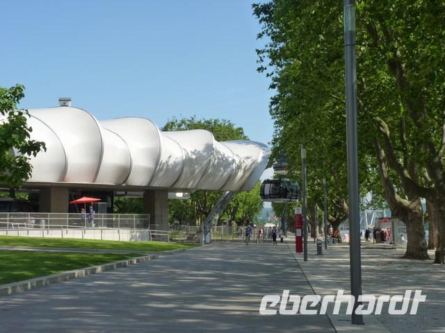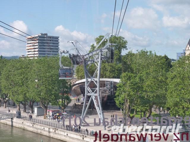 Hinauf gelangt man mit einer Seilbahn, ein Überrest der vergangenen Gartenschau.