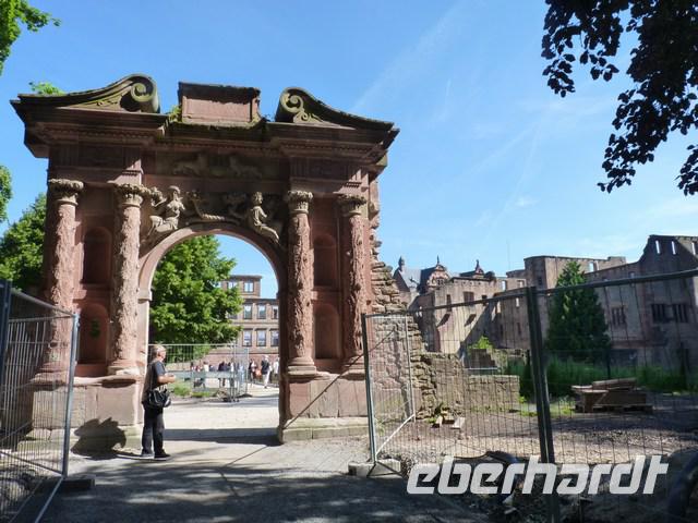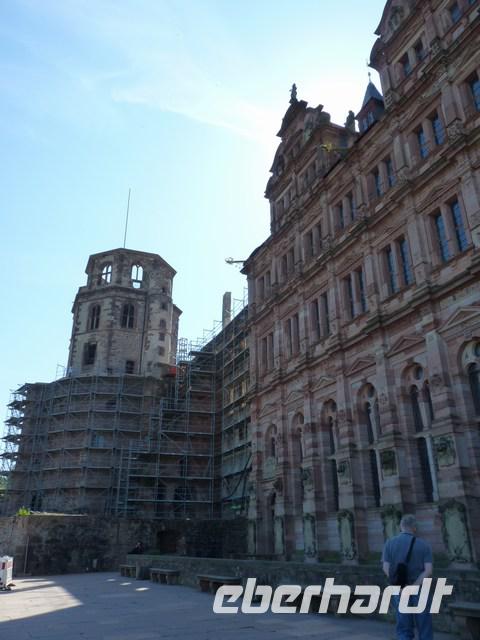 Ziel war die Schloßruine oberhalb der Stadt. Über die alte Burgbrücke erreichten wir den Innenhof der beeindruckenden Anlage. (Bibliothek, Rubrechtsbau und Torturm, Frauenzimmerbau, Friedrichsbau, Gläsernen Saalbau und Ottheinrichsbau)