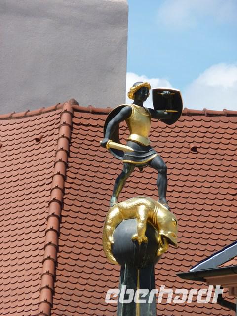 Eine Einkaufsmeile bis hin zum Rathaus, Kirche, Brunnen ist recht hübsch.