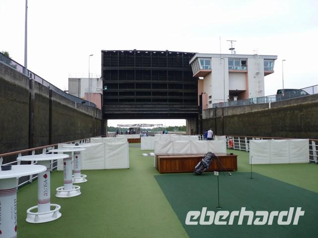 Die Gäste an Bord spielten derweil Minigolf oder Putting, Trainierten im Cocktailworkshop, Tanzkurs oder Serviettenkurs.