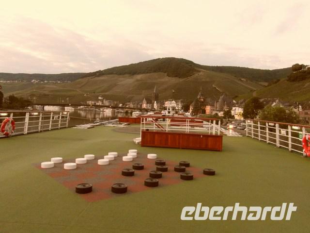 An Deck findet ein Spieletreff statt. So vergeht die Zeit bis zum Abendessen wie im Flug.