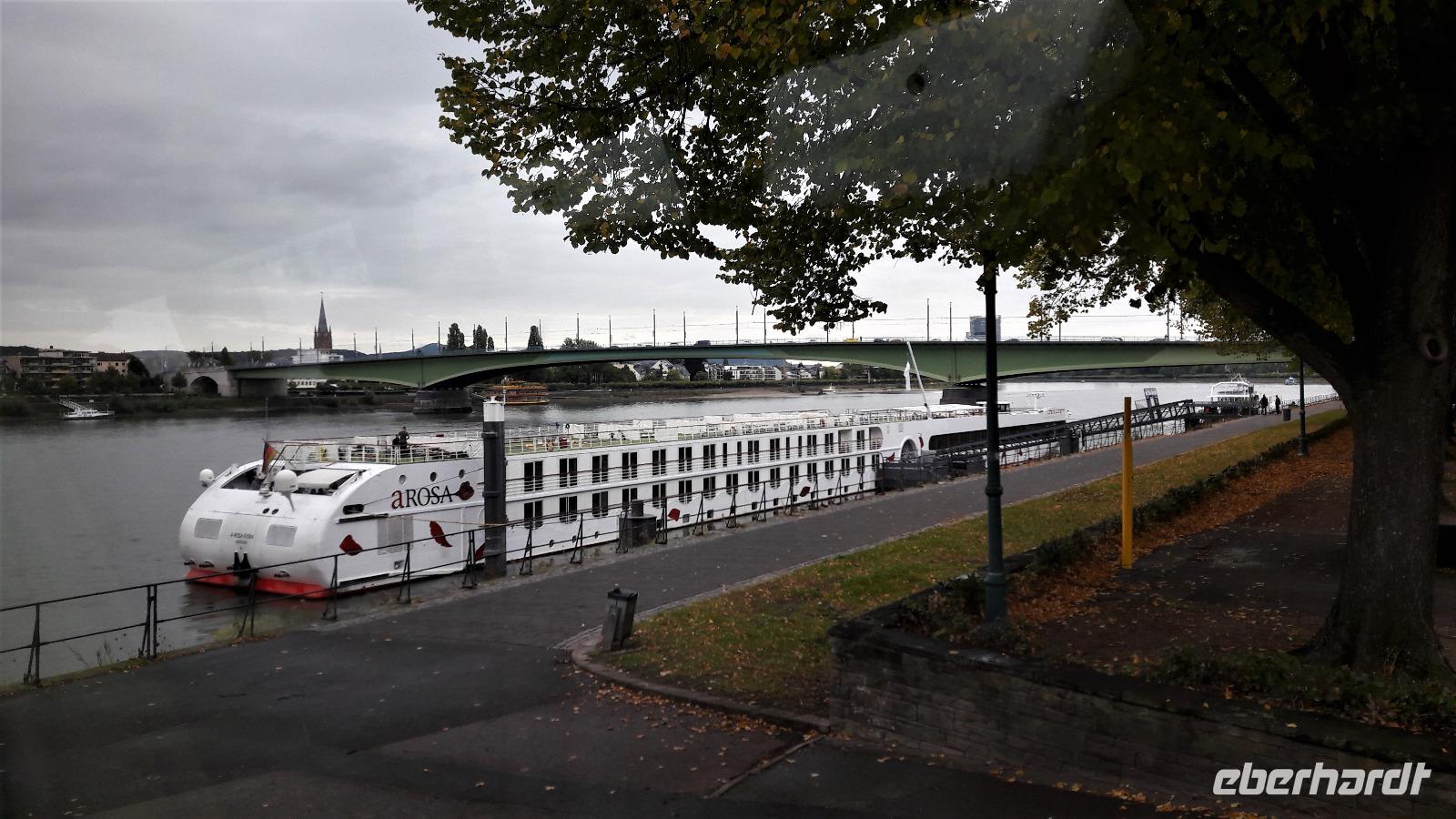 Zu später Stunde fuhr unsere A-ROSA weiter nach Mehring.7. Tag Mehring - mit Ausflügen nach Trier und LuxemburgMit den Nachtfahrten hat es so seine eigene Bewandtnis. Am frühen Morgen ist man schon im neuen Landgangsort, konnte aber von der verbeihuschen-den Landschaft nicht viel sehen. Aber manchmal bedingt eben eins das andere.