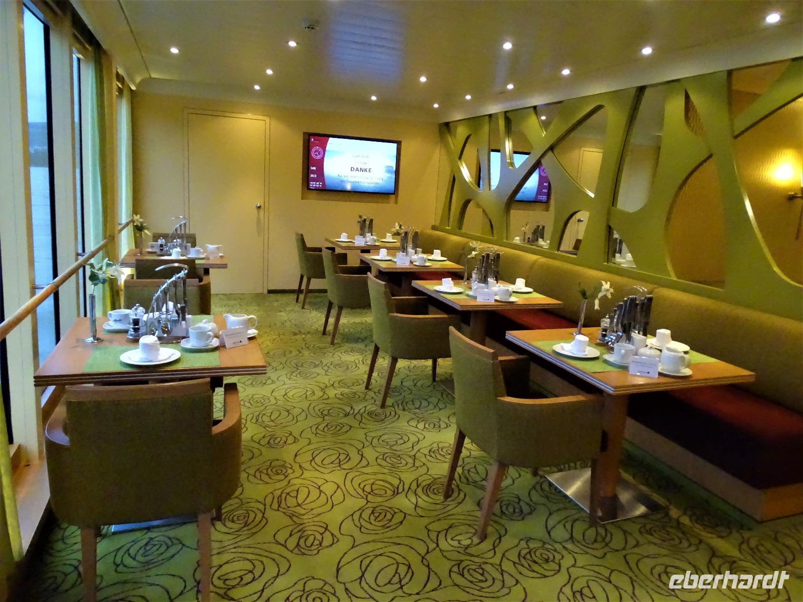 Nachmittagskaffeesnack, Einweisungen und obligatorische Sicherheitshin-weise sowie Infos über den Reiseverlauf, dies in der wunderbaren Barlounge,