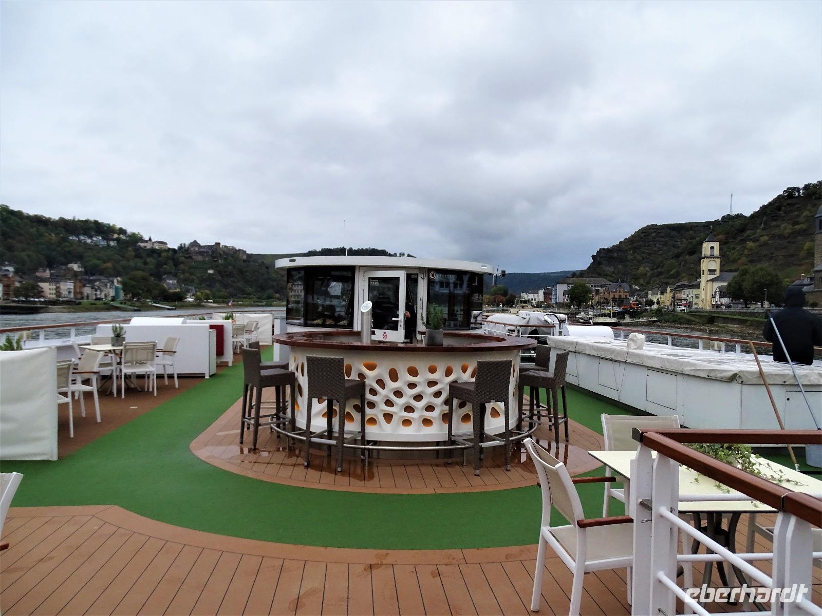 Nach der Loreleypassage gingen fast alle Passagiere unter Deck, wärmten sich in der Lounge auf und genossen die Vorzüge der Bar.
