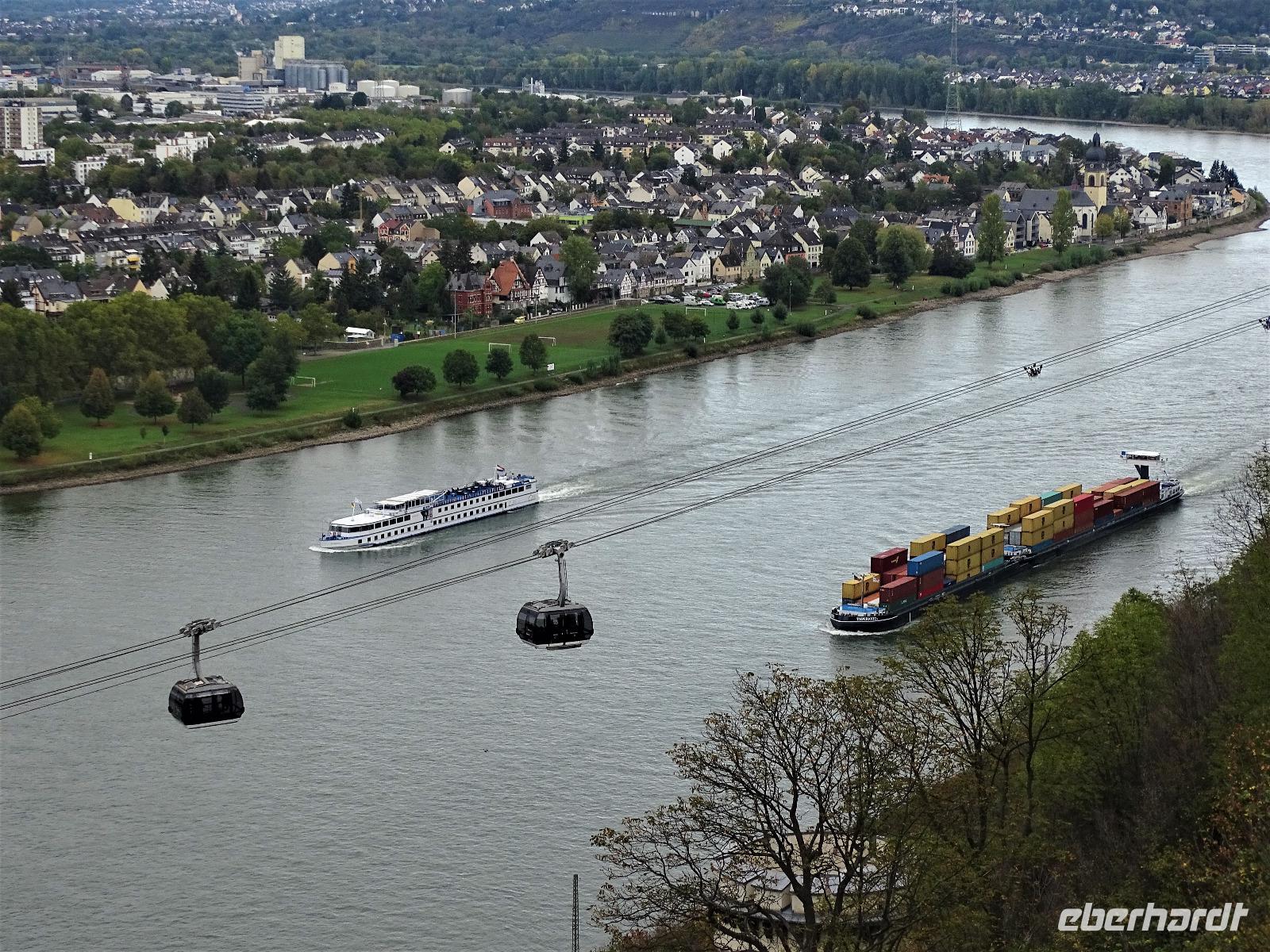 Beim ersten Landgang dieser Reise erläuterte uns der Stadtführer die Historie der Stadt, zeigte uns das eigentliche „Deutsche Eck" am alten Mosellauf und erläuterte uns den Werdegang des Kaiser- Wilhelm- Denkmals und entführte uns dann per Seilbahn auf die Festung Ehrenbreitstein. Sowohl bei der Auffahrt als auch bei der Rücktour konnte man das wunderbare Panorama von Koblenz mit der interessanten Moseleinmündung, dem Deutscheneck und der belebten Schifffahrt auf beiden Flüssen bewundern.