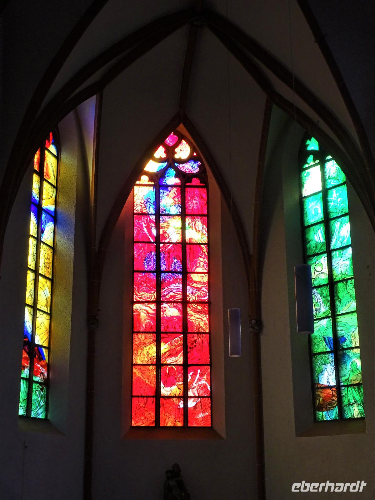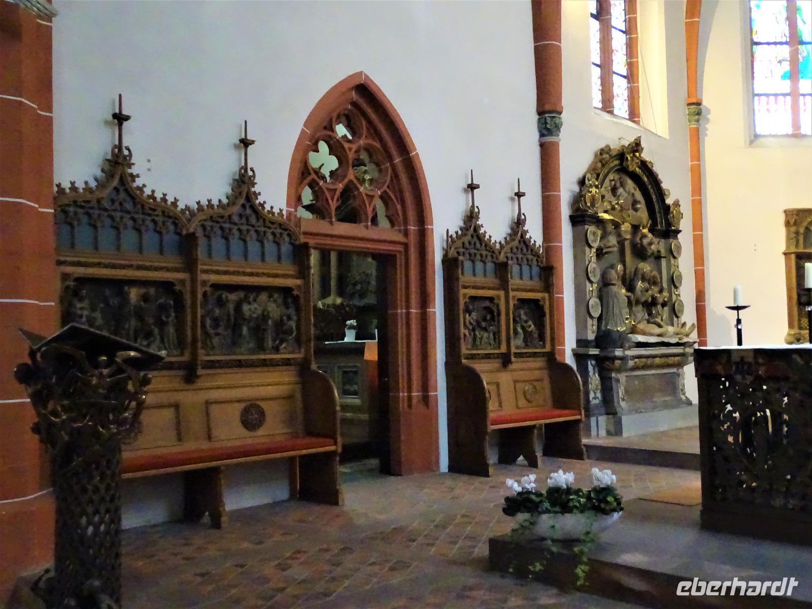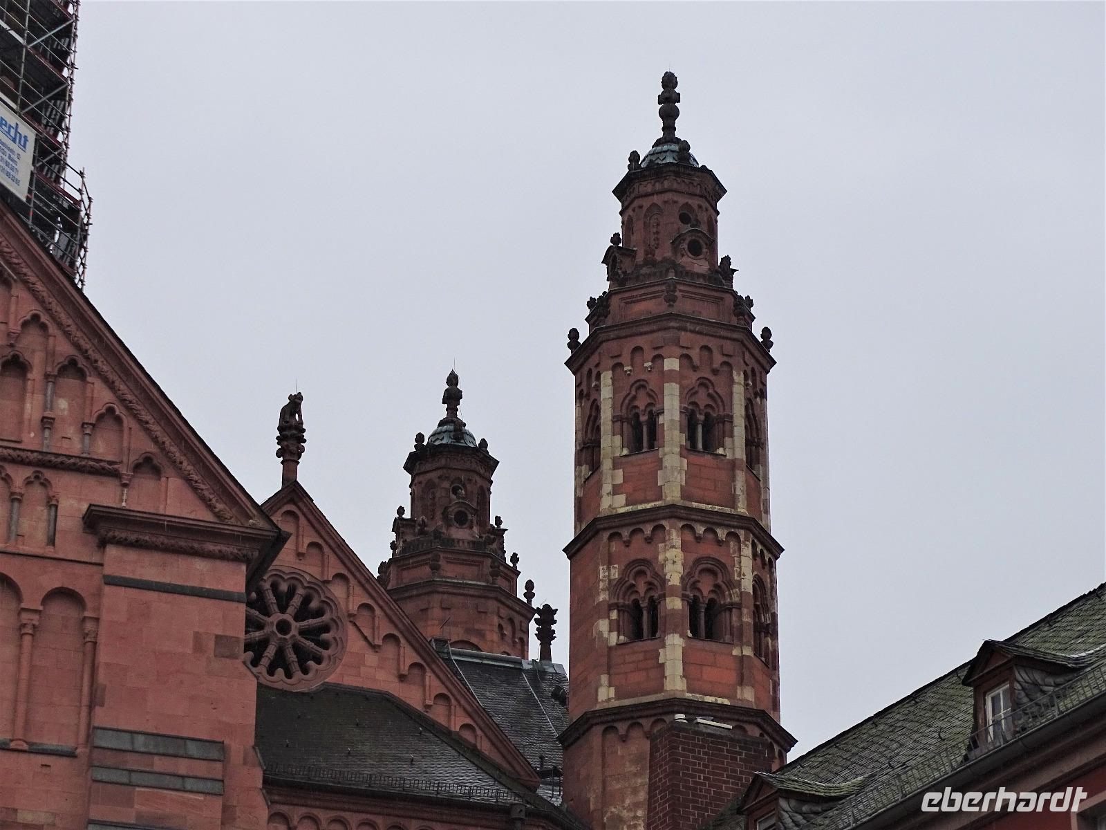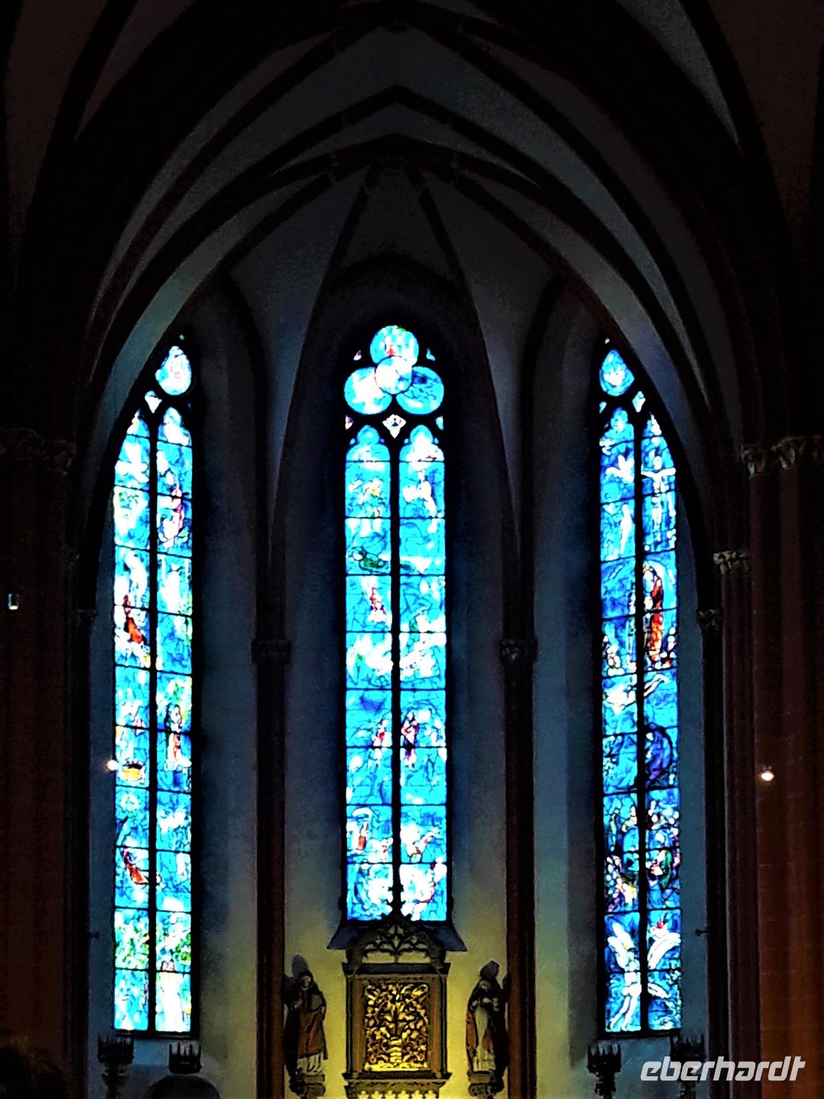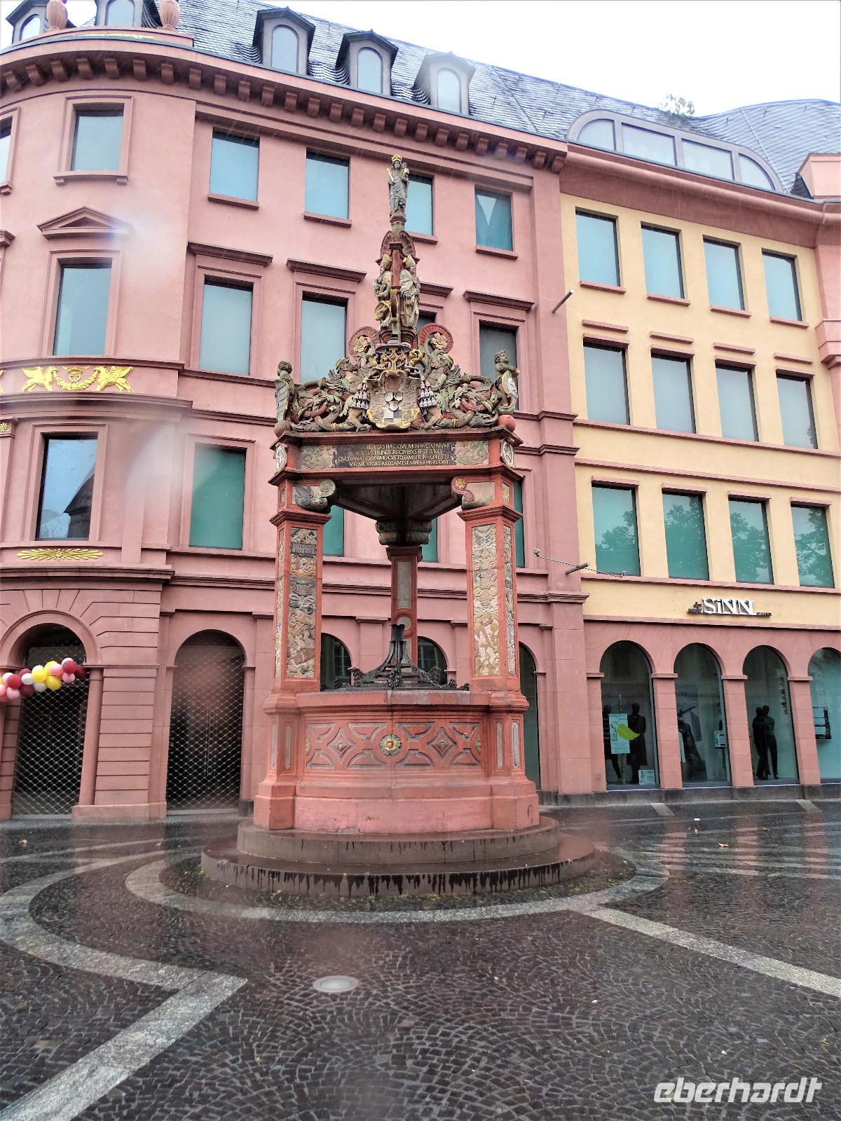 Historischer Markt, Rheingoldhalle, Staatstheater und Dom, waren so die Hauptstationen. Leider waren in allen sakralen Bauten Erntedankesgottes-dienste, so dass geschlossene Gruppen nicht hineinkonnten. Da war die Besichtigung des Gutenbergmuseums eine trockene und willkommene Aktion. Die „Einzelgänger" hatte beim Besuch des Doms und auch der St Stephanus Kirche (Marc Chagall Fenster) mehr Glück. Auch ein Gang zum Fastnachtsbrunnen und zum Eisenturm stand bei ihnen auf der Rundgangliste.