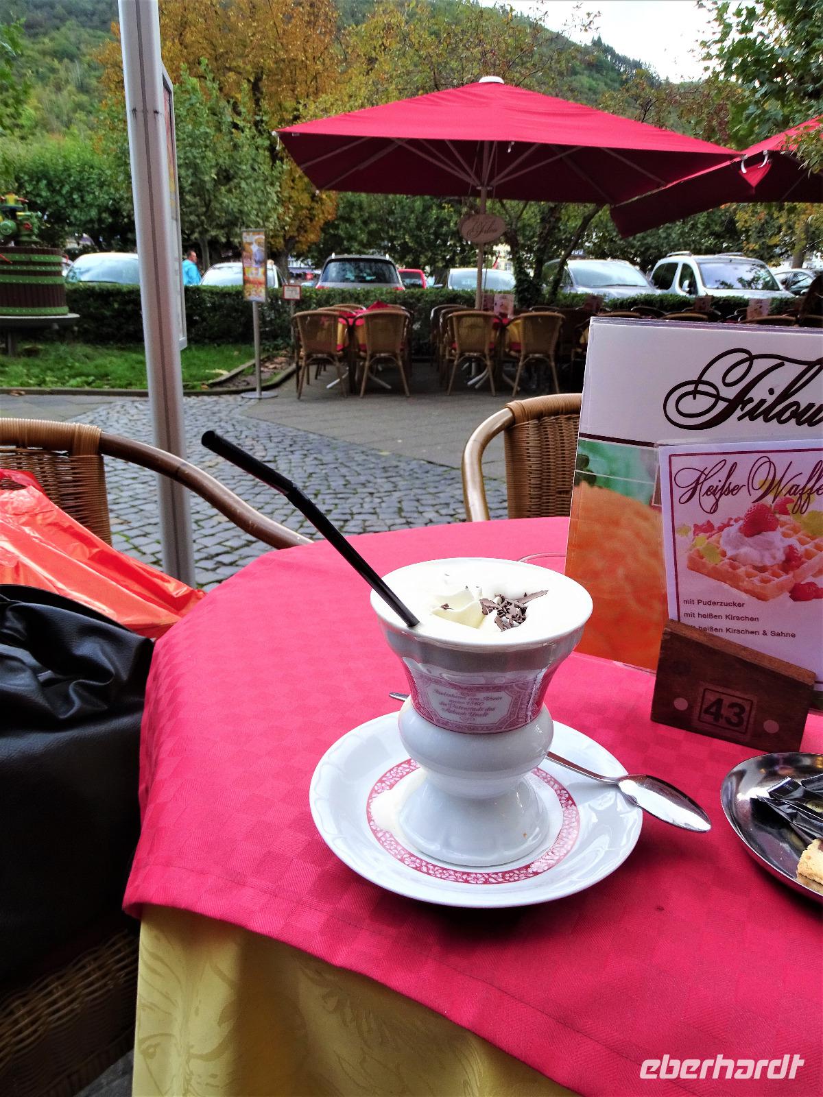 Der Nachmittag war mit den unterschiedlichsten Ereignissen gespickt. Erste Aufregungen um die Heimreise, informelles über den Ablauf, ein letzter Besuch des insgesamt vierteiligen Filmes „Der Rhein", aber auch durch das Auslaufen zur letzten Flußetappe zurück nach Köln. Dies konnte man beim Kaffeetrinken so richtig genießen.