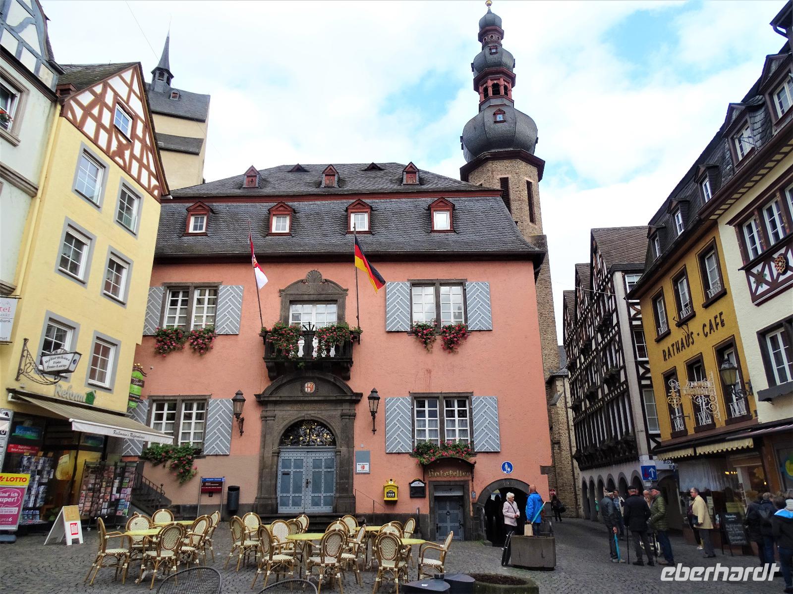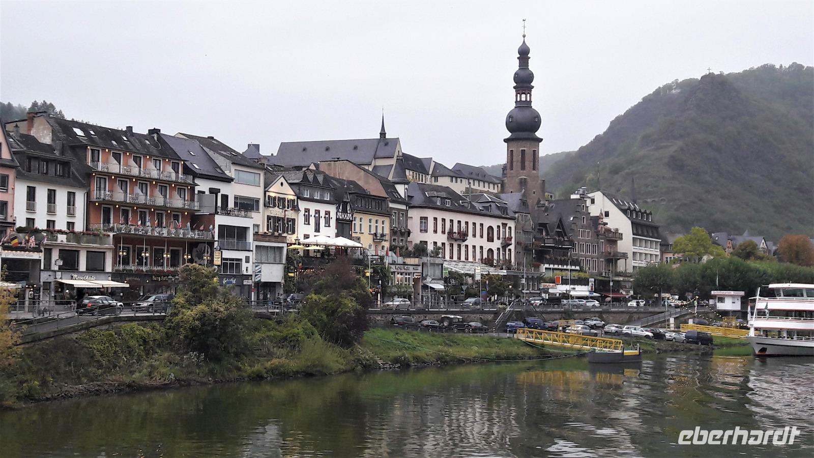Als erstes starteten wieder die Biker Erkundung mit dem Rad. Die anderen Gäste entschlossen sich zu organisierten Stadtführung oder eroberten die Stadt auf eigene Faust. Beim Standrundgang konnte man die altehrwürdigen Gebäude genau so bestaunen, wie die wunderbar restaurierte Stadtkirche St. Martin, alte Stadttore oder man ließ sich von der Historie des Ziegenbrunnes gefangen nehmen. Das Highlight war aber ohne Zweifel der Besuch der Reichsburg, die als wiederhergestellte Burg hoch über der Stadt drohnt. Von hier hat man einen herrlichen Blick über das Moseltal und schöne Städtchen Cochem. Immer mehr klarte der Himmel auf, so dass wir kurz vor Mittag noch mit einem kurzen Sonnenbad in einer der schönen Straßencafés Abschied nehmen konnten.