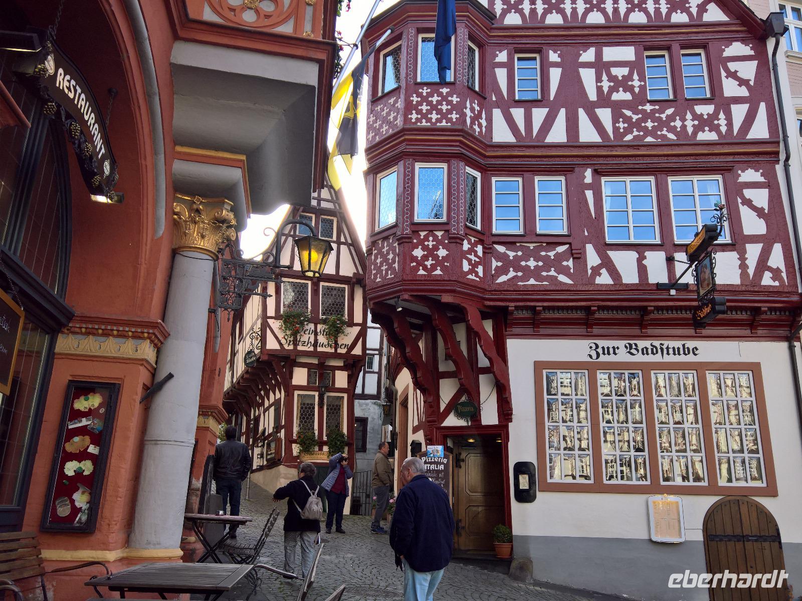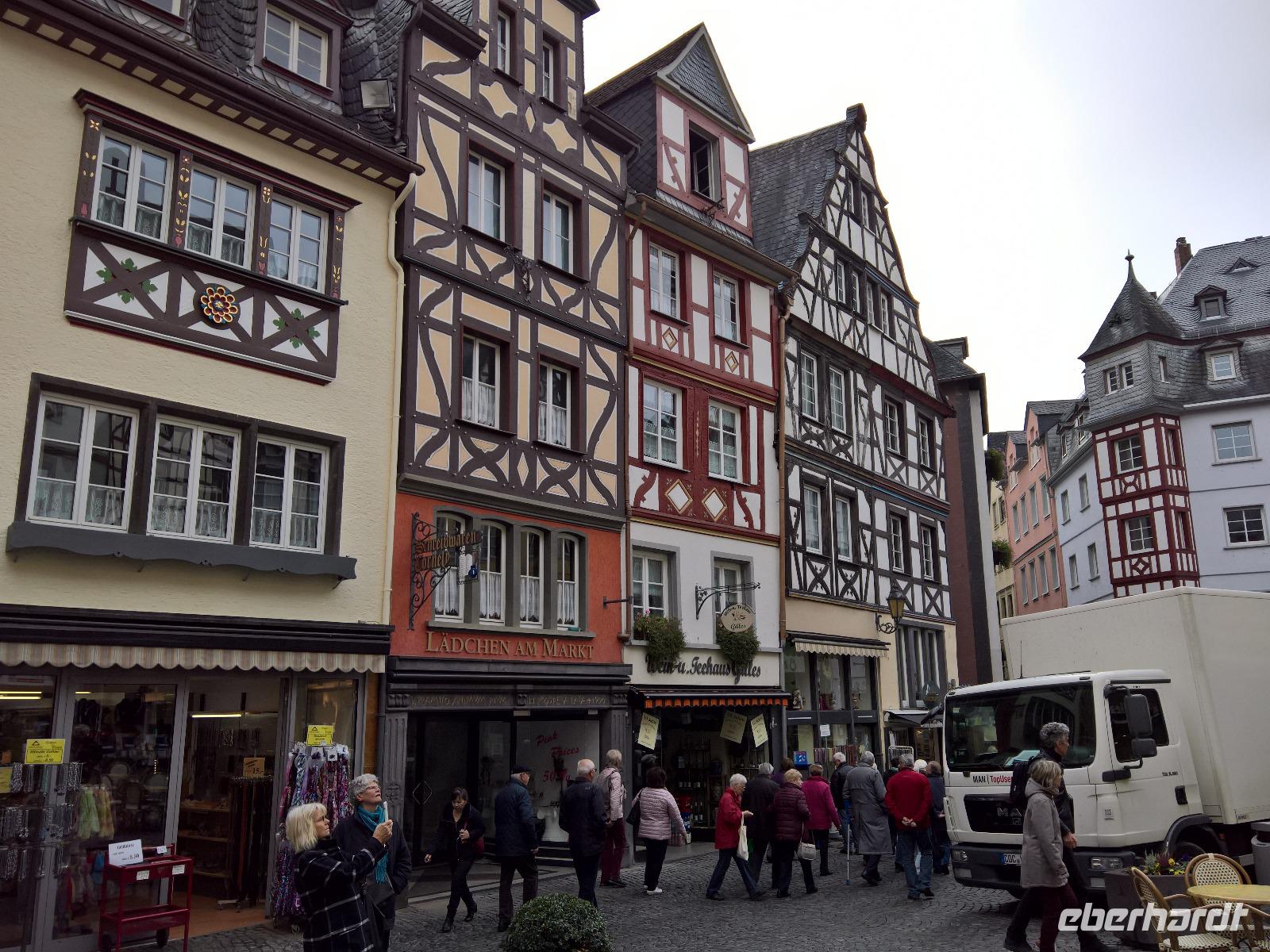 Die beiden Reiseführer begleiten uns erst einmal durch Cochem mit den farbigen Fachwerkhäusern, einem Rathaus im Barockstil und der hübschen Einkaufsstrasse.