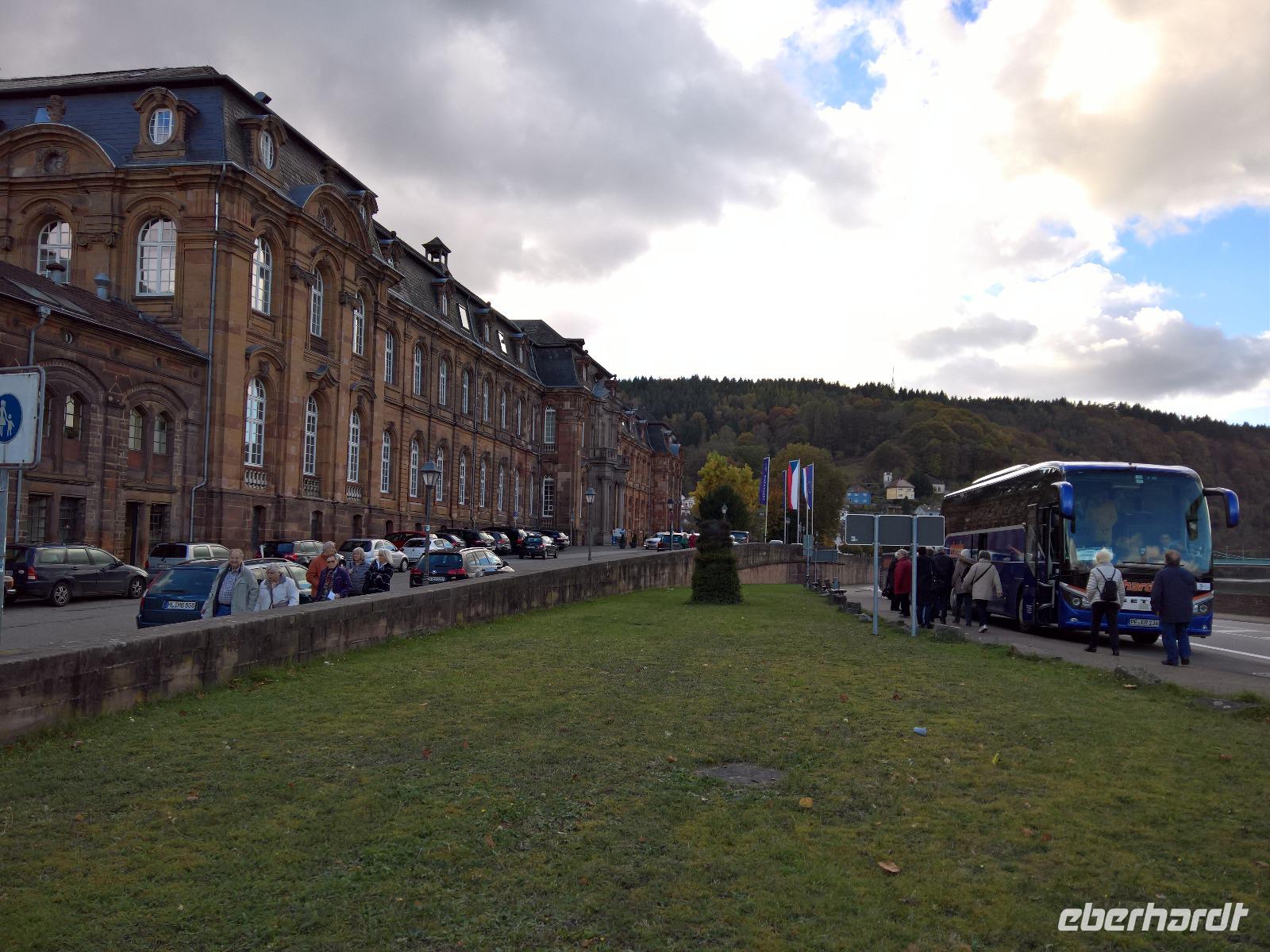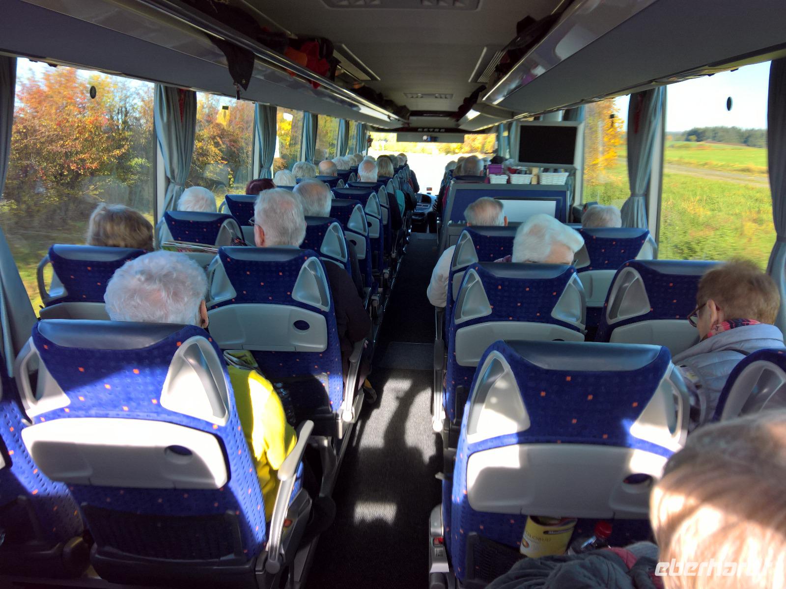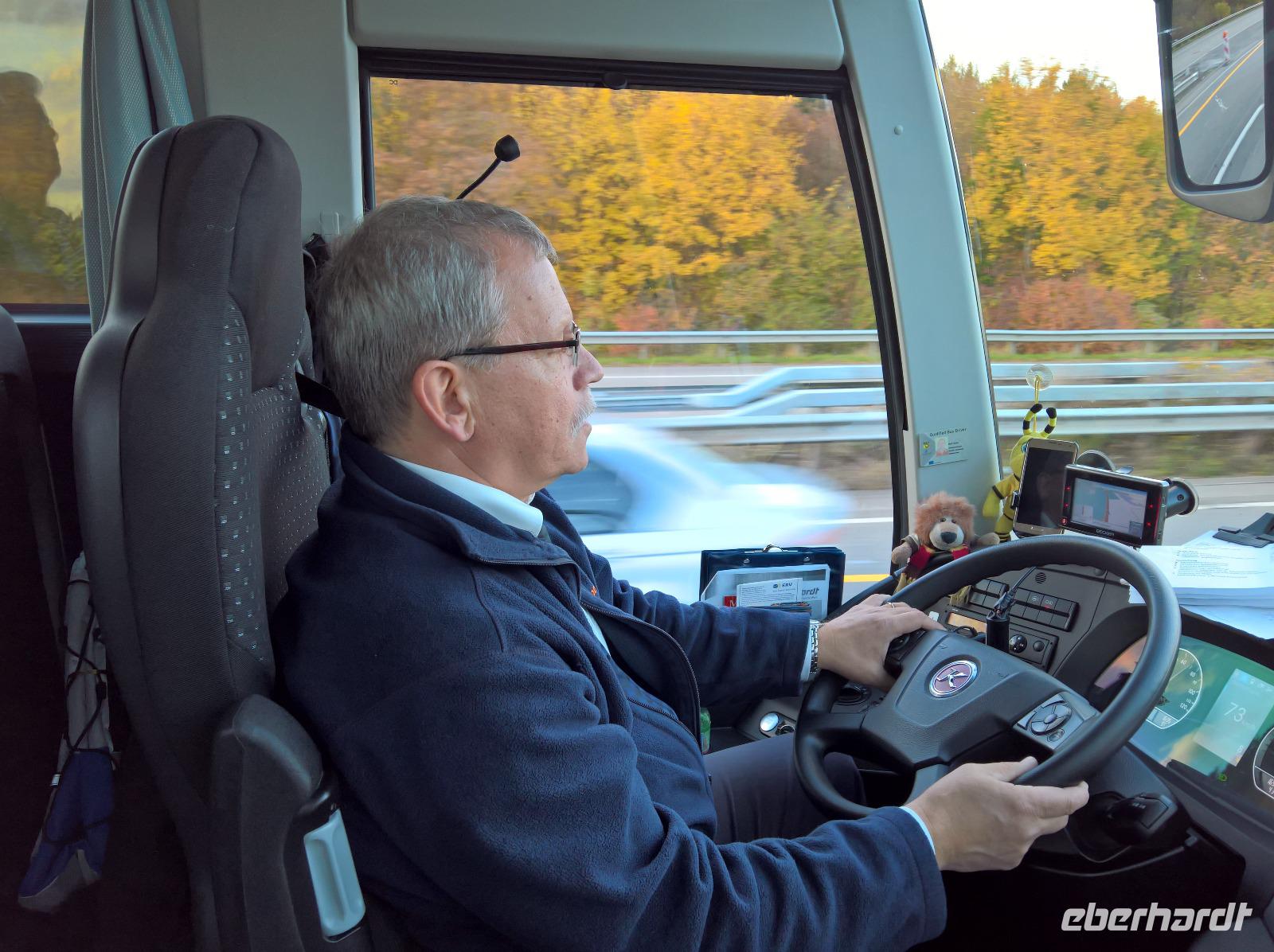 Unsere Reise beginnt für einen Teil der 76 Gäste in Pforzheim und für den anderen Teil dann in Karlsruhe. Nachdem die für unsere Abschlußfahrt obligatorischen frischen Brezel in den beiden Bussen verteilt sind, fahren wir durchs herbstlich gefärbte Dahner Felsenland über Pirmasenz weiter zu unserem Zwischenhalt an der Autobahnraststätte Ramstein. Weiter geht es dann inmitten der Herbstfärbung durch die Mittelgebirge Pfälzer Bergland, das Saar-Nahe-Bergland