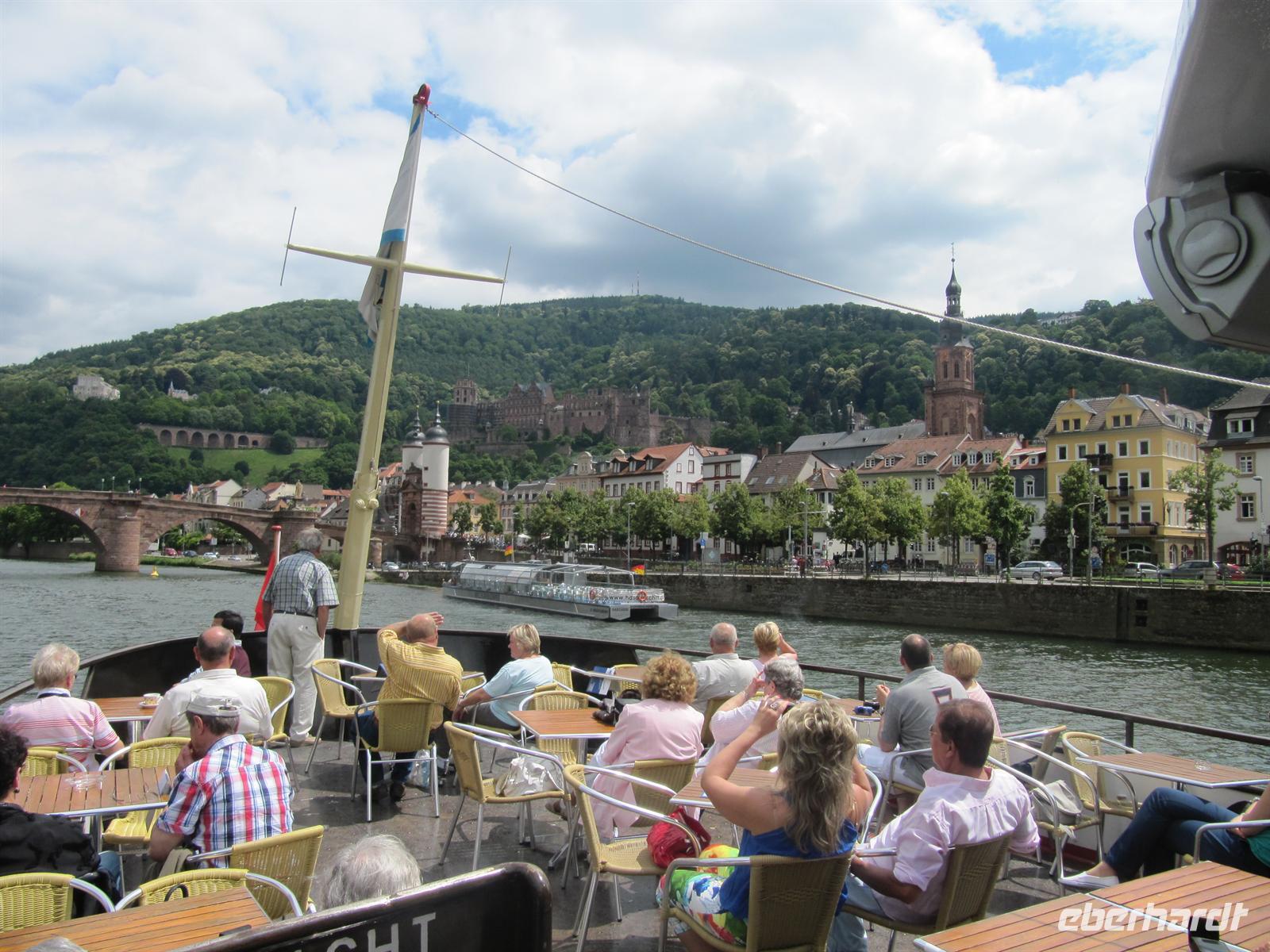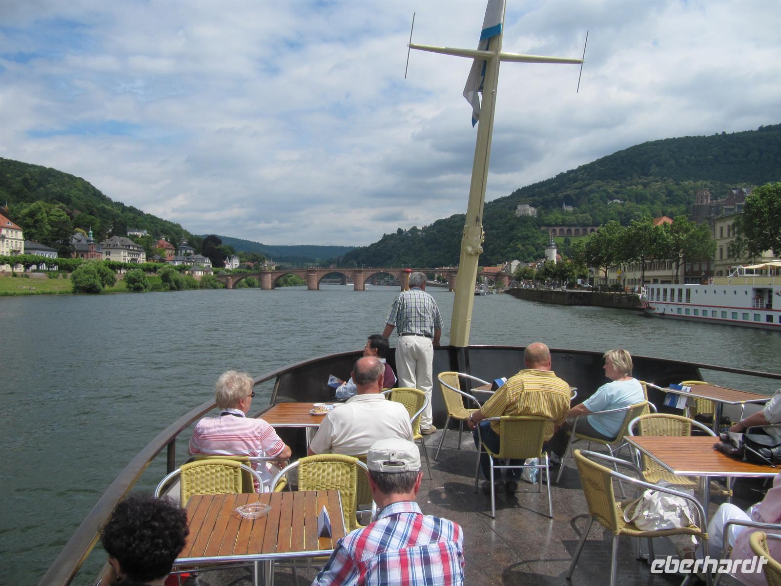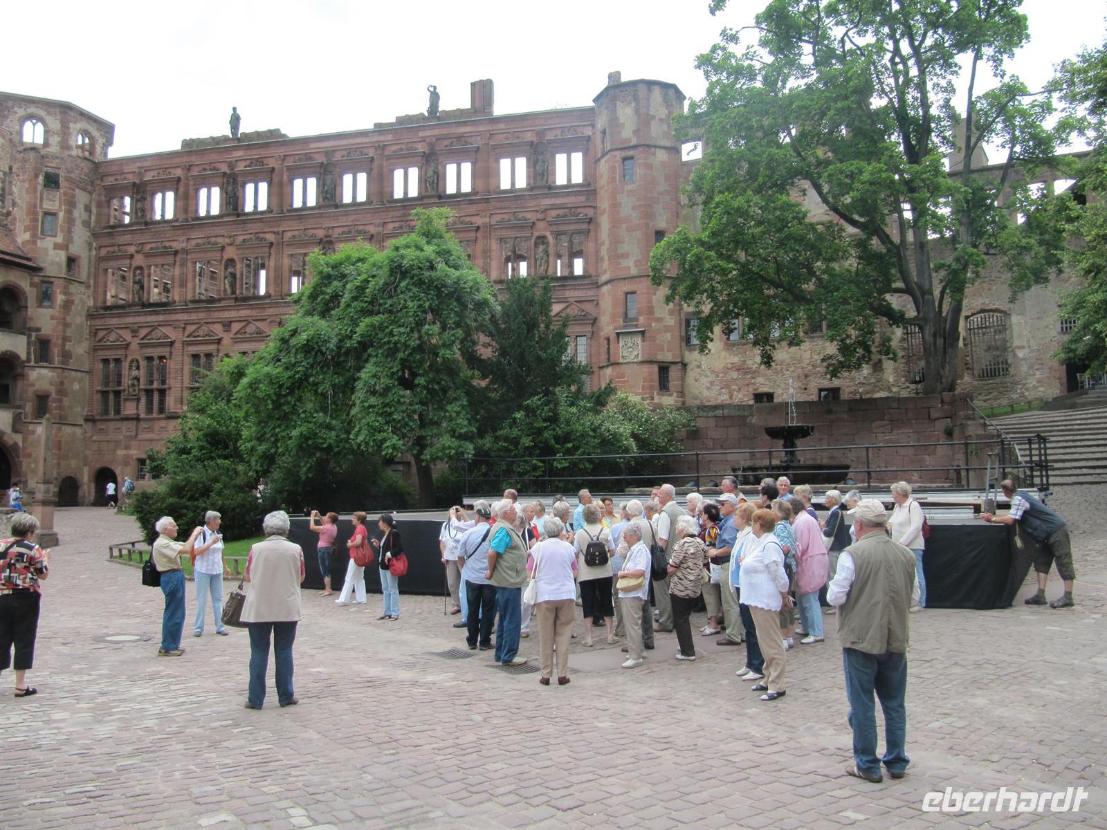 Ein weiteres Ziel stand für den vierten Tag auf dem Programm, die Stadt Heidelberg und ihr Schloss, welches die Stadt überragt. Als erstes besuchten wir den Schlosshof. Hier gab es die entsprechenden Bemerkungen. Sehenswert ist der Besuch des Weinkellers mit dem größten begehbaren Weinfass der Welt. Interessant ist auch das Apothekenmuseum, welches die Einrichtung alter Apotheken dokumentiert. Von der Brüstung des Schlosses hat man eine prächtige Aussicht auf die Stadt, dem Neckar mit der alten Neckarbrücke und den gegenüberliegenden Philosophenweg. Unten in der Stadt erfolgte eine kleine Charakteristik der Stadt und ihrer Sehenswürdigkeiten. Die 1,2 km lange Einkaufsmeile wird von Bewohnern, Touristen aus aller Welt und natürlich von Studenten bevölkert.