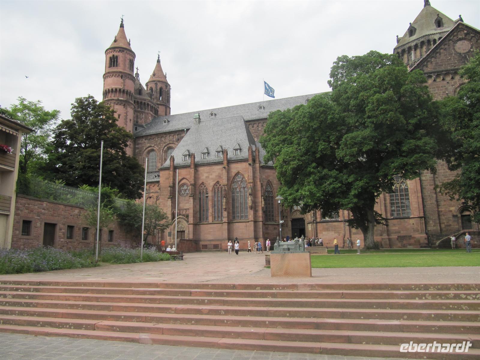 Alte Studentenkneipen wie z.B. „Zum roten Ochsen“ u.a., Restaurants, Konditoreien, Imbiss-stände und Geschäfte aller Art laden zum Besuch ein. Nach der Freizeit gingen wir erneut an Bord eines Schiffes und fuhren bis nach Neckarsteinach. Auch das Neckartal bietet reizvolle Eindrücke. Kleine Ansiedlungen, Burgen und Burgruinen und eine idyllische Landschaft begleiteteten uns auf unserer Fahrt. Auf dem Rückweg zum Hotel machten wir noch einen Abstecher zum Dom nach Worms. Sandor besichtigt mit den Gästen dieses Bauwerk und erläutert die wichtigsten Dinge.