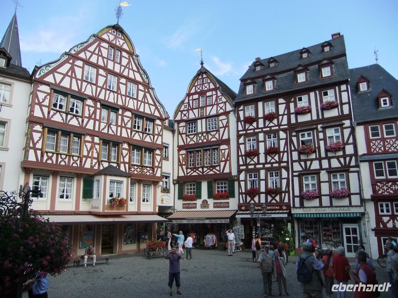 Unser heutiges Ziel ist die Mosel. Wir fahren zuerst nach Bernkastel-Kues. Dort führt uns unser Stadtbummel zum Marktplatz mit prächtigen Giebelfachwerkhäusern und alten Weinhöfen.