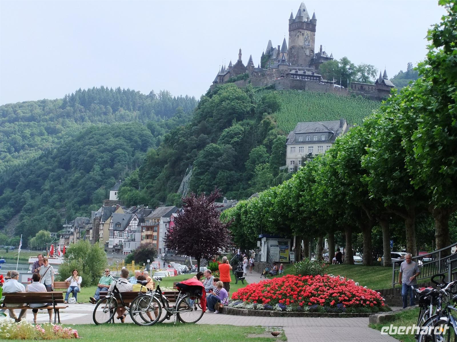 Mit dem Schiff "Moselperle" geht es dann vorbei an steilen Weinhängen und idyllischen Moselörtchen nach Traben-Trarbach. Chauffeur Thorsten erwartet uns dort und fährt mit uns nach Beilstein, dem Schmuckstück der Untermosel, geprägt von einem mittelalterlichen Ortsbild und der Burg Metternich. Weiter geht unser Ausflug nach Cochem. Schon von weitem können wir die Reichsburg über dem Ort sehen. Wir spazieren durch die Altstadt mit verwinkelten Gassen und dem schönen Marktplatz. Der leckeren Torte im Cafe "Flair" können die meisten von uns nicht widerstehen. Nach einem erlebnisreichen Tag an der Mosel geht es zurück zum Hotel.