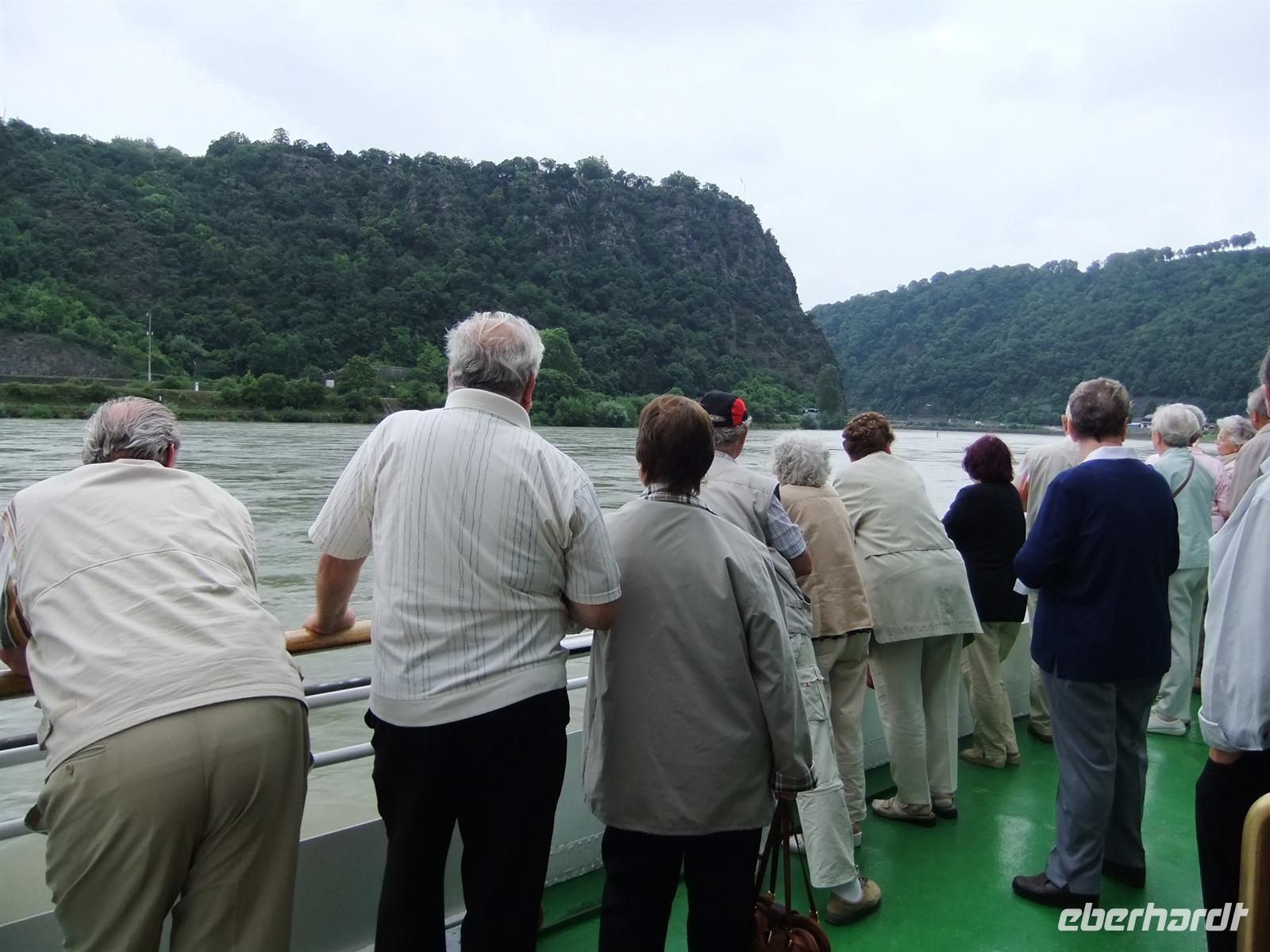 Heute erwartet uns der Höhepunkt der Reise: die fast 6stündige Schifffahrt auf dem Rhein. Dazu fahren wir am Morgen mit dem Bus über die "Hunsrückhöhenstraße" nach Koblenz. Nach einem kleinen Abstecher zum "Deutschen Eck" besteigen wir das Rheinschiff "Goethe". Vor uns liegen 60 Kilometer UNESCO-Weltkulturerbe. Vorbei an Burgen, Schlössern und dem Loreley-Felsen befahren wir den schönsten Teil des Rheins. Immer wieder eröffnen sich uns neue interessante Ausblicke und es gibt viel zu fotografieren.