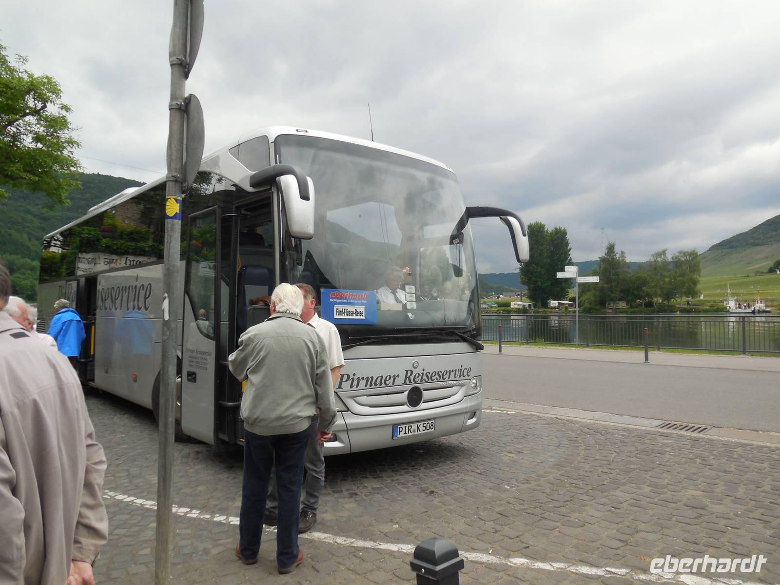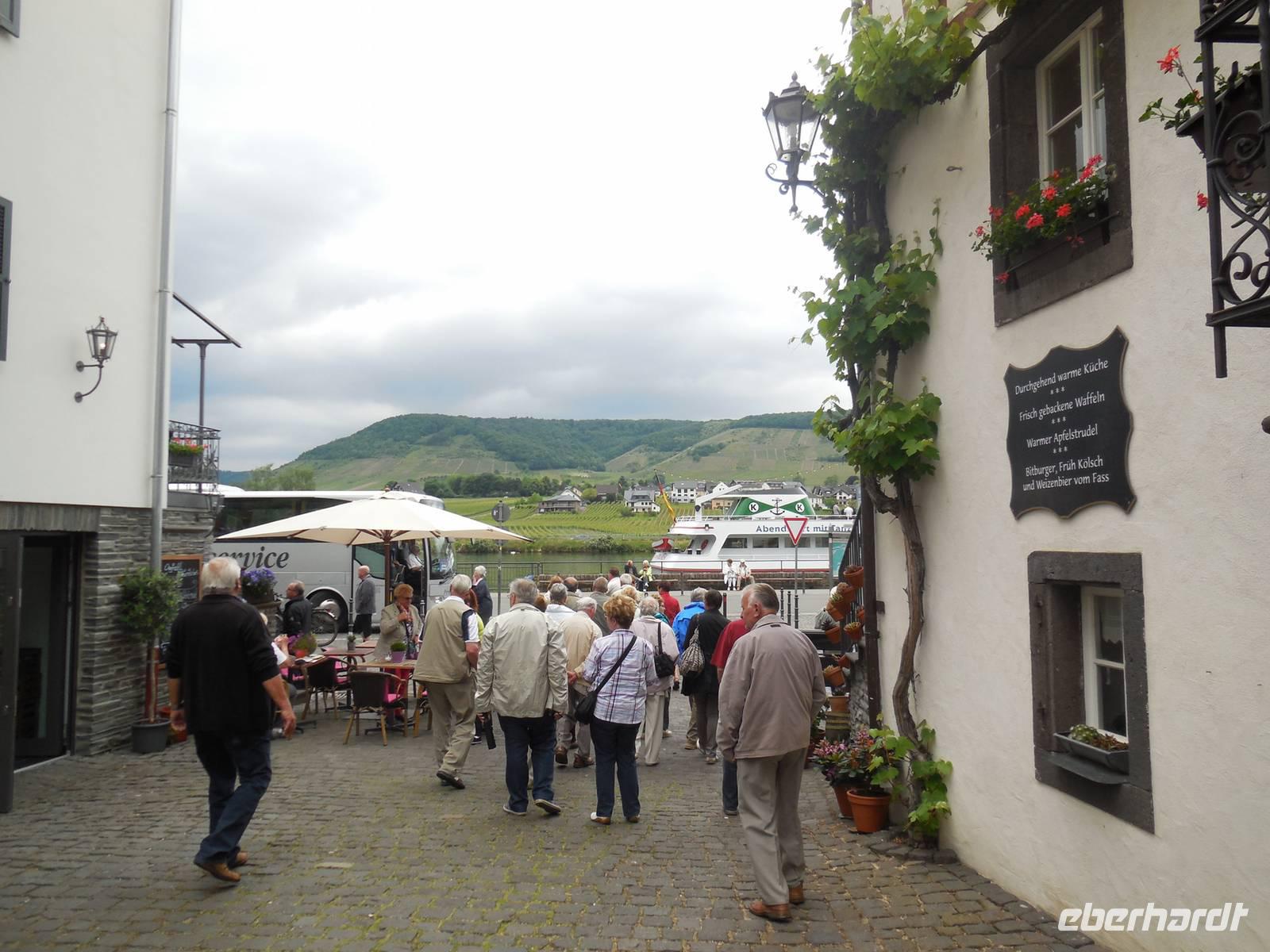 Heute ging es Richtung Mosel. Unser Bus brachte uns bis Bernkastel-Kues. Zuerst besichtigten wir den wunderschönen, mittelalterlichen Marktplatz, mit seinen Giepelfachhäusern, dem Rathaus und dem Michaelsbrunnen. Dann bestiegen wir das Schiff, die MS EUROPA. Vorbei an vielen bekannten Weinanbaugebieten und durch die Zeltinger Schleuse ging unsere Moselfahrt bis Traben-Trabach. Dort erwartete uns bereits der Bus. Nach einer Mittagspause ging unsere Fahrt weiter nach Cochem. Wir machten noch einen kleinen Zwischenstopp in Beilstein. Den süßen kleinen Ort, mit dem romantischen Markt, muss man einfach gesehen haben. Er wird auch "Dornröschen" der Mosel genannt! In Cochem besichtigen wir zuerst gemeinsam die Altstadt. Dann konnte jeder noch allein durch die Stadt bummeln, Kaffee trinken oder das leckere Eis genießen. Bevor uns der Bus wieder ins Hotel brachte. Nach dem guten Abendessen erwartete uns noch eine Weinprobe, mit dem Winzer. Mit viel Spaß und guten Weinen ging der Tag zu Ende.