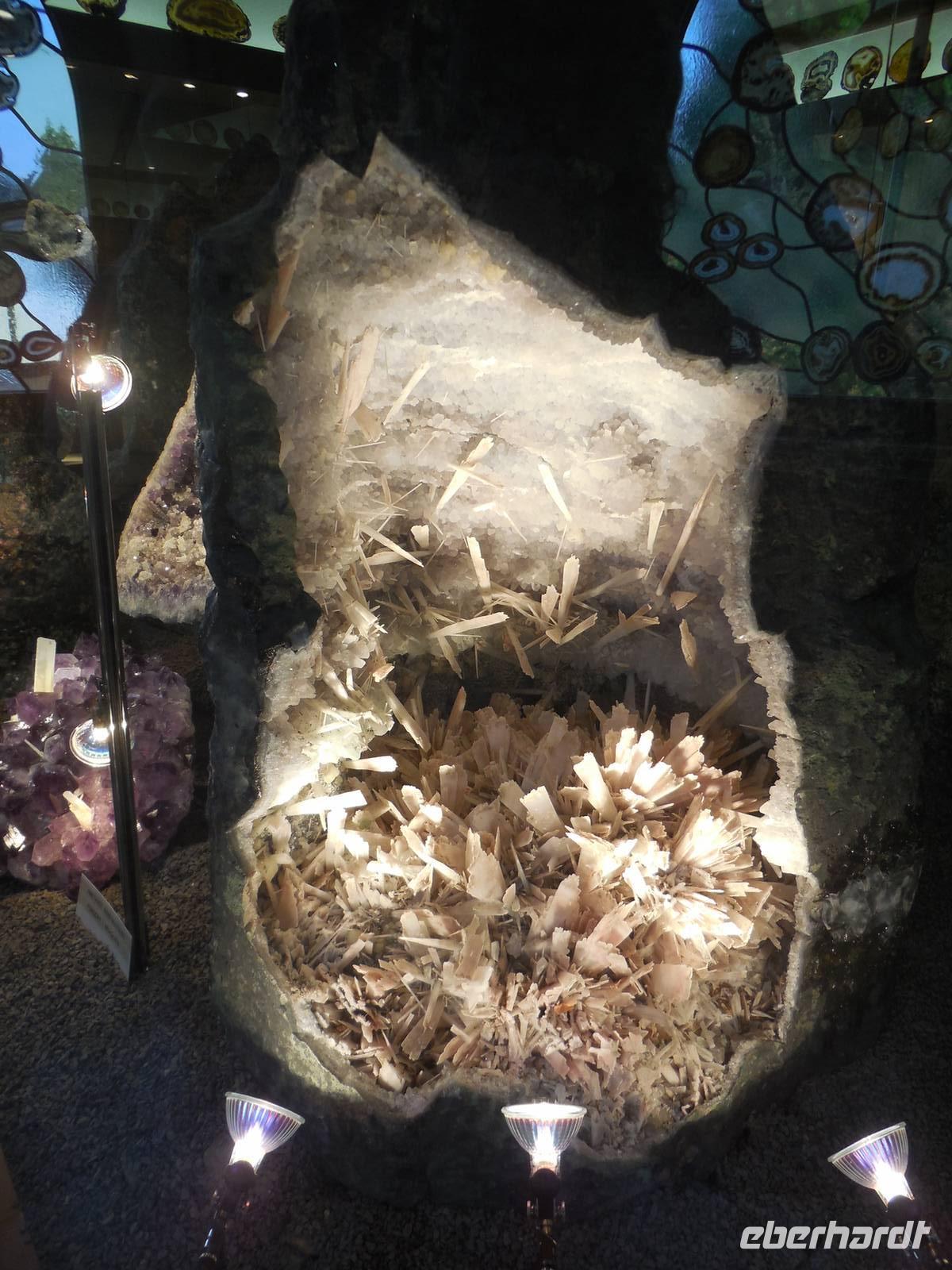 Als Überraschung ging unsere Fahrt als erstes nach Idar-Oberstein. Entlang der Edelsteinstraße. In der Edelsteinschleiferei Hess wurden wir bereits erwartet. In einem kleinen Vortrag erfuhren wir sehr viel über Edelsteine, die Herstellung und den Abbau von Früher und Heute. Wir bestaunten große Diamanten und jeder bekam ein kleines Geschenk.