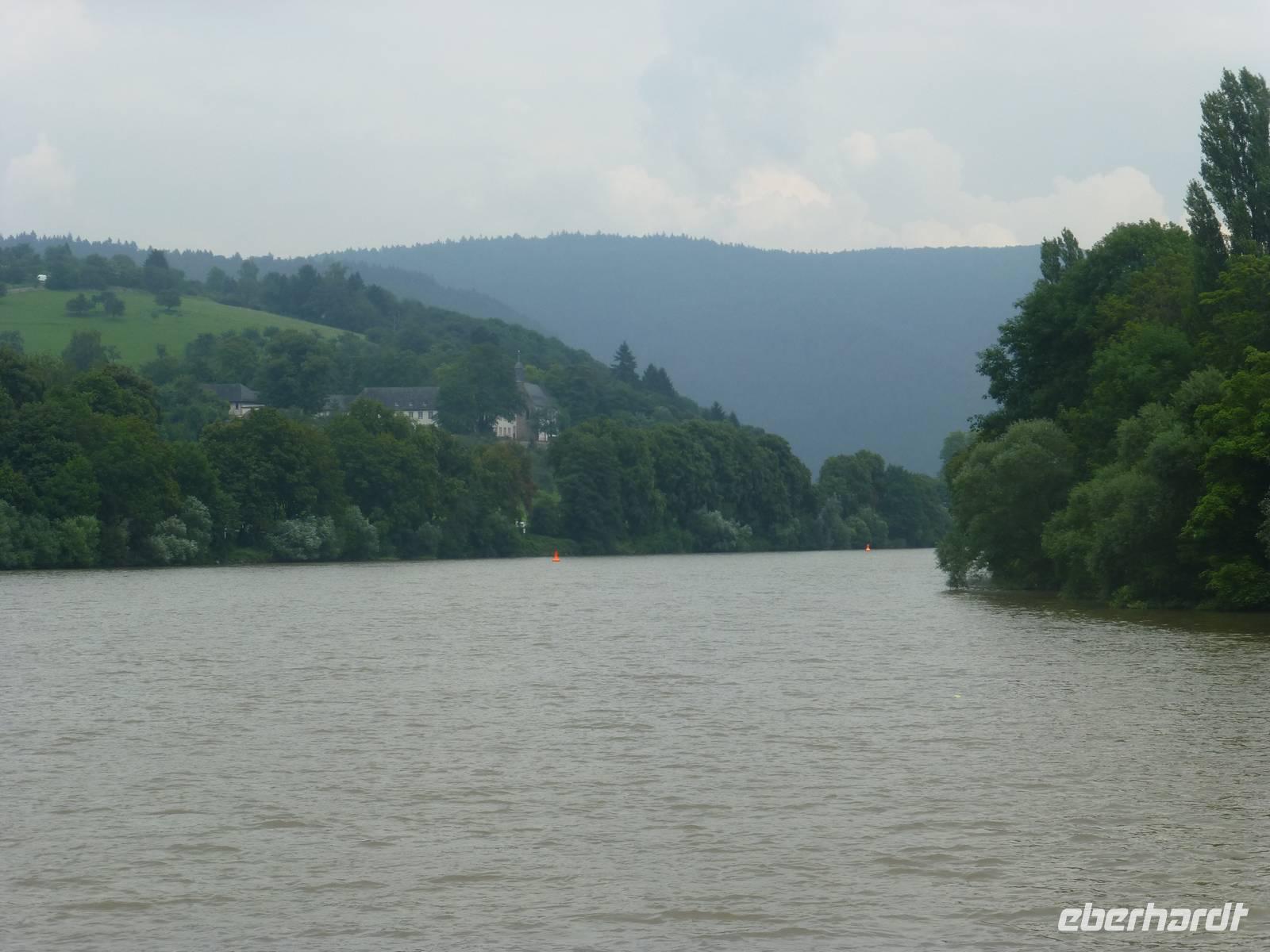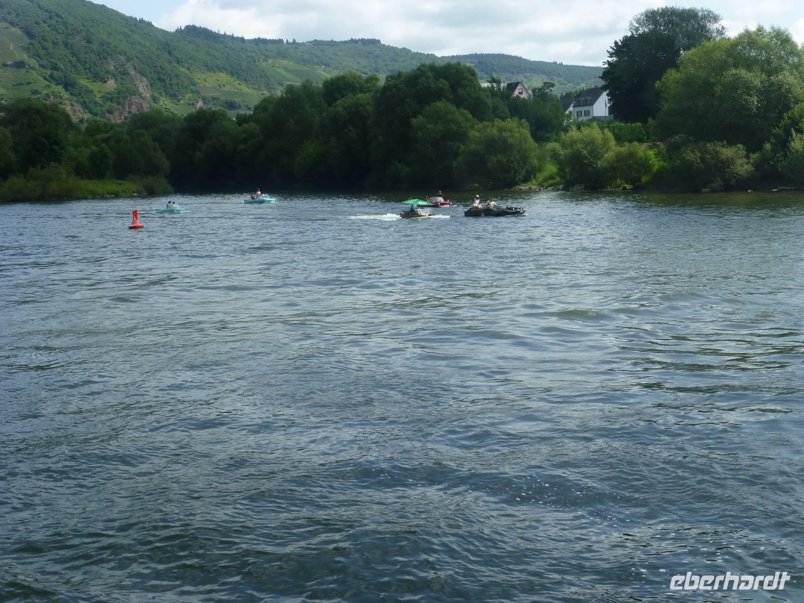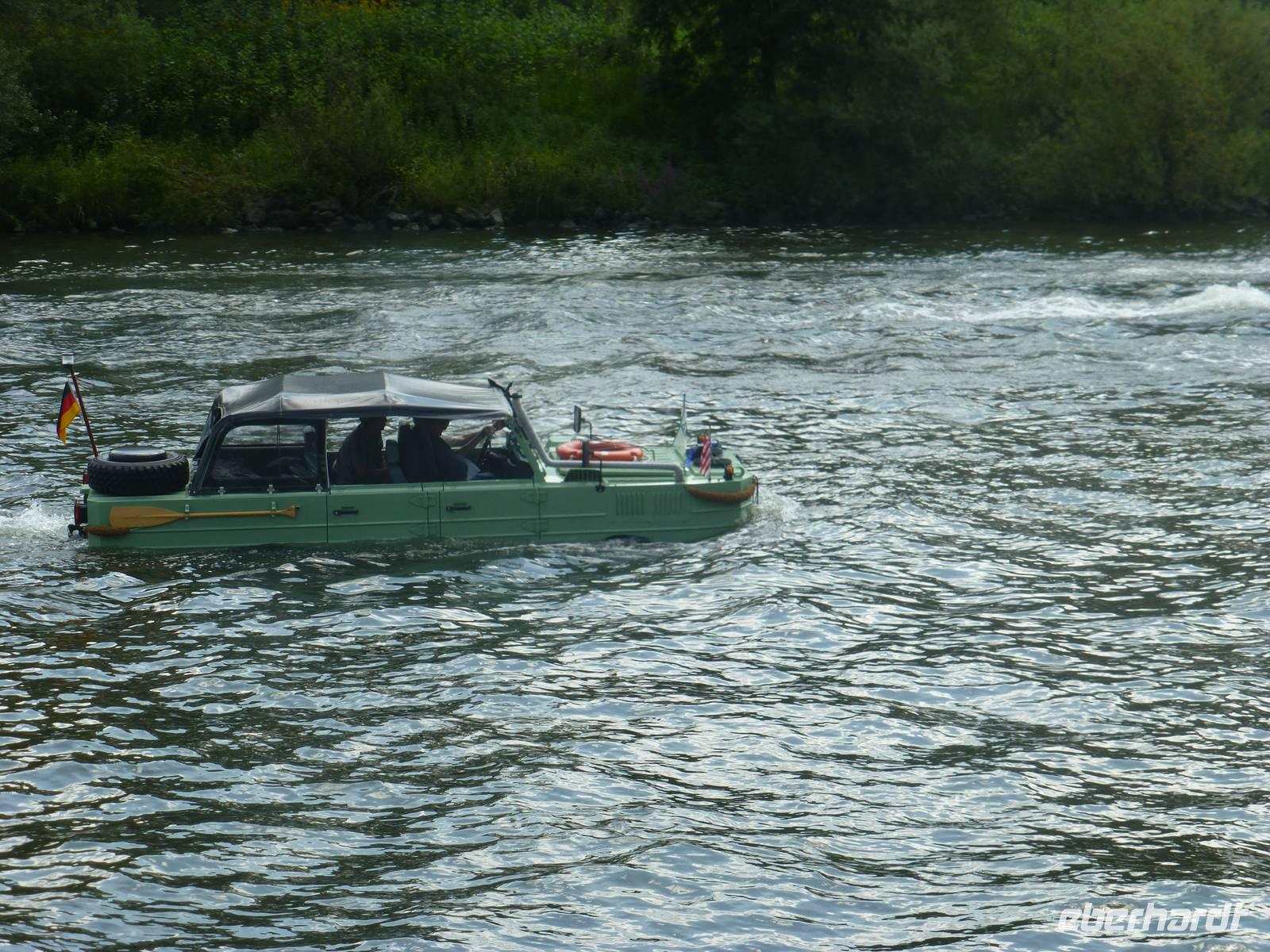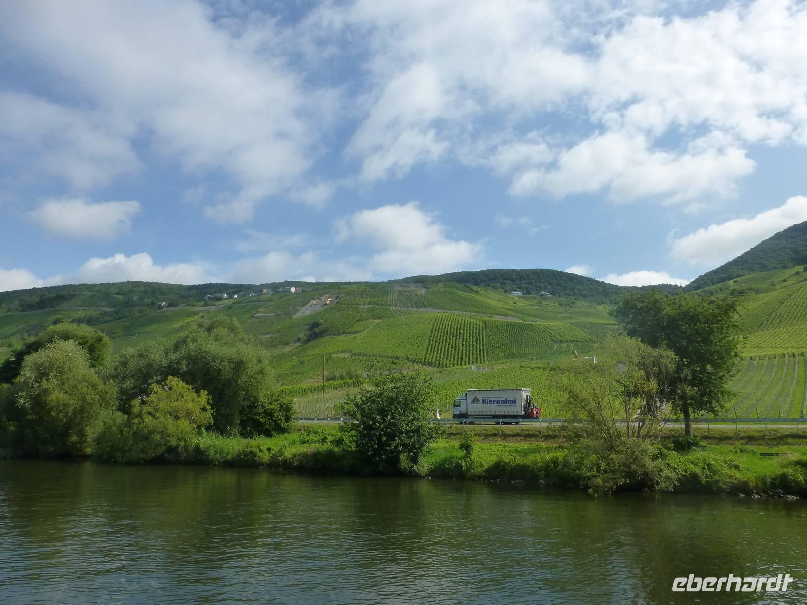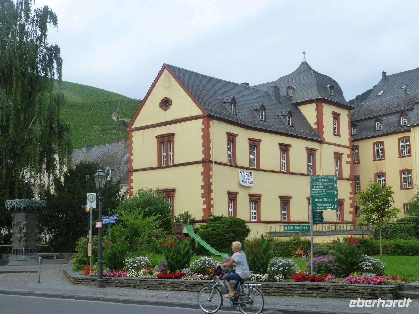 Über die Hunsrücker Höhenstrasse reisen wir heute an die Mosel. Unser erstes Ziel ist die idyllische Weinstadt Bernkastel Kues. Einer Legende nach stammt der Ortsname Bernkastel vom Begriff Bärenkessel. So lässt sich der Bär im Stadtwappen erklären, und im Bärenbrunnen finden wir gleich zwei als Brunnenfigur. Am historischen Marktplatz rund um den St.-Michaels-Brunnen stehen prächtig verzierte Giebelfachwerkhäuser aus dem 16. und 17. Jahrhundert sowie das markante Renaissance-Rathaus. Wir bummeln durch die verwinkelten Gassen des Winzerstädtchens, bevor es mit dem Schiff auf der Mosel weitergeht. Mit der "Europa" reisen wir bei strahlendem Sonnenschein bis Traben-Tarbach. Die Mosel schlängelt sich idyllisch durch weinbewachsene Berghänge. Kaum zu glauben, dass an diesen Steilhängen Wein angebaut werden kann. Plötzlich wieder eine Überraschung: Amphibienfahrzeuge kommen uns in großer Zahl entgegen. Die Eigentümer sind sichtlich stolz auf ihre fahr- und schiffbaren einzigartigen Kreationen. Kommt da ein schwimmender Trabi daher? Wir grüßen und winken und freuen uns an der "Prozession". Von Trabach geht es mit unserem Bus in die kleine, aber feine Stadt Beilstein. Diese ist recht schnell besichtigt, weil sie wirklich winzig ist, und so machen wir uns nach Cochem am Moselbogen auf. Auf den steilen Weinbergen der Umgebung gedeiht ein hervorragender Wein. Ein Weinladen neben dem anderen lädt zum Verkosten und Kaufen ein. Und das Cafe Flair wird von unserem Reiseleiter Volker wärmstens empfohlen. Deshalb begnügen wir uns mit einem Blick auf die mächtige Reichsburg, die stolz über der Stadt thront. Es war auch recht schwülwarm, ein Eis gerade recht. Die Stadt rühmt sich eines Kleinklimas, das 2 bis 3 Grad wärmer ist als anderswo...bis kurz vor Abfahrt ein schweres Gewitter ausbrach. Der Regen erwischte uns etwas heftig, aber die Sachen trockneten schnell wieder im Bus bei der Rückfahrt. Nach diesem erlebnisreichen Tag haben wir uns das deftige und reichhaltige Abendessen im Hotel redlich verdient.
