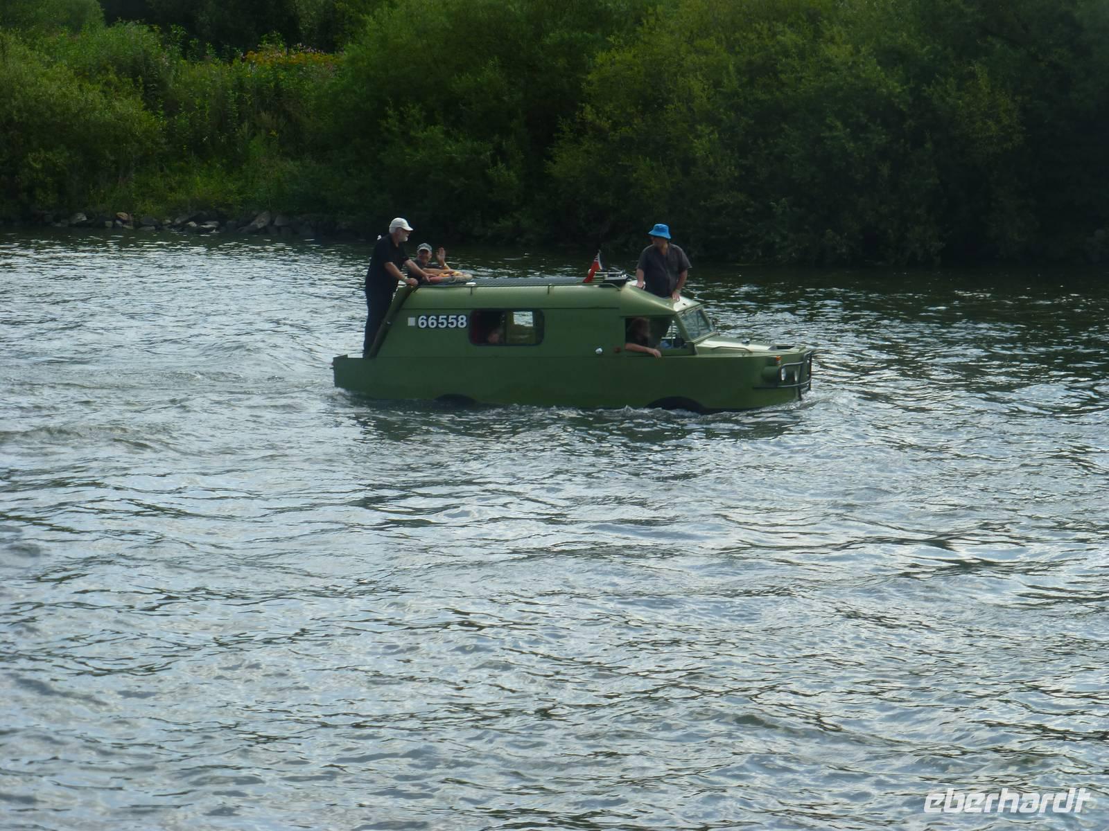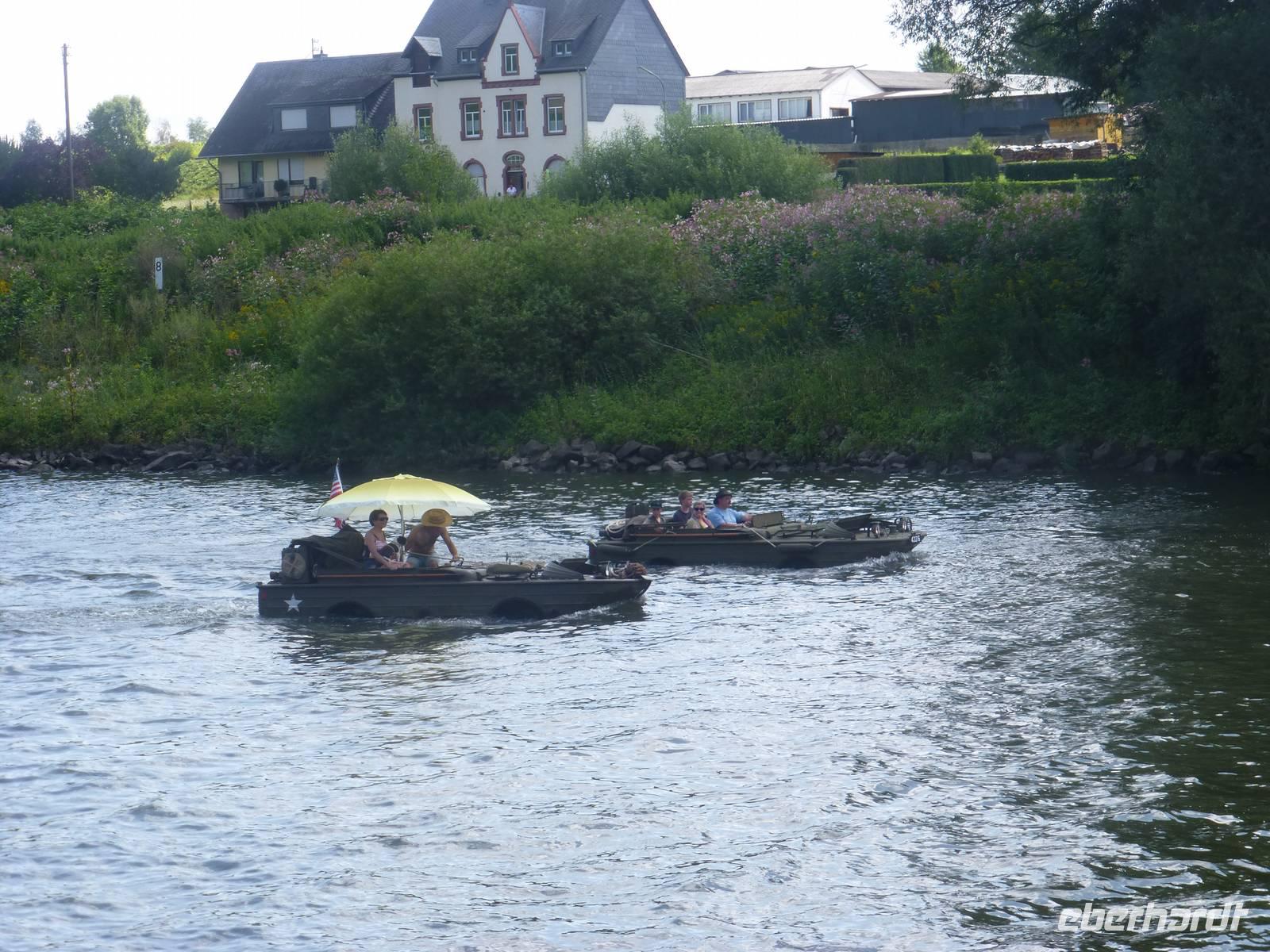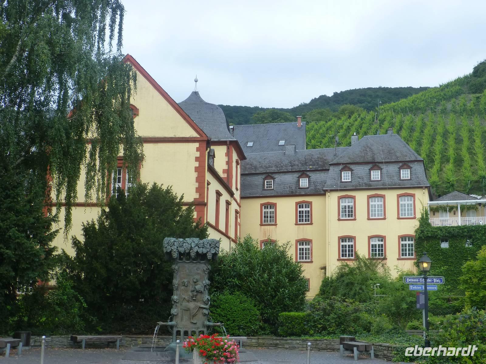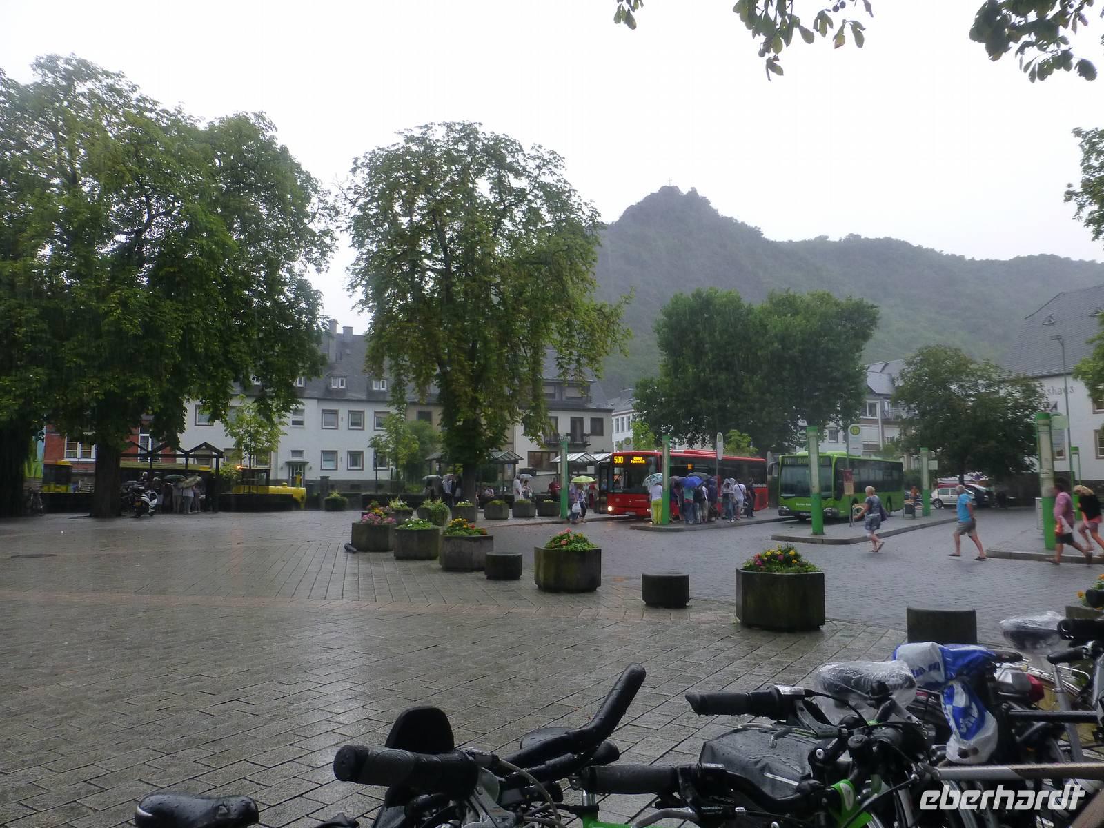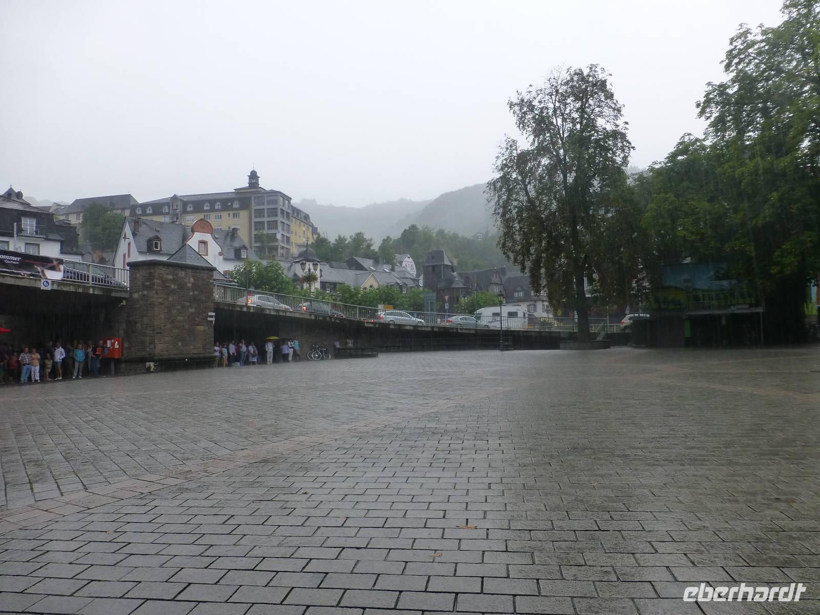 Über die Hunsrücker Höhenstrasse reisen wir heute an die Mosel. Unser erstes Ziel ist die idyllische Weinstadt Bernkastel Kues. Einer Legende nach stammt der Ortsname Bernkastel vom Begriff Bärenkessel. So lässt sich der Bär im Stadtwappen erklären, und im Bärenbrunnen finden wir gleich zwei als Brunnenfigur. Am historischen Marktplatz rund um den St.-Michaels-Brunnen stehen prächtig verzierte Giebelfachwerkhäuser aus dem 16. und 17. Jahrhundert sowie das markante Renaissance-Rathaus. Wir bummeln durch die verwinkelten Gassen des Winzerstädtchens, bevor es mit dem Schiff auf der Mosel weitergeht. Mit der "Europa" reisen wir bei strahlendem Sonnenschein bis Traben-Tarbach. Die Mosel schlängelt sich idyllisch durch weinbewachsene Berghänge. Kaum zu glauben, dass an diesen Steilhängen Wein angebaut werden kann. Plötzlich wieder eine Überraschung: Amphibienfahrzeuge kommen uns in großer Zahl entgegen. Die Eigentümer sind sichtlich stolz auf ihre fahr- und schiffbaren einzigartigen Kreationen. Kommt da ein schwimmender Trabi daher? Wir grüßen und winken und freuen uns an der "Prozession". Von Trabach geht es mit unserem Bus in die kleine, aber feine Stadt Beilstein. Diese ist recht schnell besichtigt, weil sie wirklich winzig ist, und so machen wir uns nach Cochem am Moselbogen auf. Auf den steilen Weinbergen der Umgebung gedeiht ein hervorragender Wein. Ein Weinladen neben dem anderen lädt zum Verkosten und Kaufen ein. Und das Cafe Flair wird von unserem Reiseleiter Volker wärmstens empfohlen. Deshalb begnügen wir uns mit einem Blick auf die mächtige Reichsburg, die stolz über der Stadt thront. Es war auch recht schwülwarm, ein Eis gerade recht. Die Stadt rühmt sich eines Kleinklimas, das 2 bis 3 Grad wärmer ist als anderswo...bis kurz vor Abfahrt ein schweres Gewitter ausbrach. Der Regen erwischte uns etwas heftig, aber die Sachen trockneten schnell wieder im Bus bei der Rückfahrt. Nach diesem erlebnisreichen Tag haben wir uns das deftige und reichhaltige Abendessen im Hotel redlich verdient.